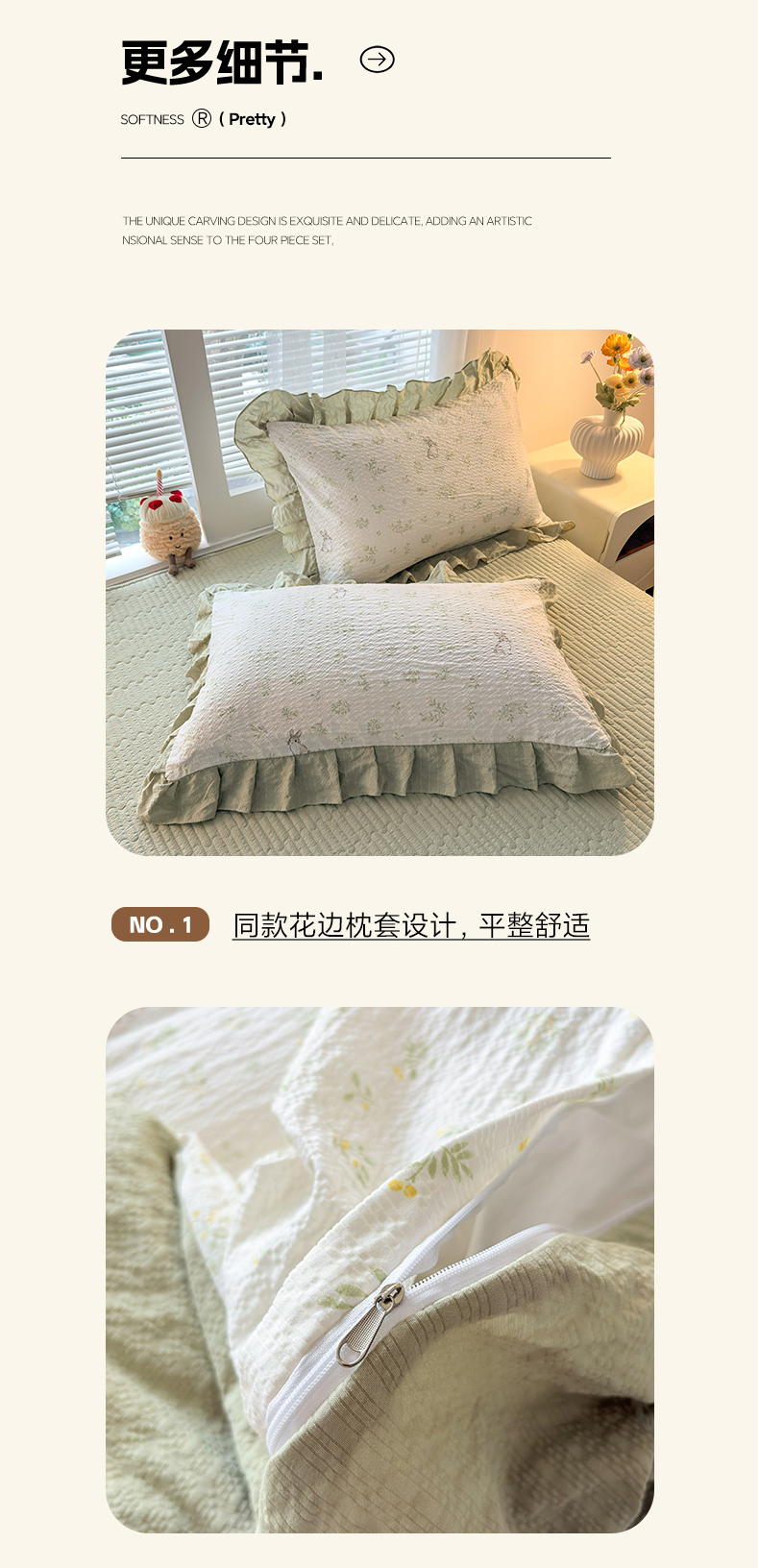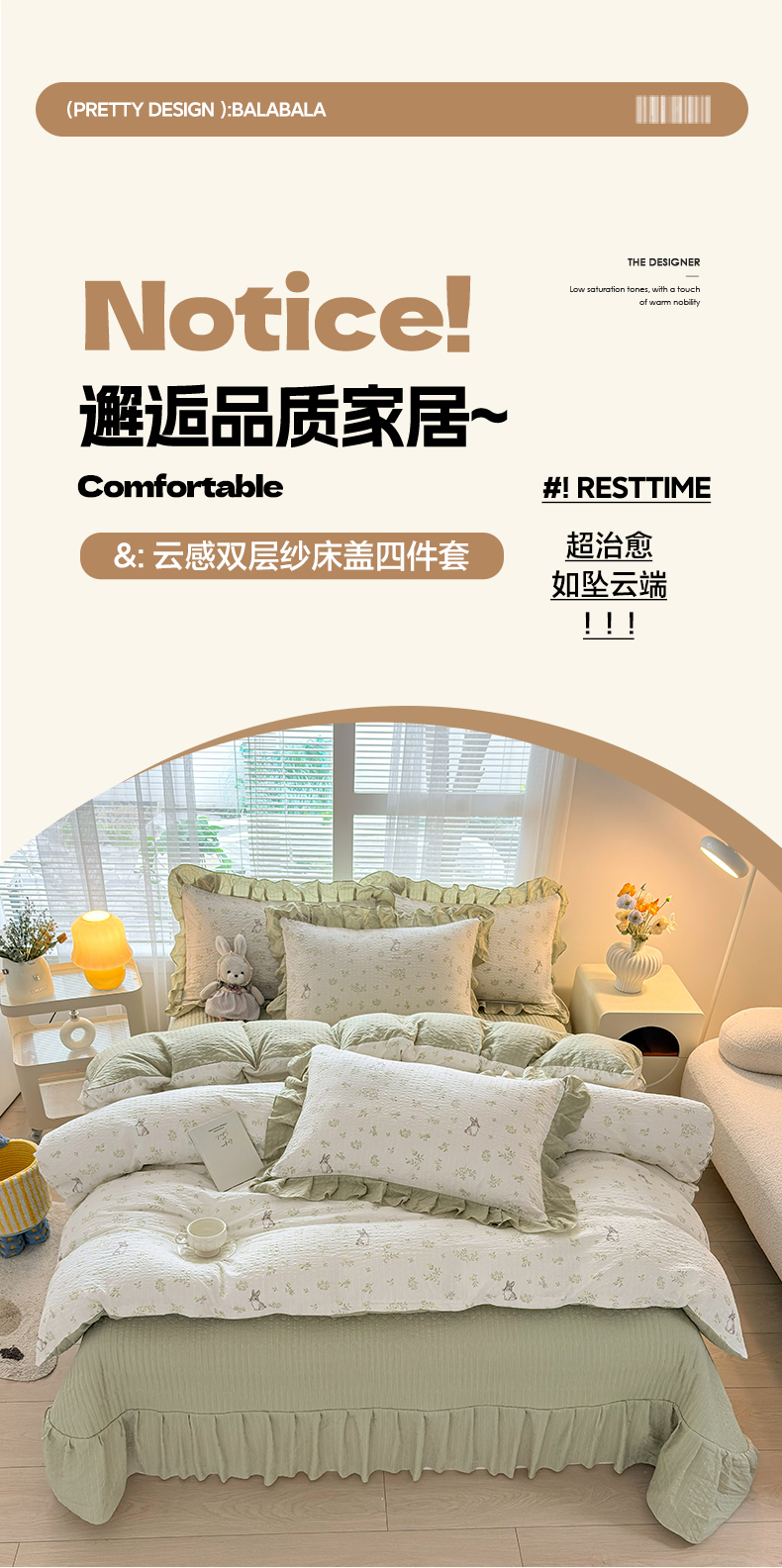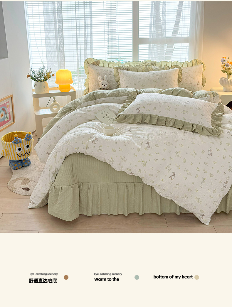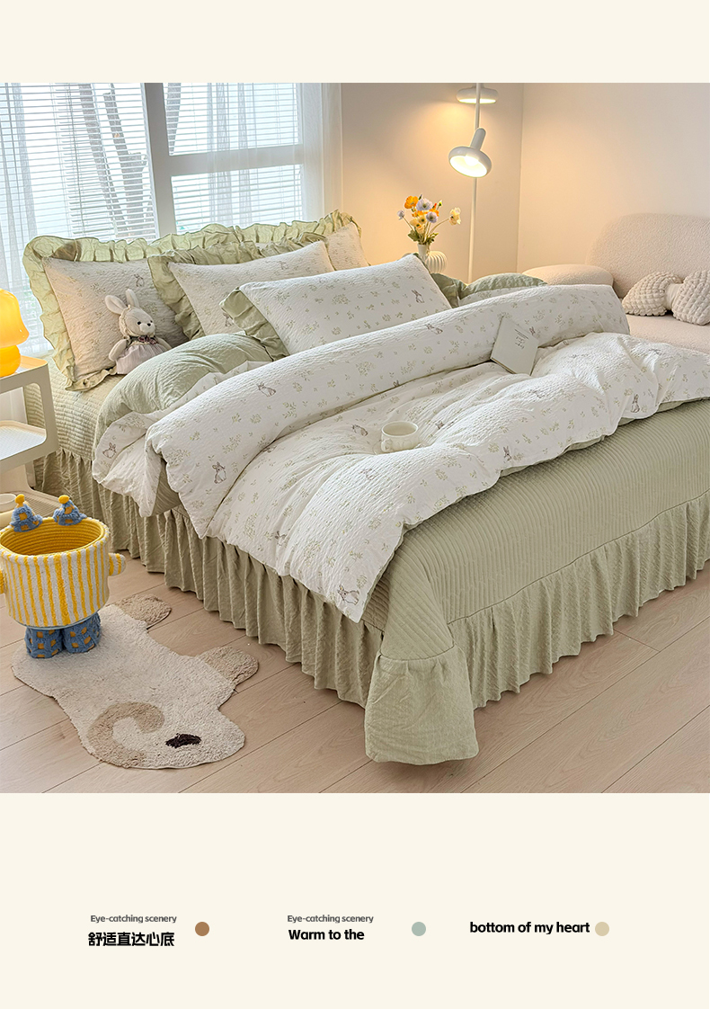 商品名称:民新家纺 2026新款泡芙双层纱床盖款四件套 乖乖兔