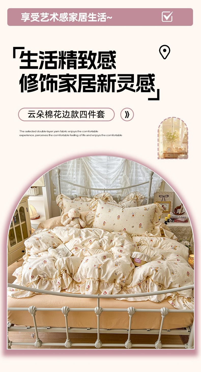 (总)睡美美家纺 2026新款水洗云朵棉亲肤花边款四件套