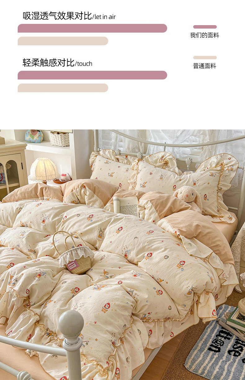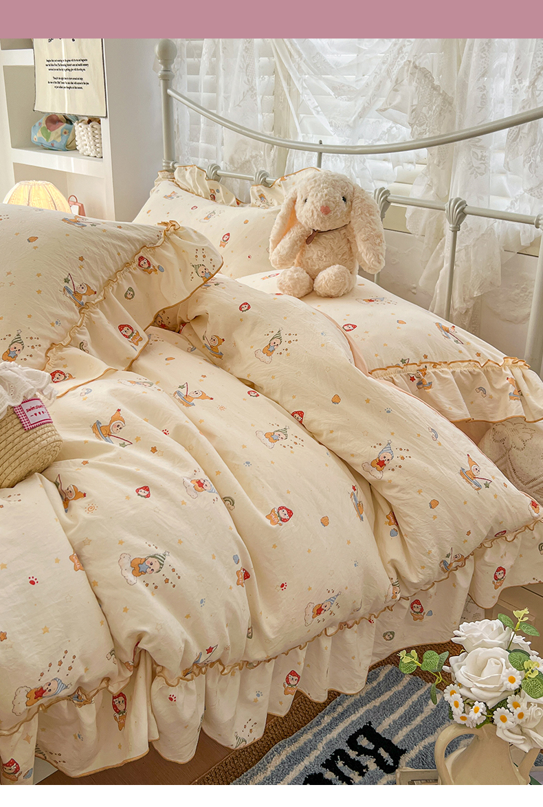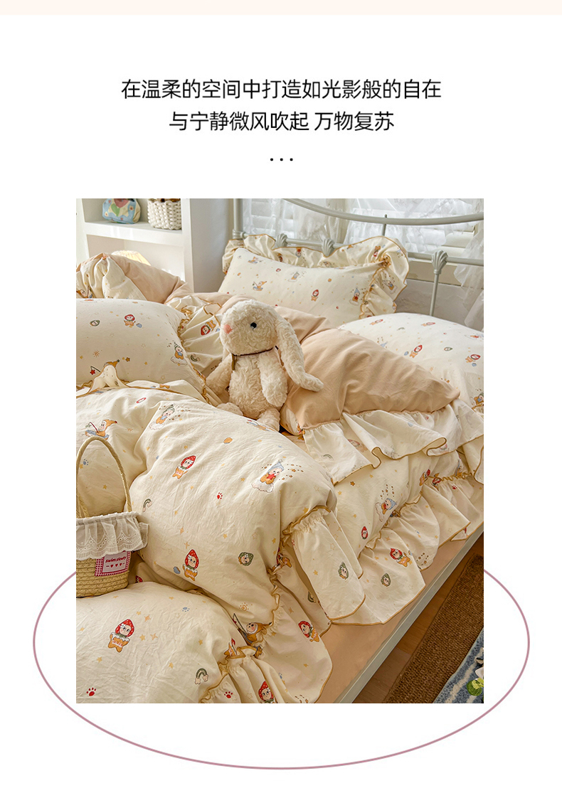 (总)睡美美家纺 2026新款A类古法水洗棉法式花边四件套,彩虹小马,春日絮语,春野,粉豹纹,粉雾蔷薇,粉漾,格纹小象,海盐奶酪,花千朵,花田兔,灰棠,剪秋,乐町小马,美式,梦华录,梦幻格趣,梦幻灰,梦露,木马乐园,奶萌喵咖,南瓜童话,俏皮狗,青花瓷,赛琳娜,森屿,疏影,水晶葡萄,甜粉小窝,甜心萌宠,小黄花,小幸运-蓝,絮语,鱼多多