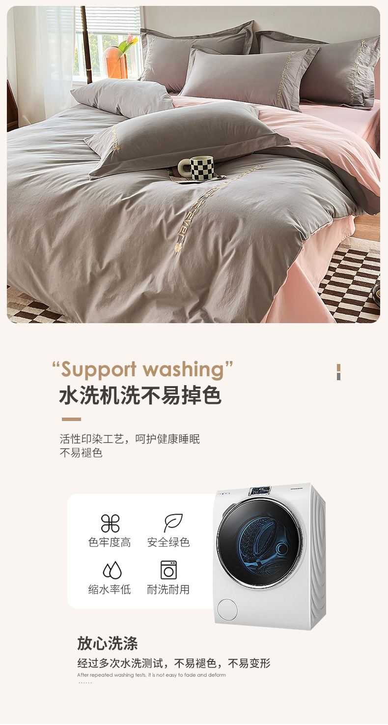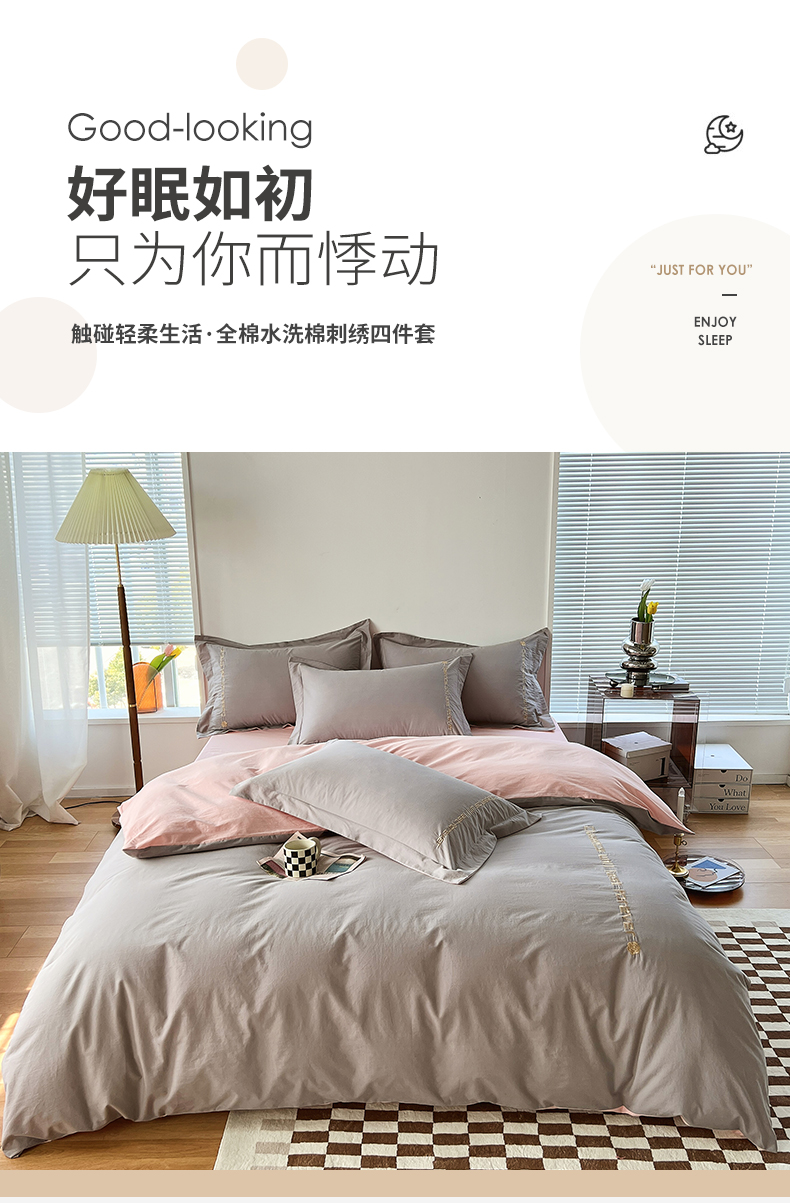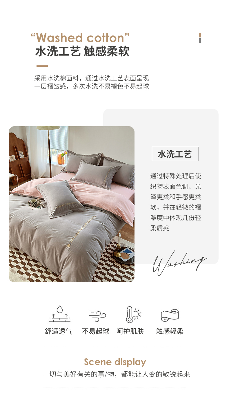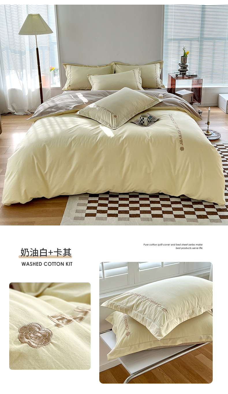 (总)拼社家纺 2026新款A类色织全棉水洗棉四件套纯棉四件套刺绣床上用品-漫系列,繁星蓝+卡其,艾玛绿+卡其,繁星蓝+玫瑰粉,红豆沙+雅灰,迷雾灰+玫瑰粉,蜜粉+雅灰,奶油白+卡其,奶油白+香橙,牛仔蓝+浅蓝,香橙+雅灰