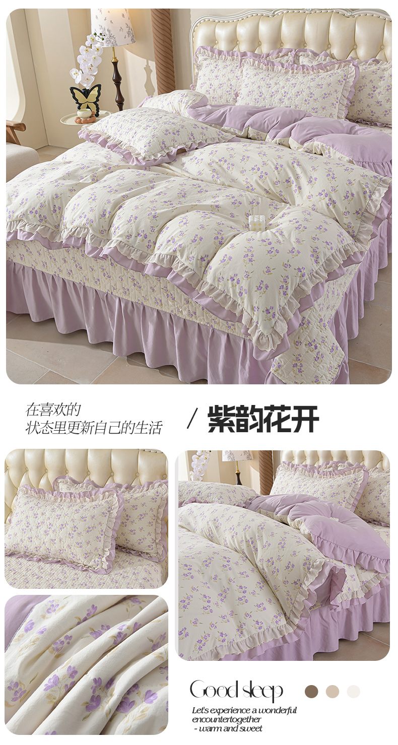 当前位置: 91家纺网 > 商品网购 > 床品套件 > 四件套 > 夏被四件套 > 金梦家居 2026新款水洗棉床盖夏被款四件套 春暖花开