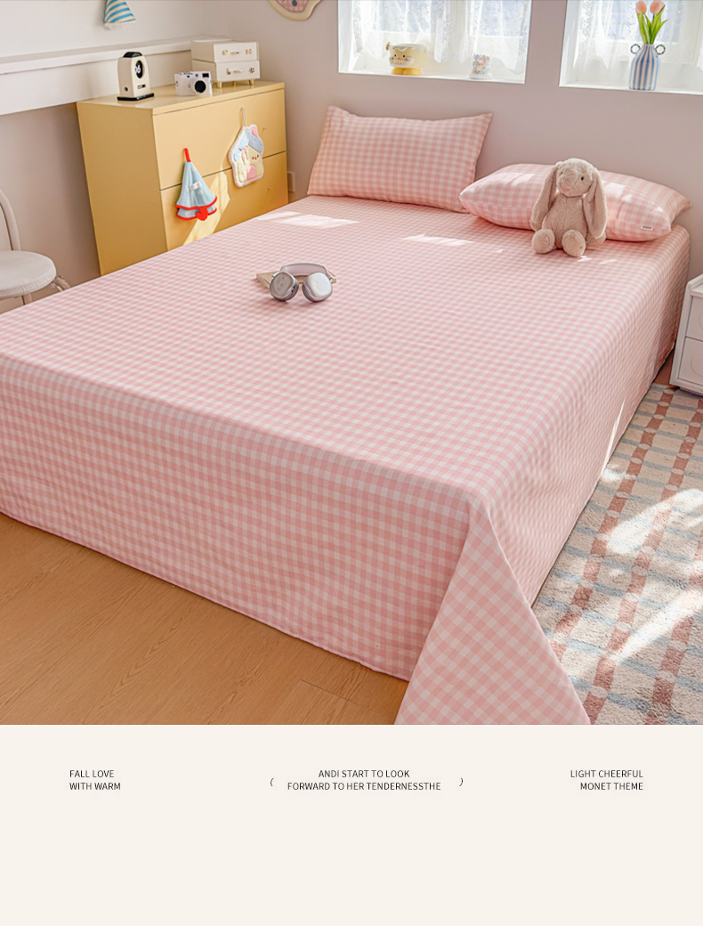 • 91家纺网 家纺一手货源 找家纺 爱彼家纺 2026新款无印格子分老粗布床单软凉席床单枕套三件套新升级细沙-格子系列一 格子粉