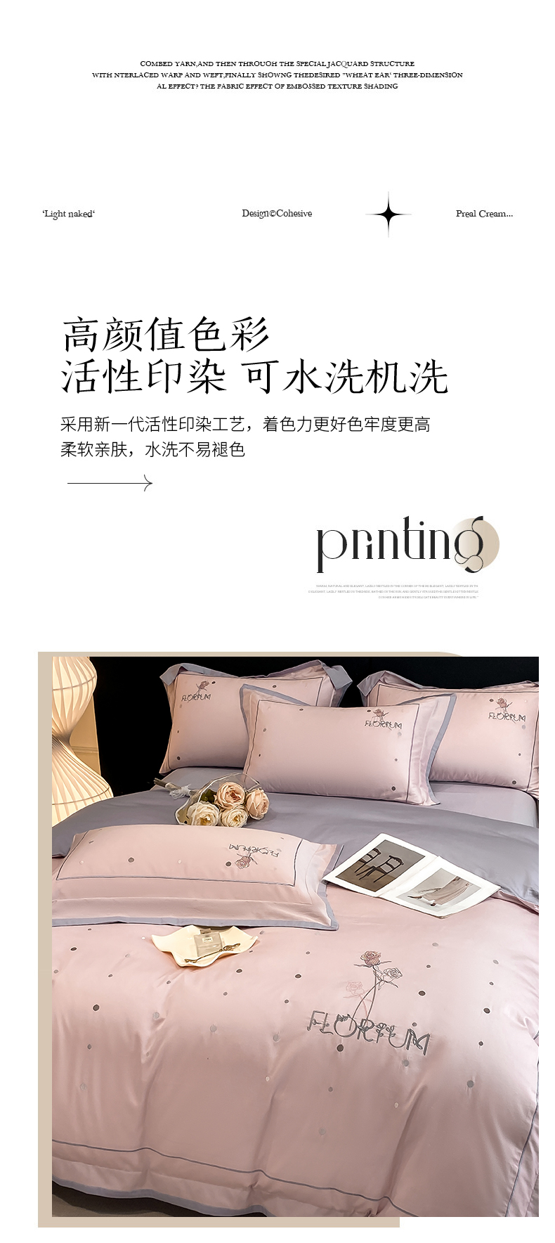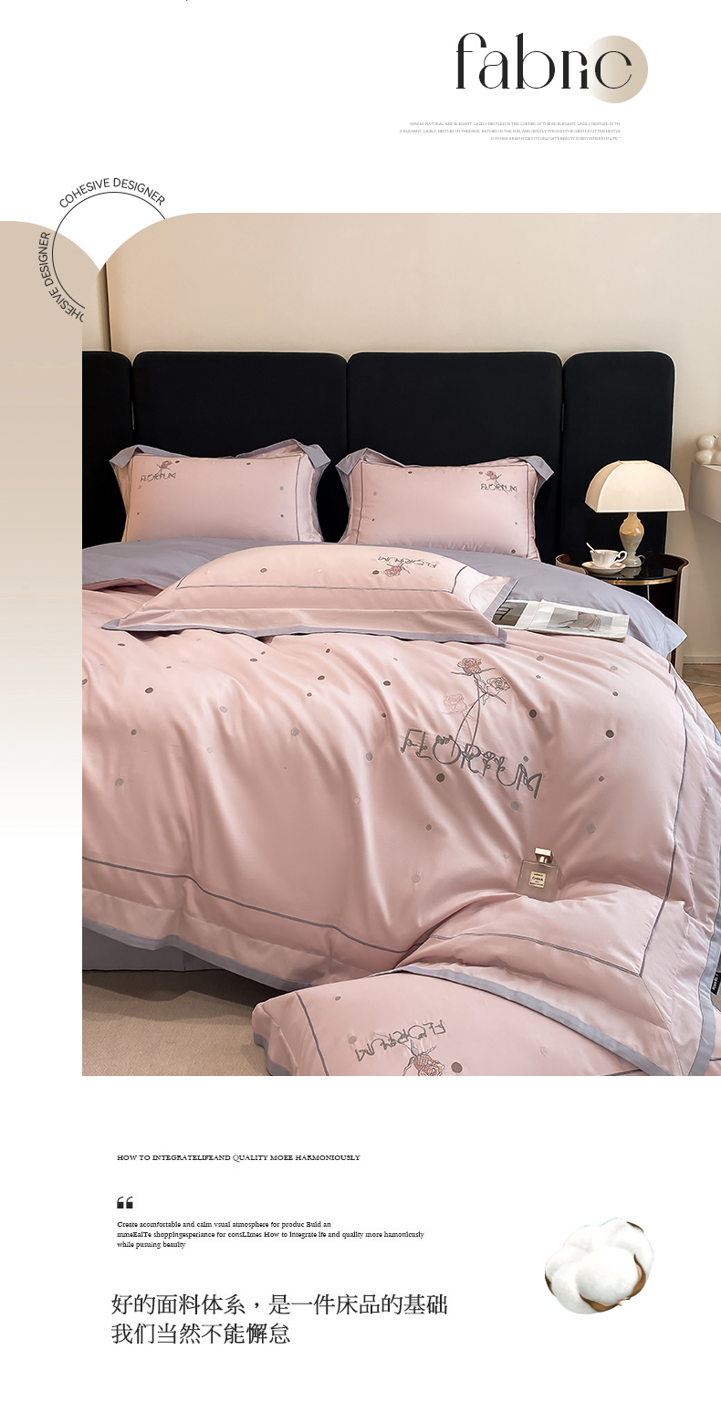 (总)家居1号家纺 2025新款花韵长绒棉四件套,花韵-白拼粉,花韵-冰海蓝,花韵-淡雅灰,花韵-玫瑰粉,花韵-温馨蓝