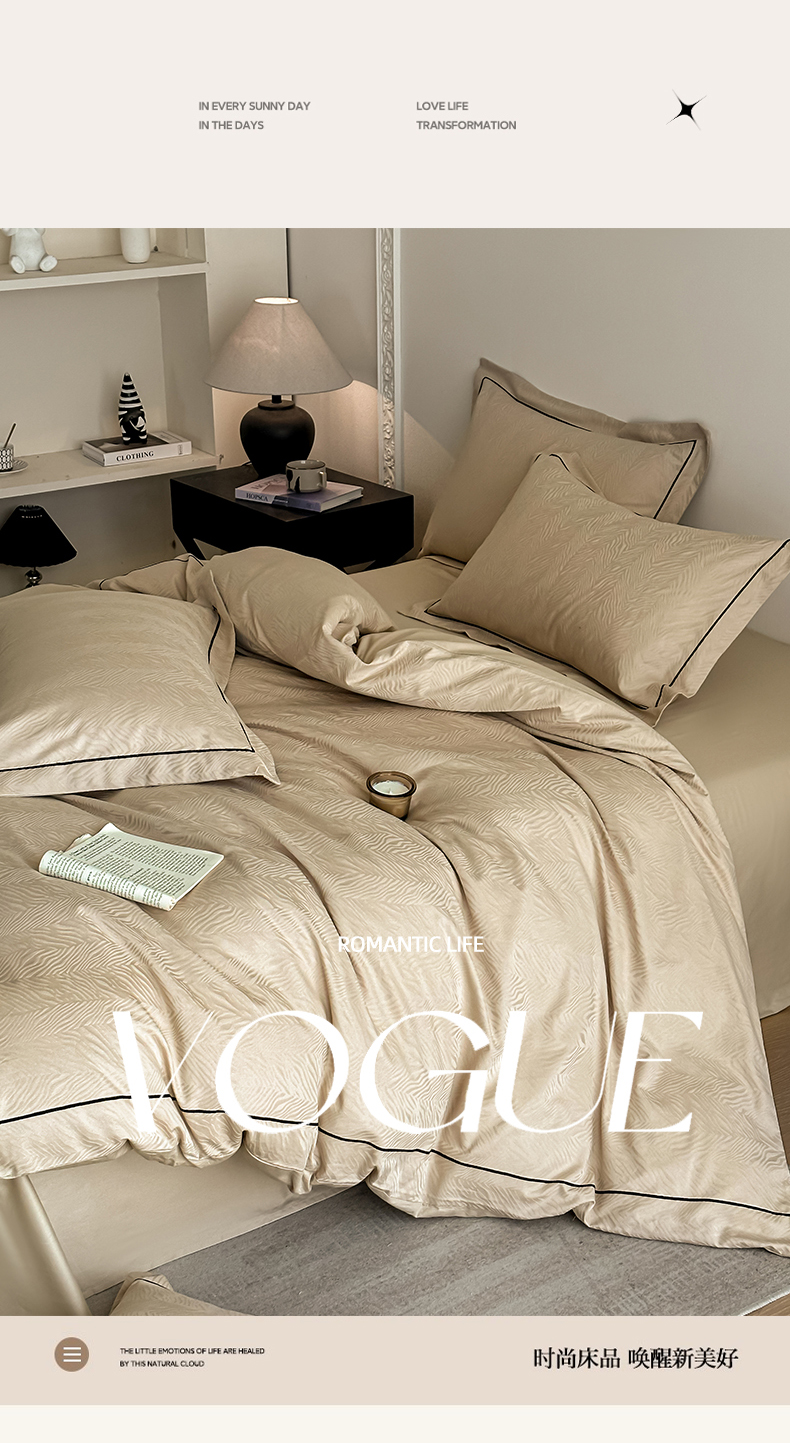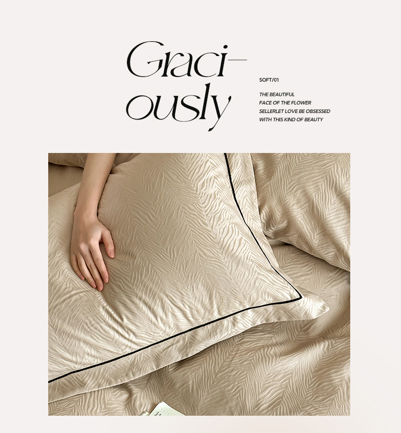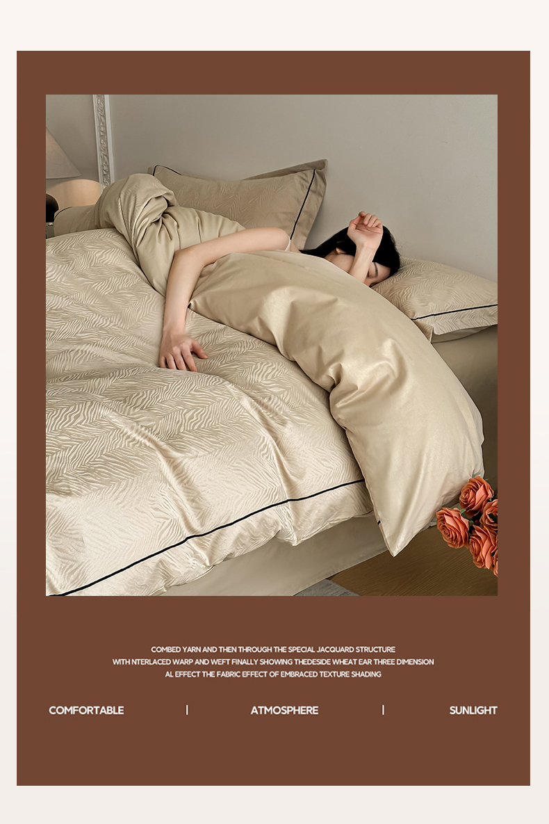 首尔家纺 2026新款浮雕提花色织全棉四件套 斑马纹-米咖