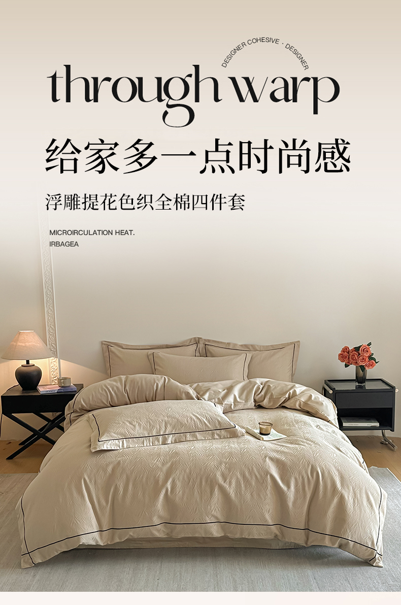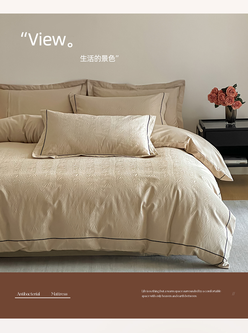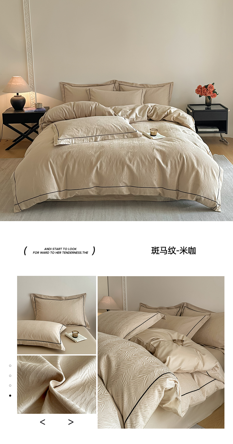 商品名称:首尔家纺 2026新款浮雕提花色织全棉四件套 斑马纹-米咖