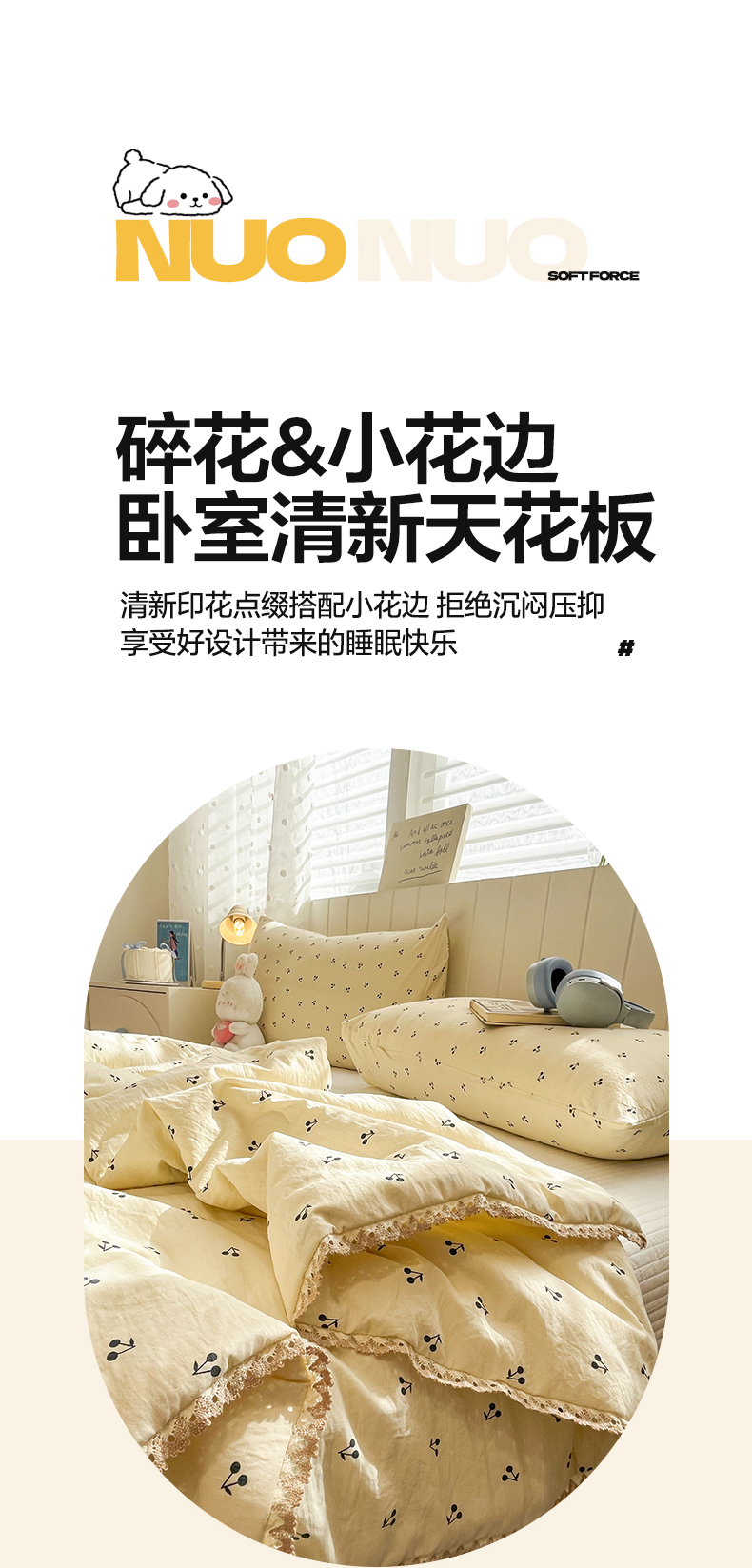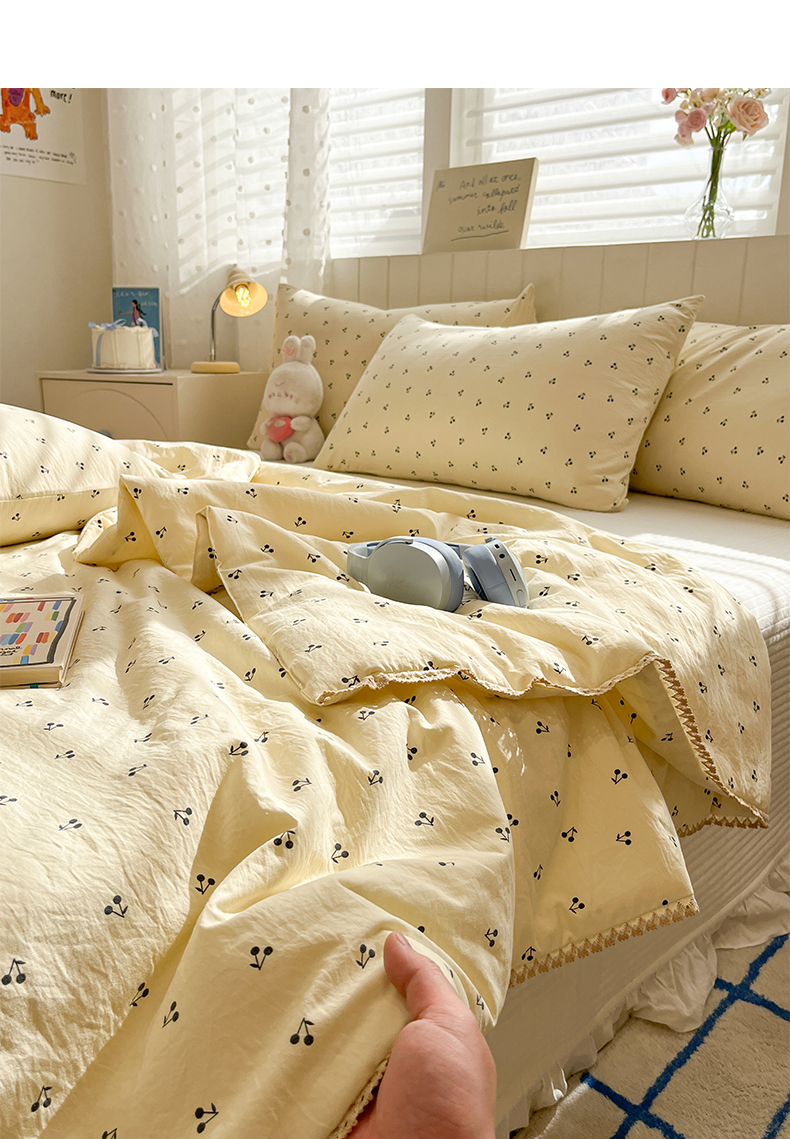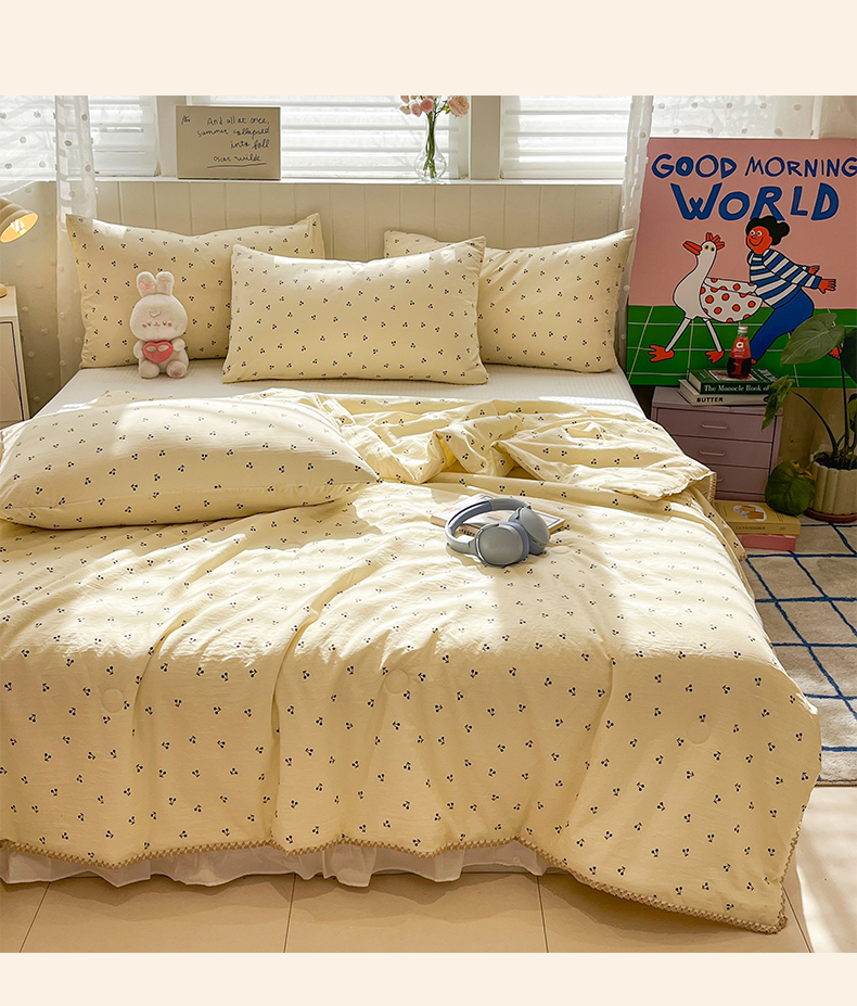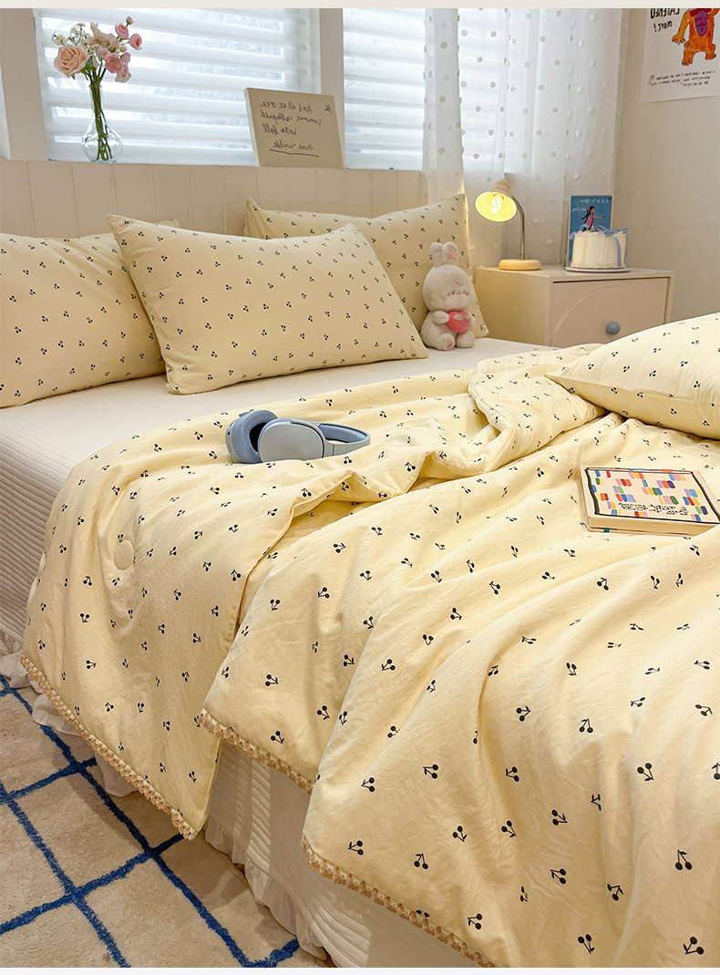 商品名称:一加一 2026新款全棉小花边碎花大豆夏被-棉云花畔 椿樱
