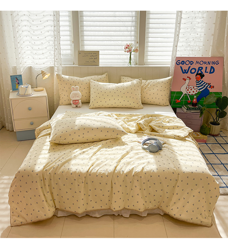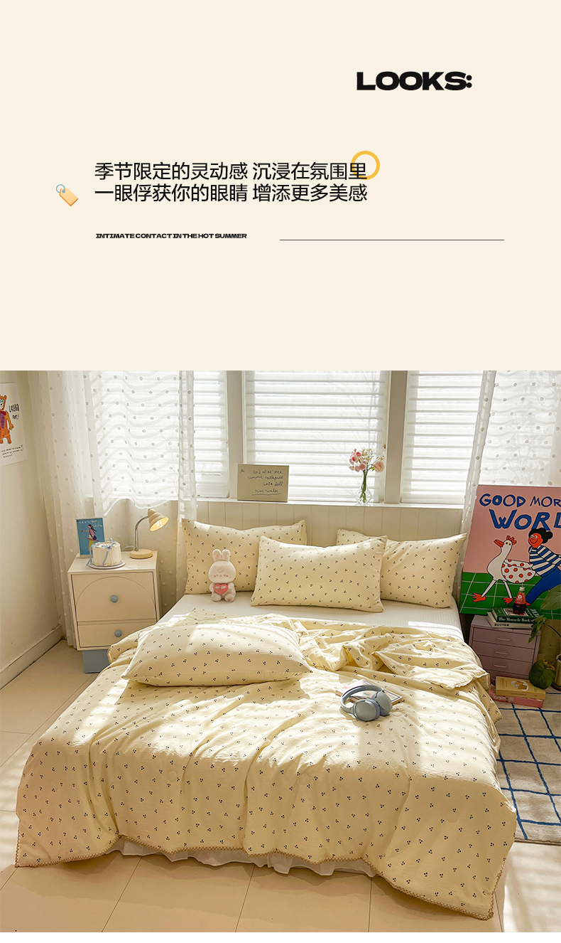(总)一加一 2026新款洛卡棉印花大豆夏被四件套,白瓷花絮,彩色萝卜,彩色甜梦,粉紫花序,奶芙腊肠狗,南瓜兔派对,浅蓝甜梦,青禾随影,软心小狗,元气小果,紫樱奶芙