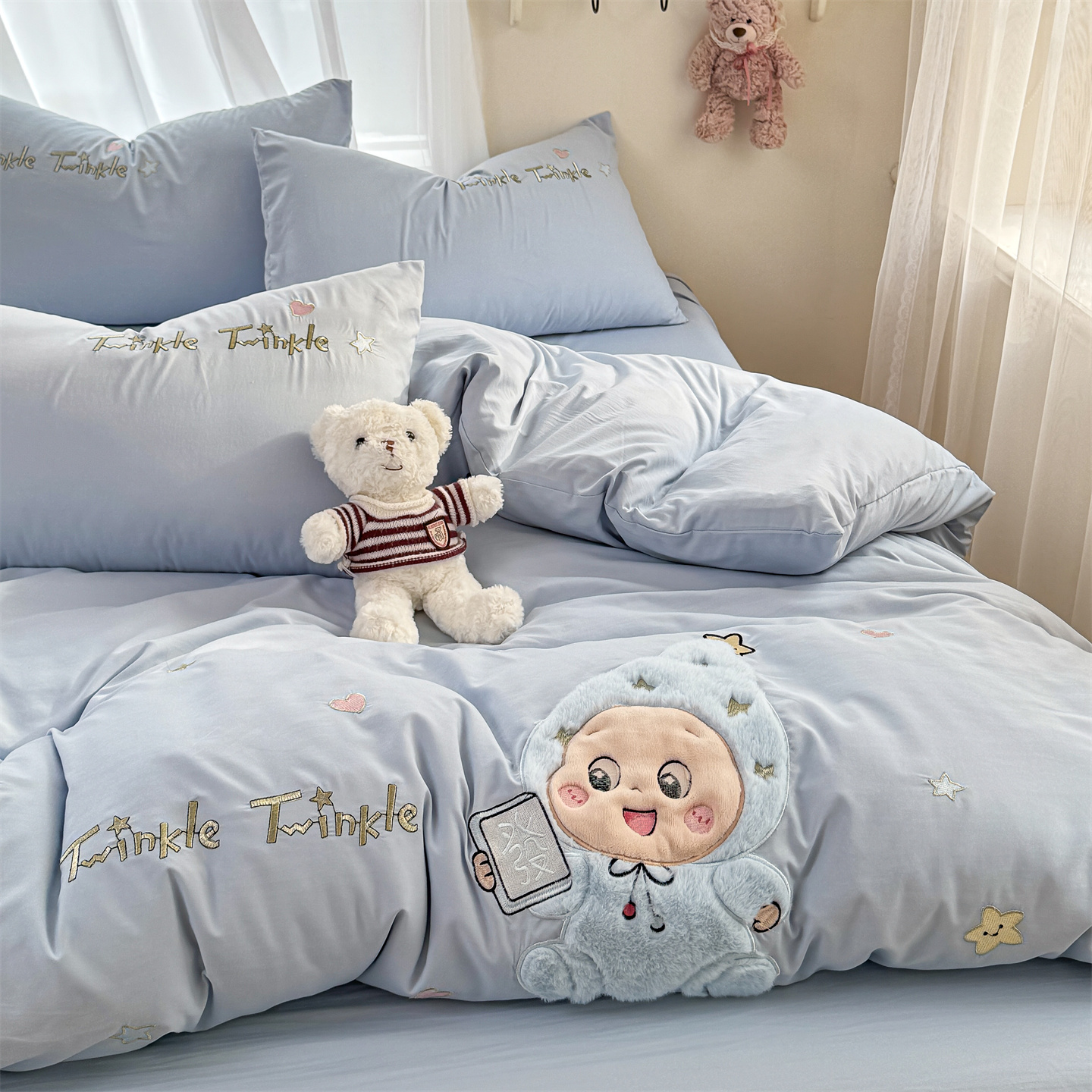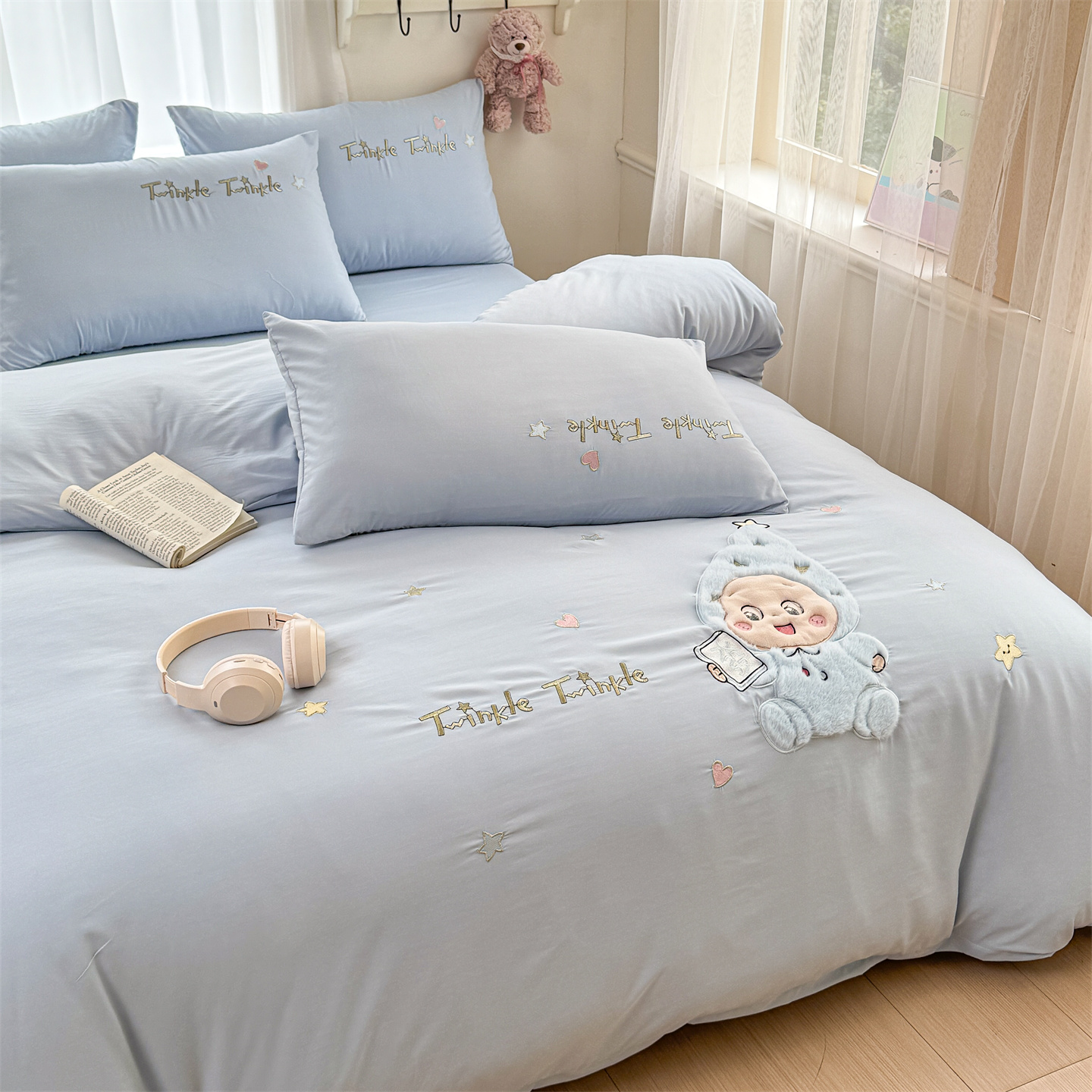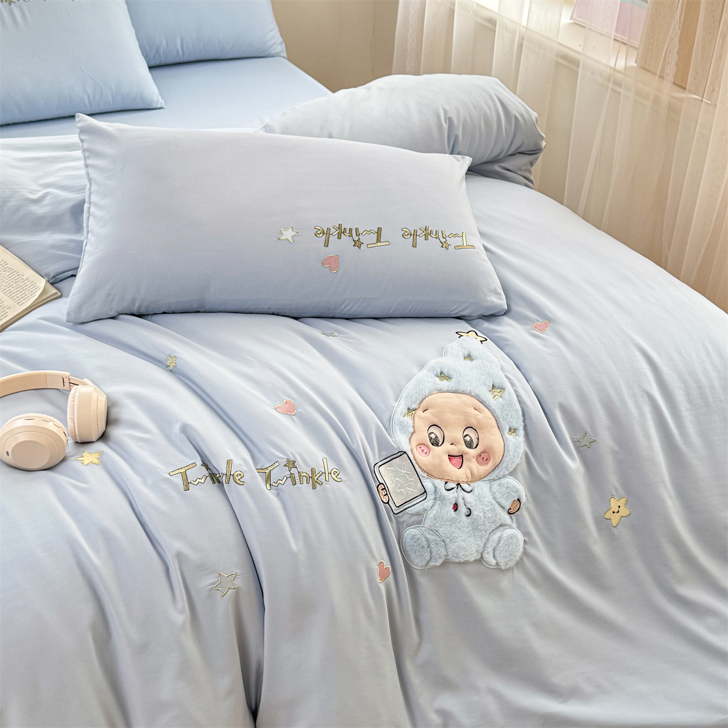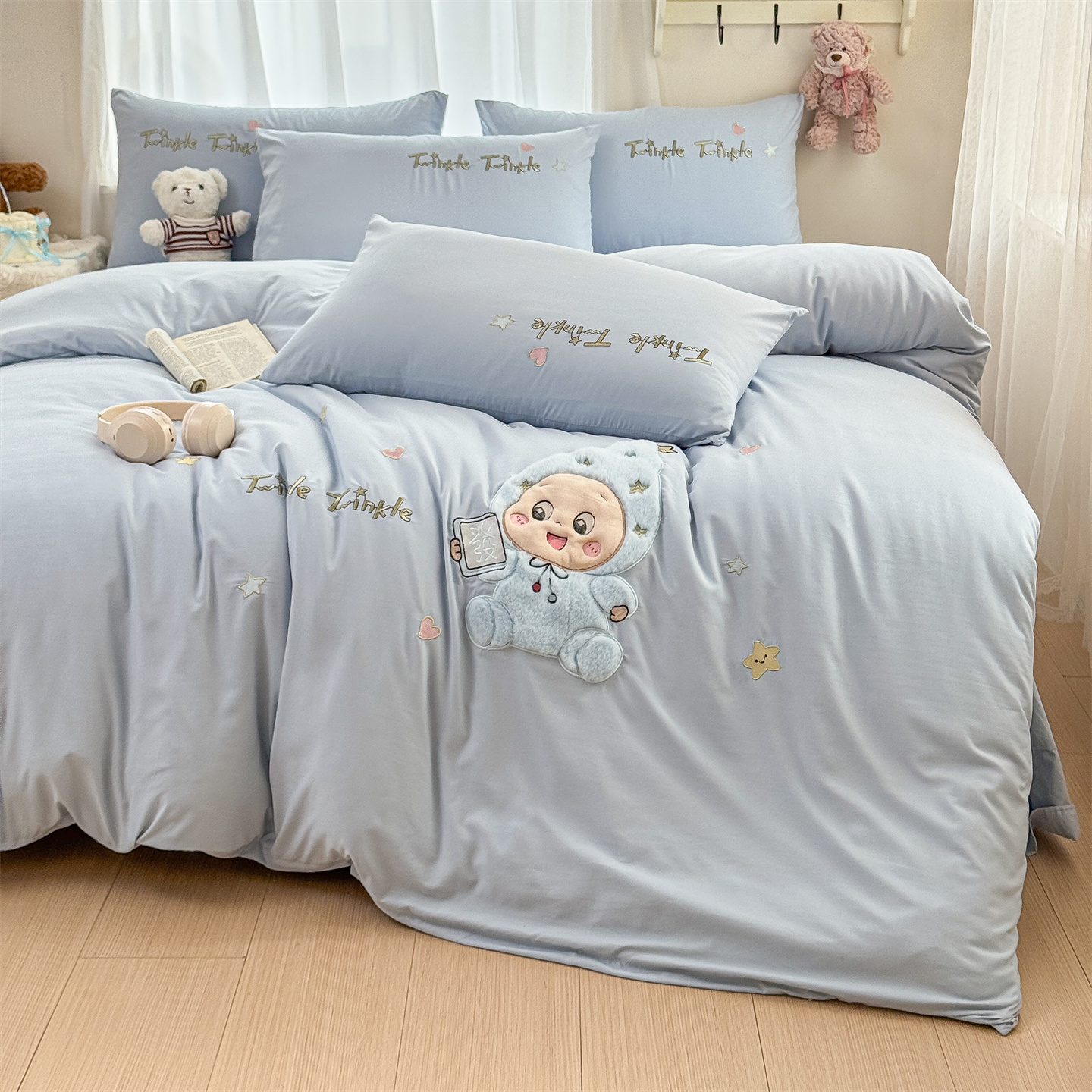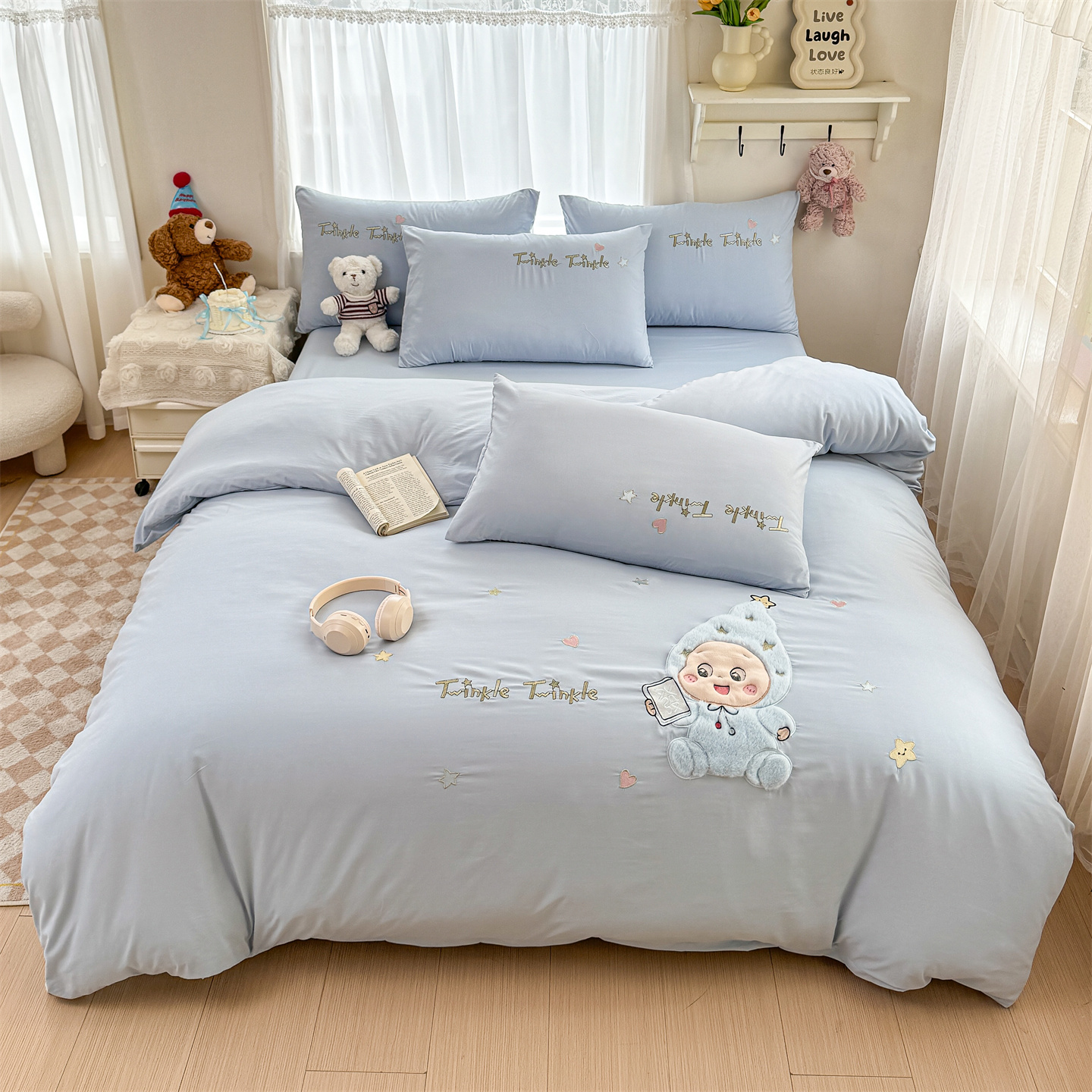 (总)橘子家 2026新款卡通绣花四件套,欢乐日记,梨好鸭,马上有福,咩咩羊,帕皮狗,泰迪狗,星星人,熊仔,有钱花