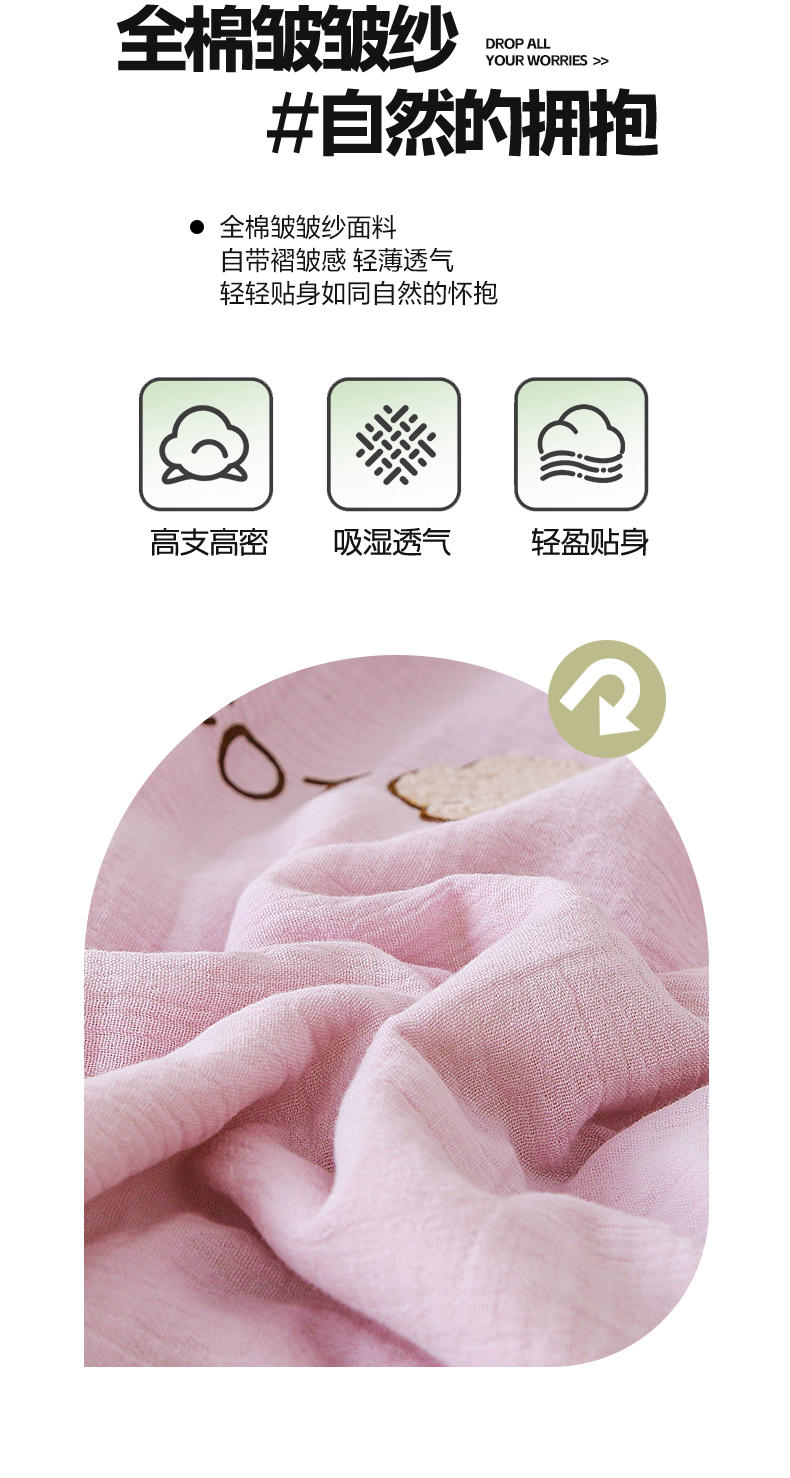 • 91家纺网 家纺一手货源 找家纺 薇玛仕 2026A类全棉双层皱皱纱立体烫画纯色款大豆夏凉被空调被 绉绉-浅紫