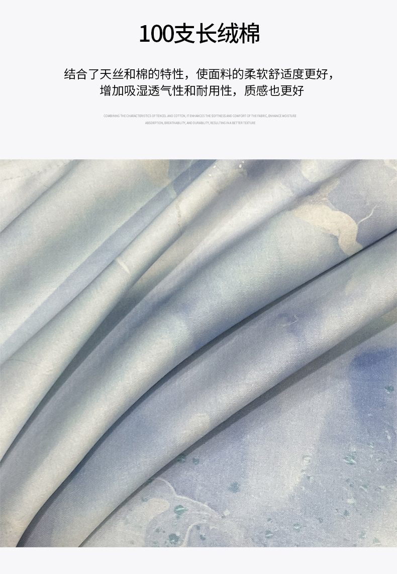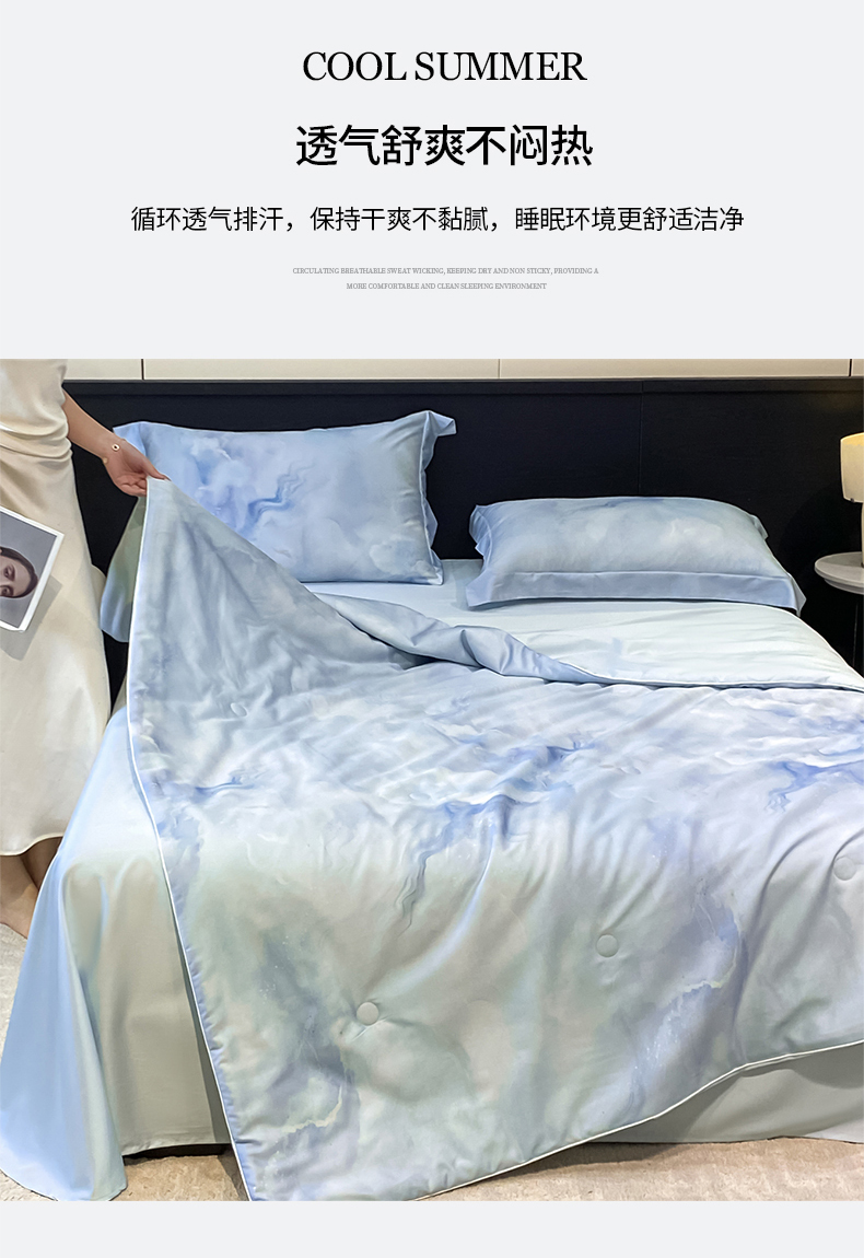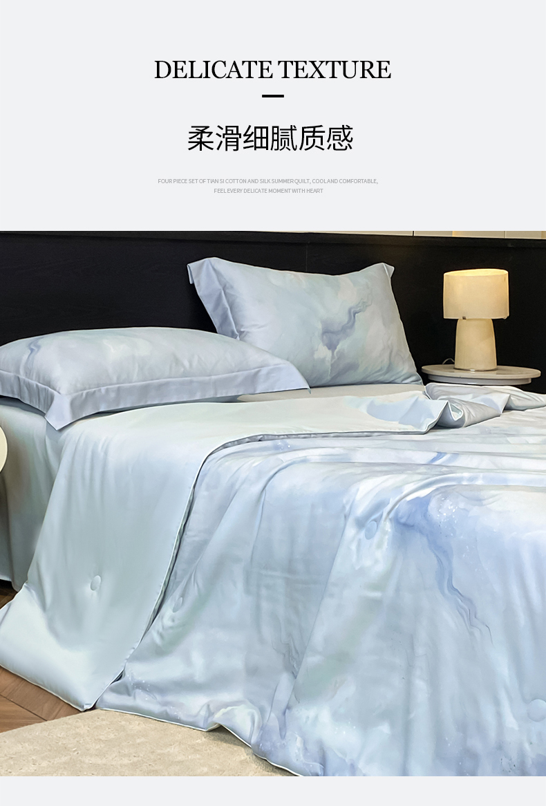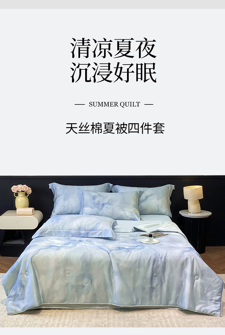 当前位置: 91家纺网 > 商品网购 > 床品套件 > 四件套 > 其它四件套 > 新方向 2026新款数码印花天丝棉夏被四件套-如愿(控价 标准368元 加大388元) 如愿-微光蓝