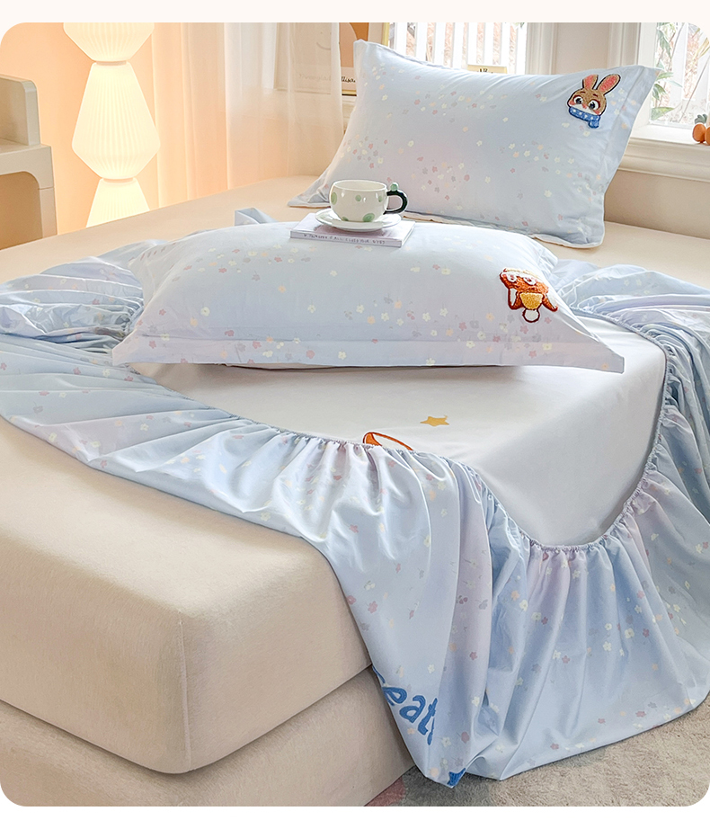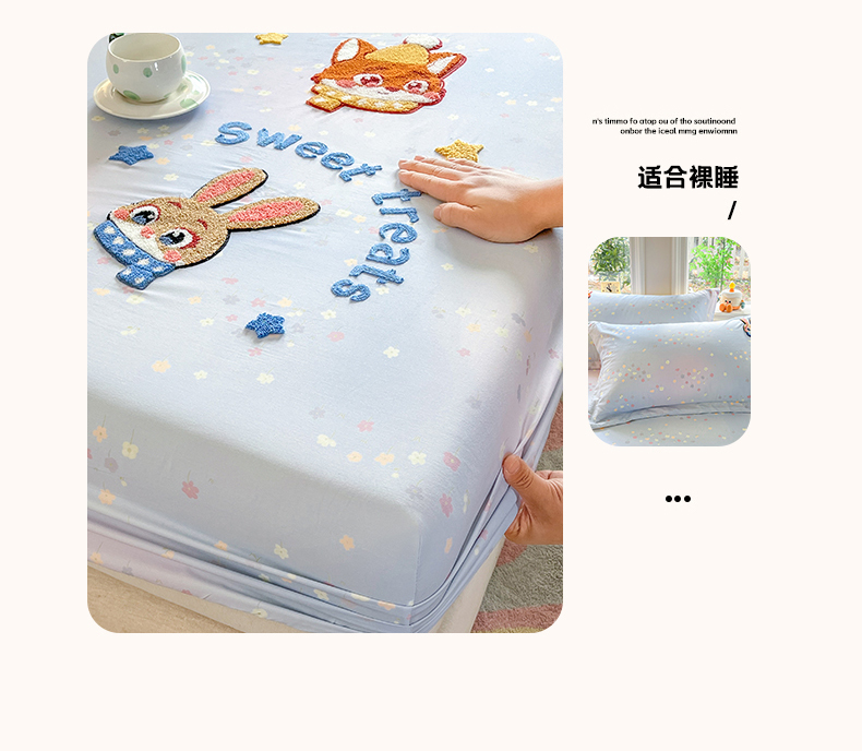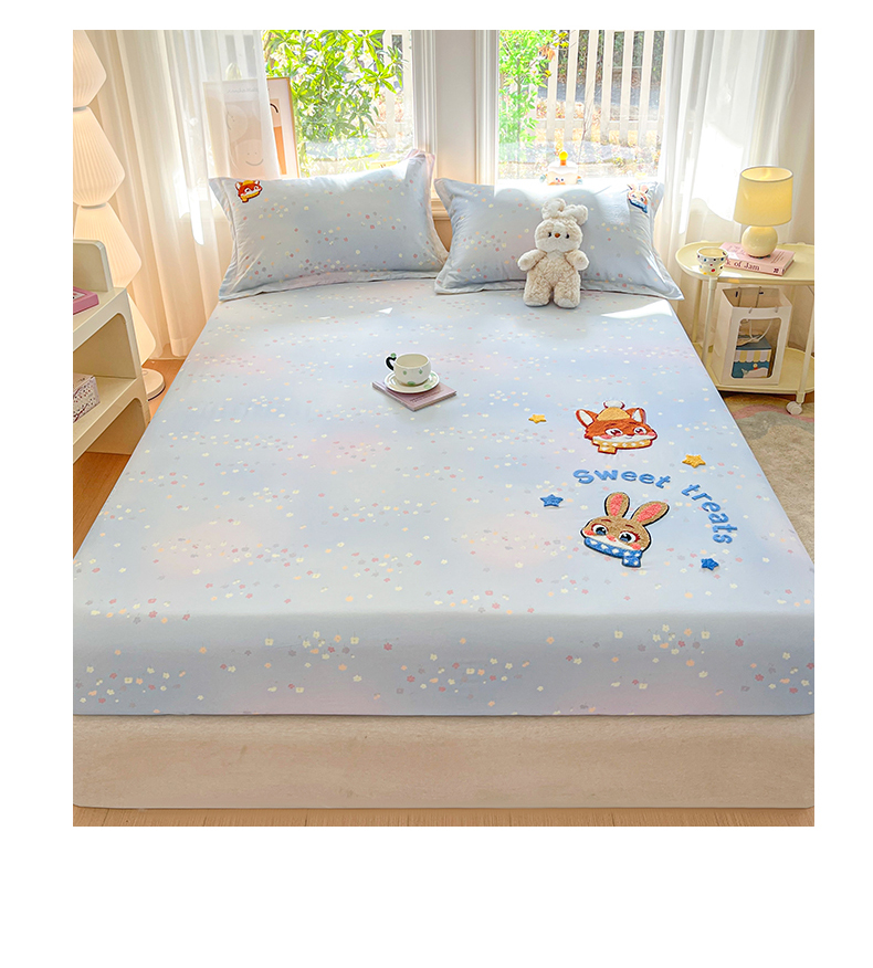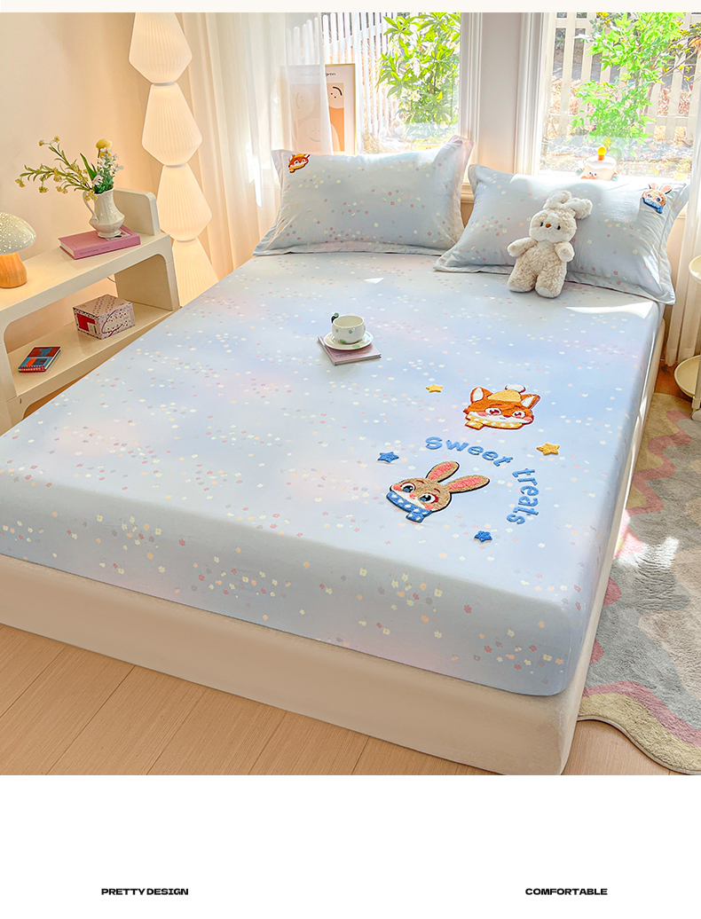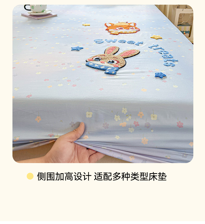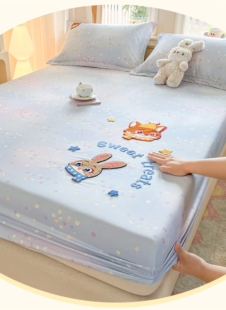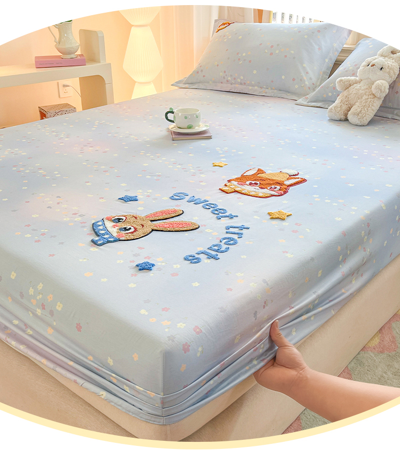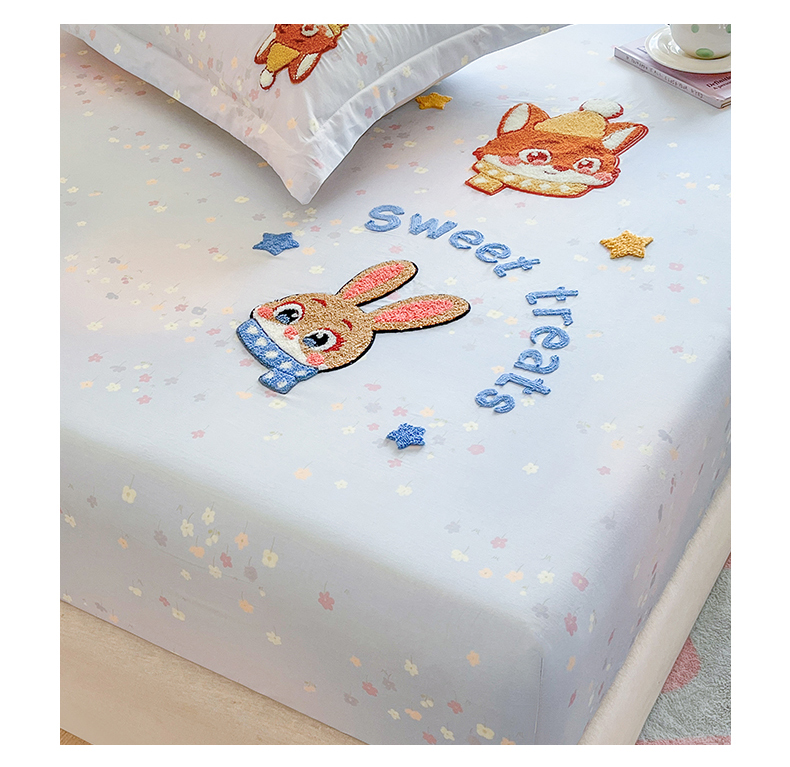 笙意家纺 2026新款50S全棉纯棉毛巾绣单品床笠床笠单件 星甜狐兔