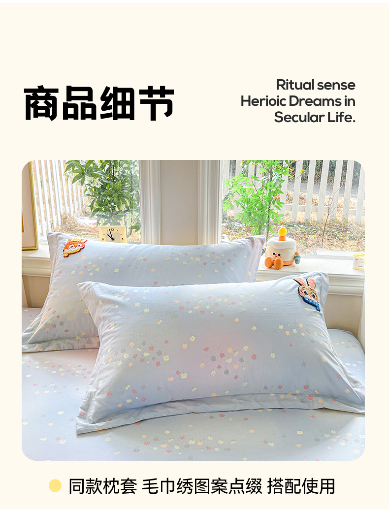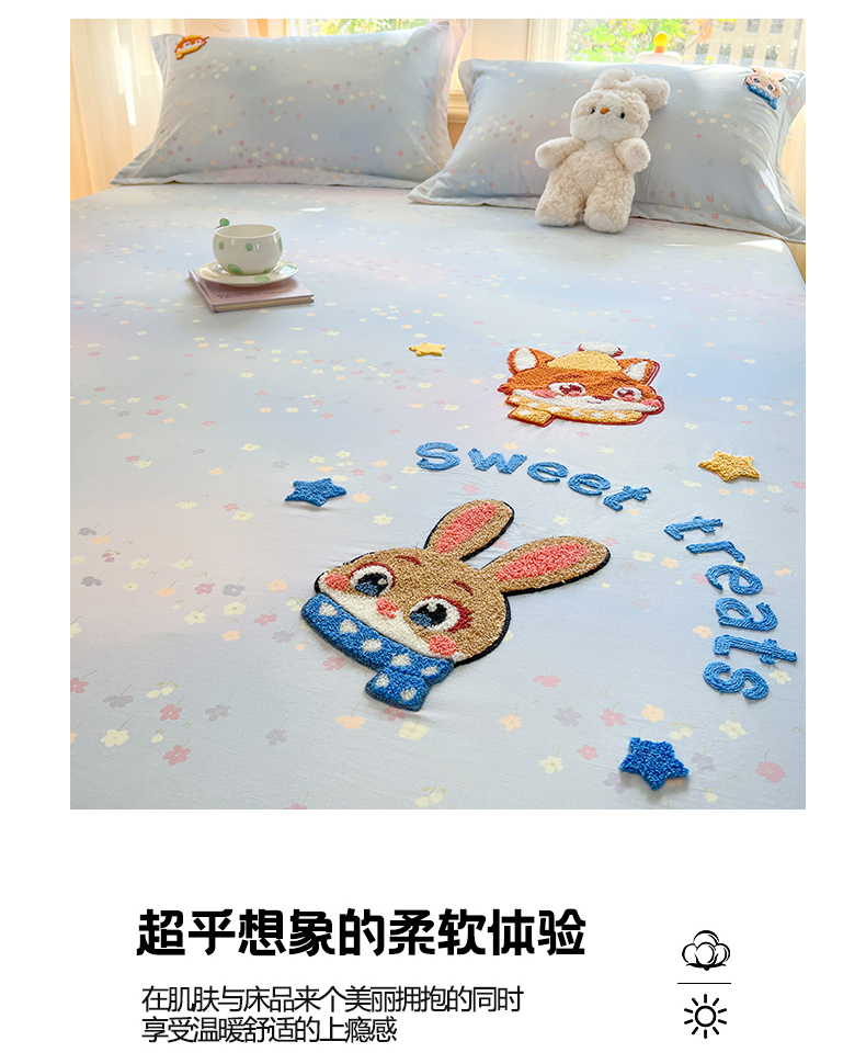 • 91家纺网 家纺一手货源 找家纺 笙意家纺 2026新款50S全棉纯棉毛巾绣单品床笠床笠单件 星甜狐兔