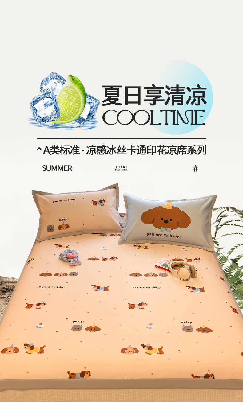 商品名称:懒猫家纺 2026春夏新款卡通印花A类凉感冰丝印花凉席席子 费尔岛