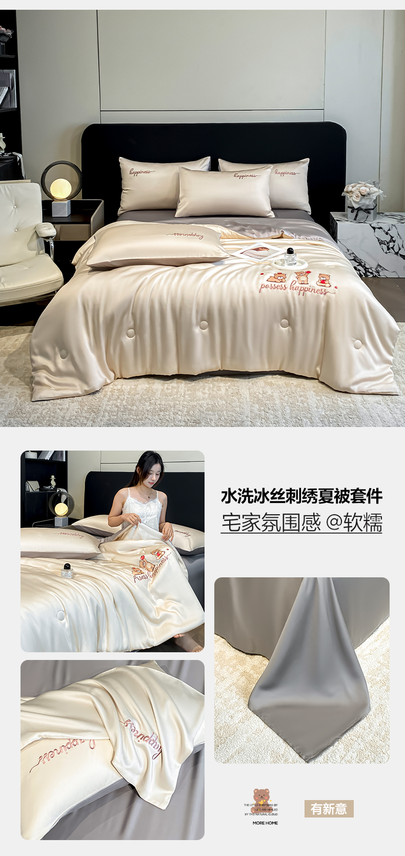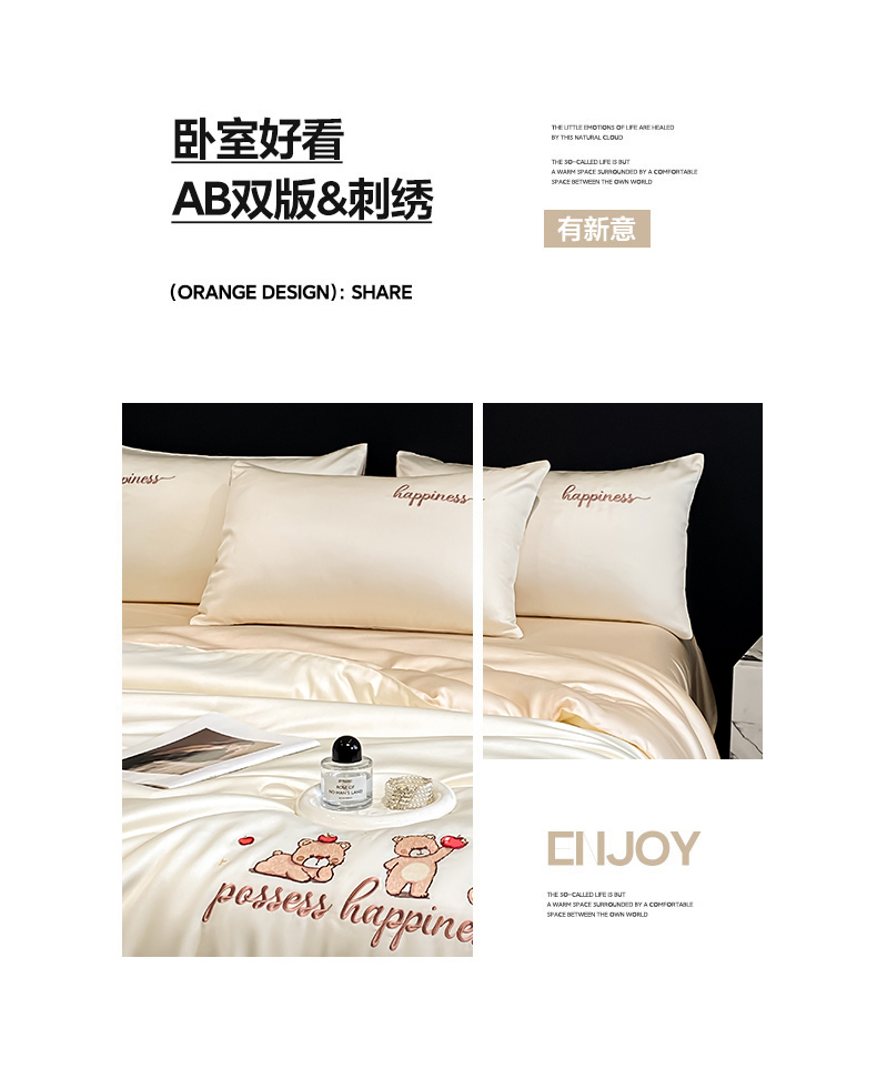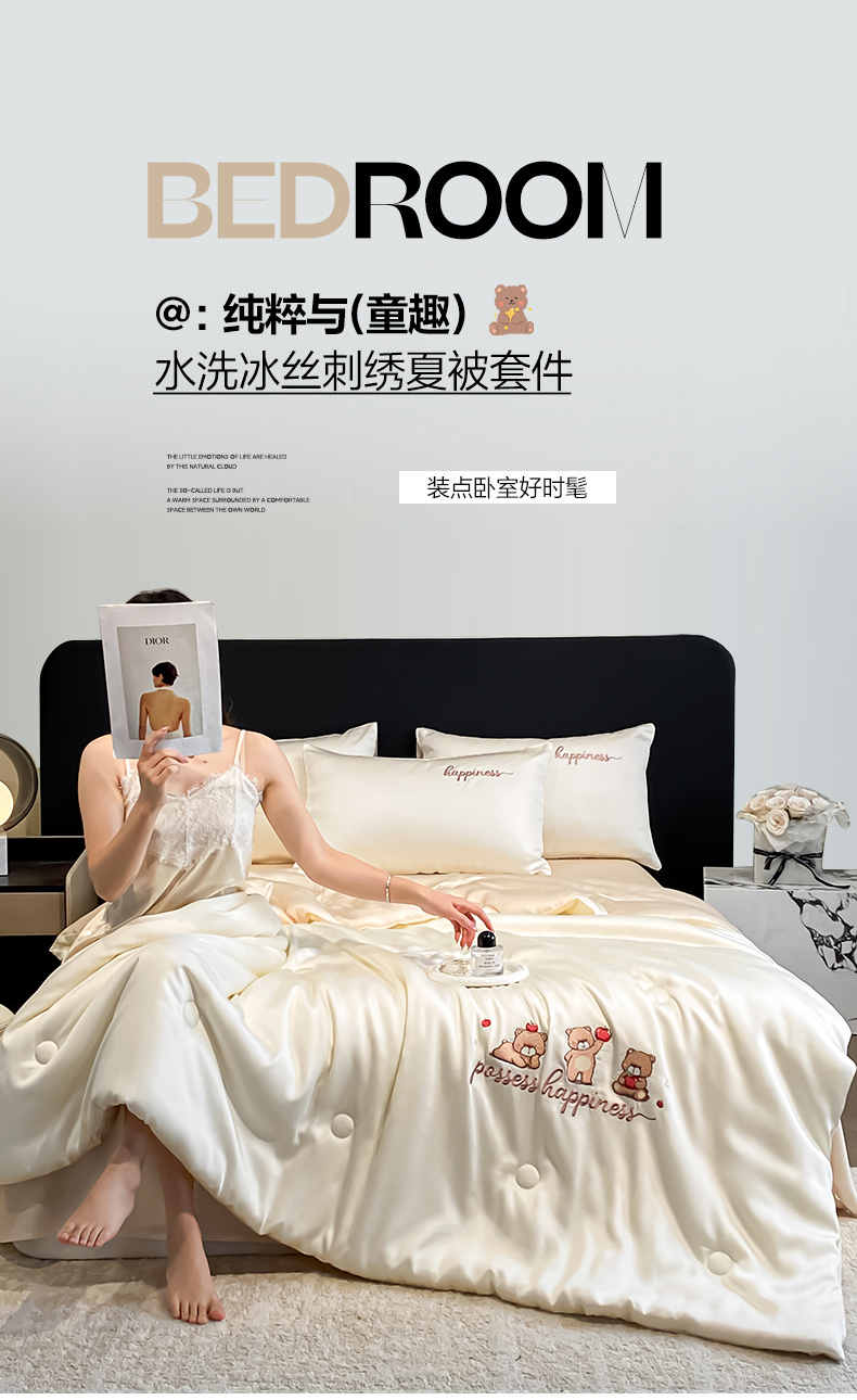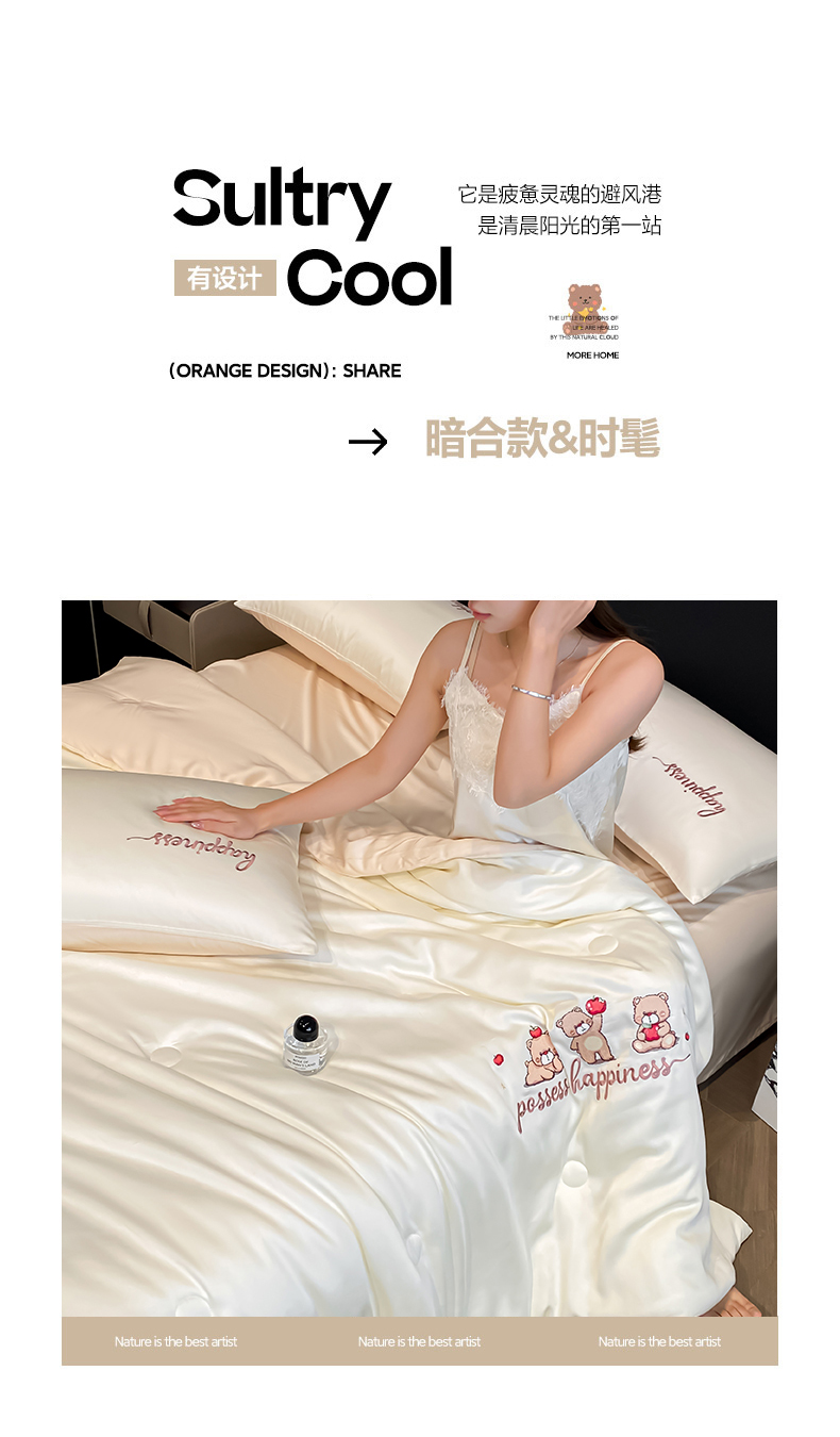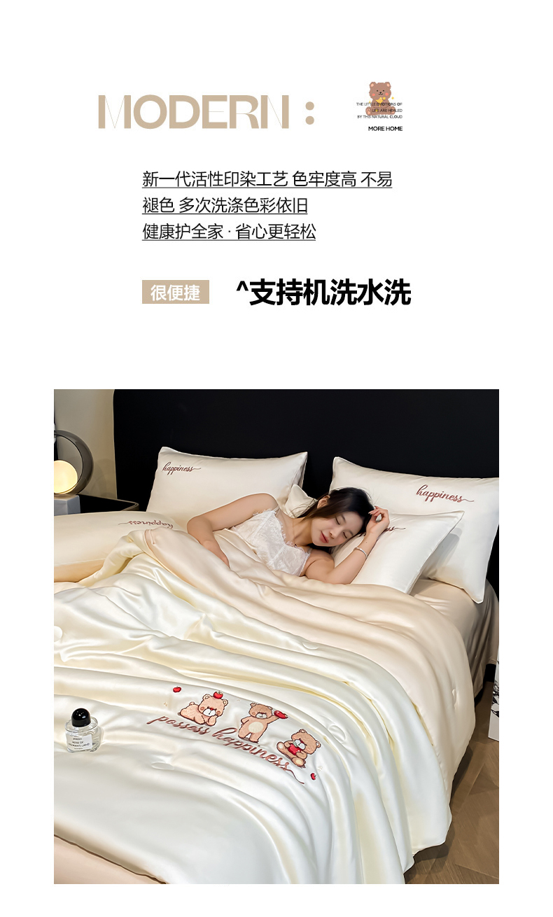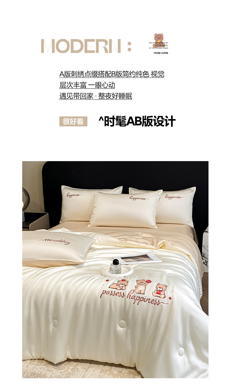 当前位置: 91家纺网 > 商品网购 > 床品套件 > 四件套 > 全棉普通四件套 > 云棉坊 2026新款水洗真丝冰丝刺绣夏被四件套-卡通款 萌萌熊-奶白+杏仁