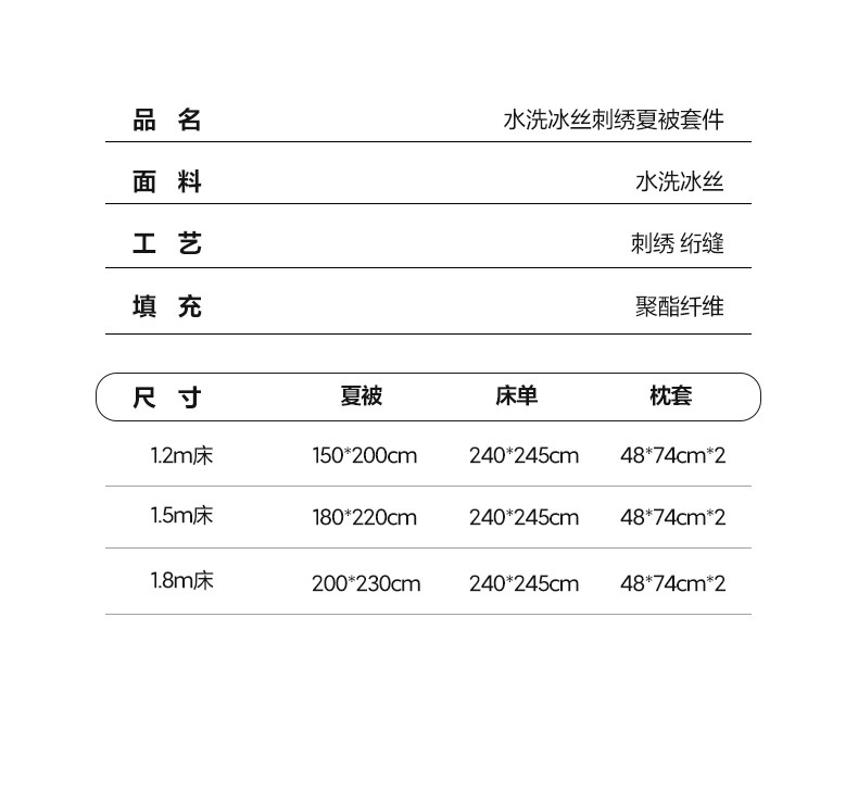 150*200cm夏被三件套 | ¥50.00 |