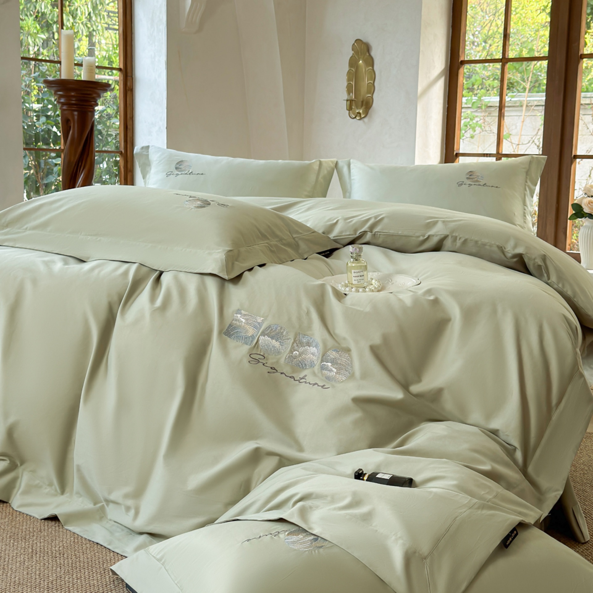 (总)芯丝路家纺 2026春夏新款初棉纯色绣花四件套(宽边嵌线工艺款)-菲奥娜,菲奥娜-摩卡棕,菲奥娜-芳菲紫,菲奥娜-莫奈绿,菲奥娜-浅咖黄,菲奥娜-月光灰,菲奥娜-珍珠白