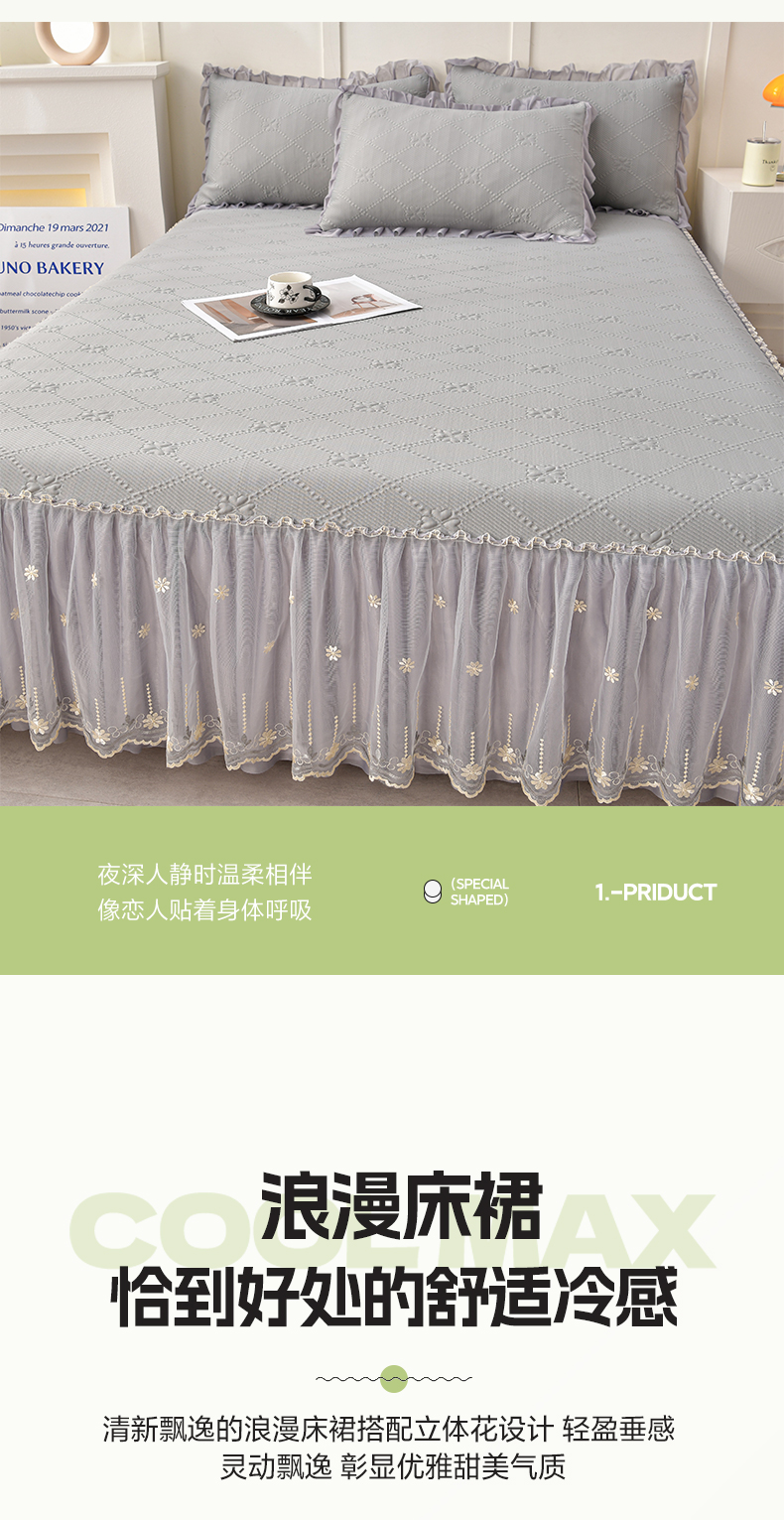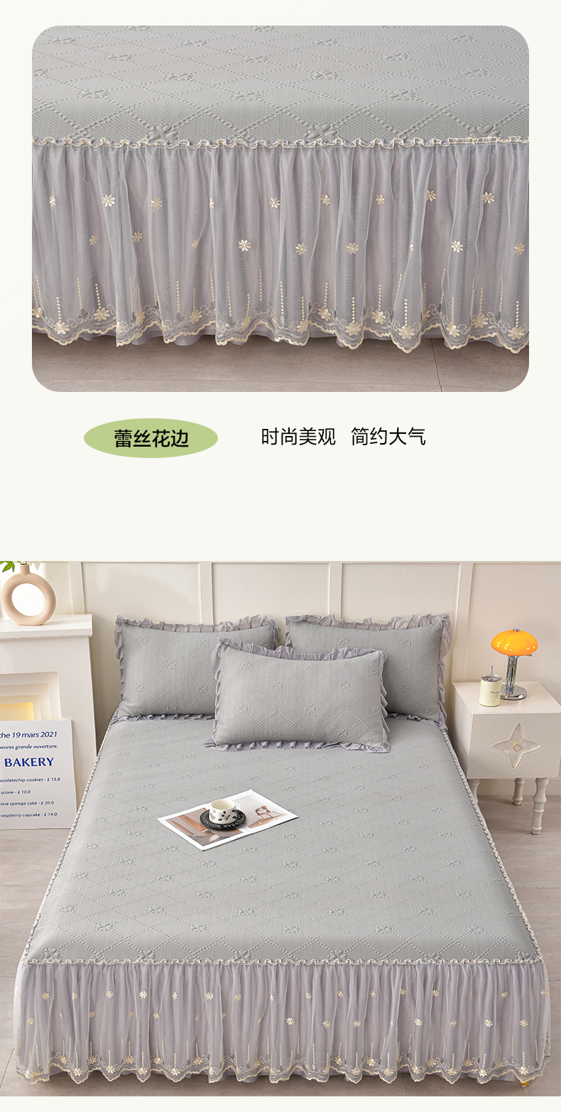 商品名称:畅畅家纺 2026新款网红爆款夏季立体爱心冰豆豆凉席床裙款三件套 爱心-灰