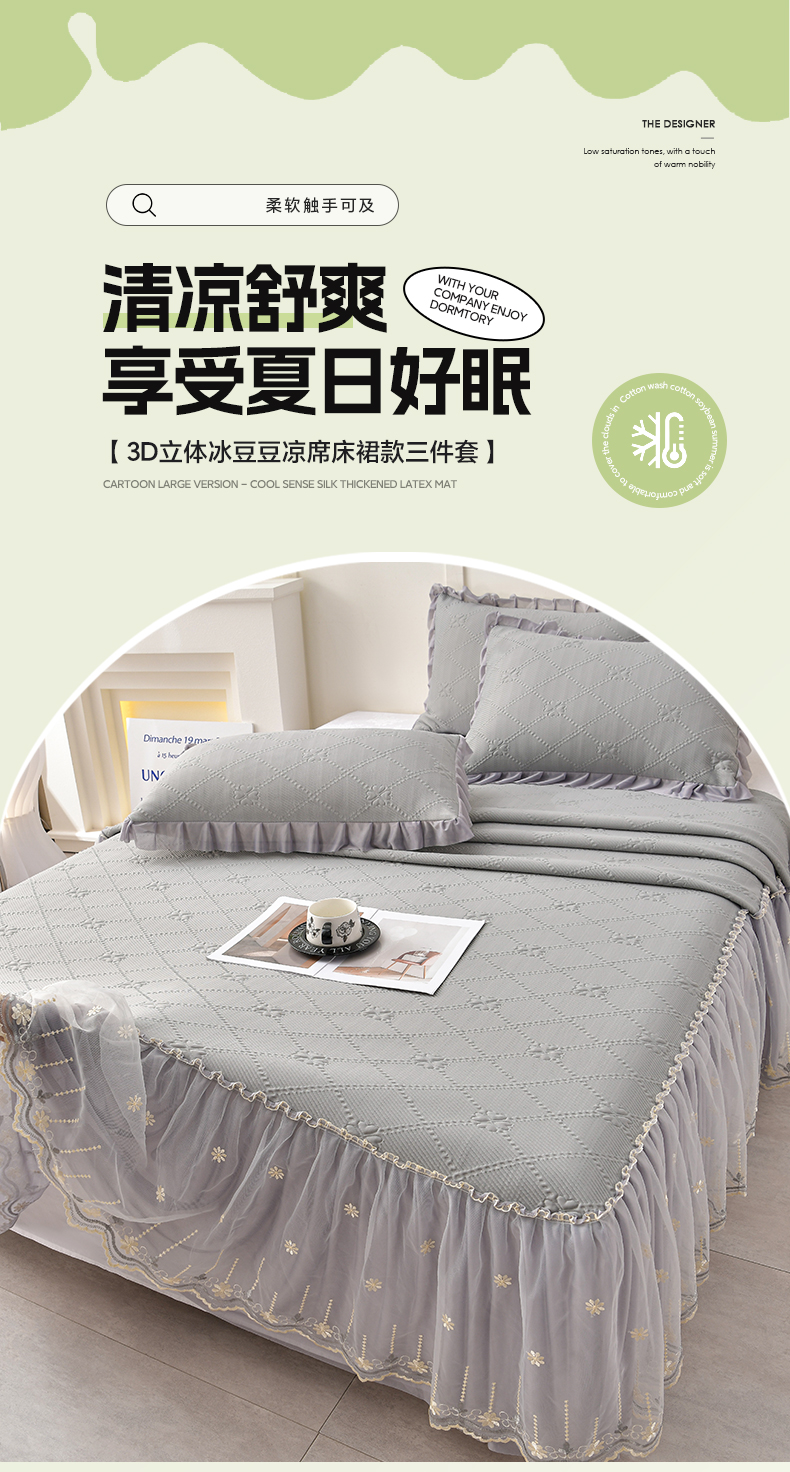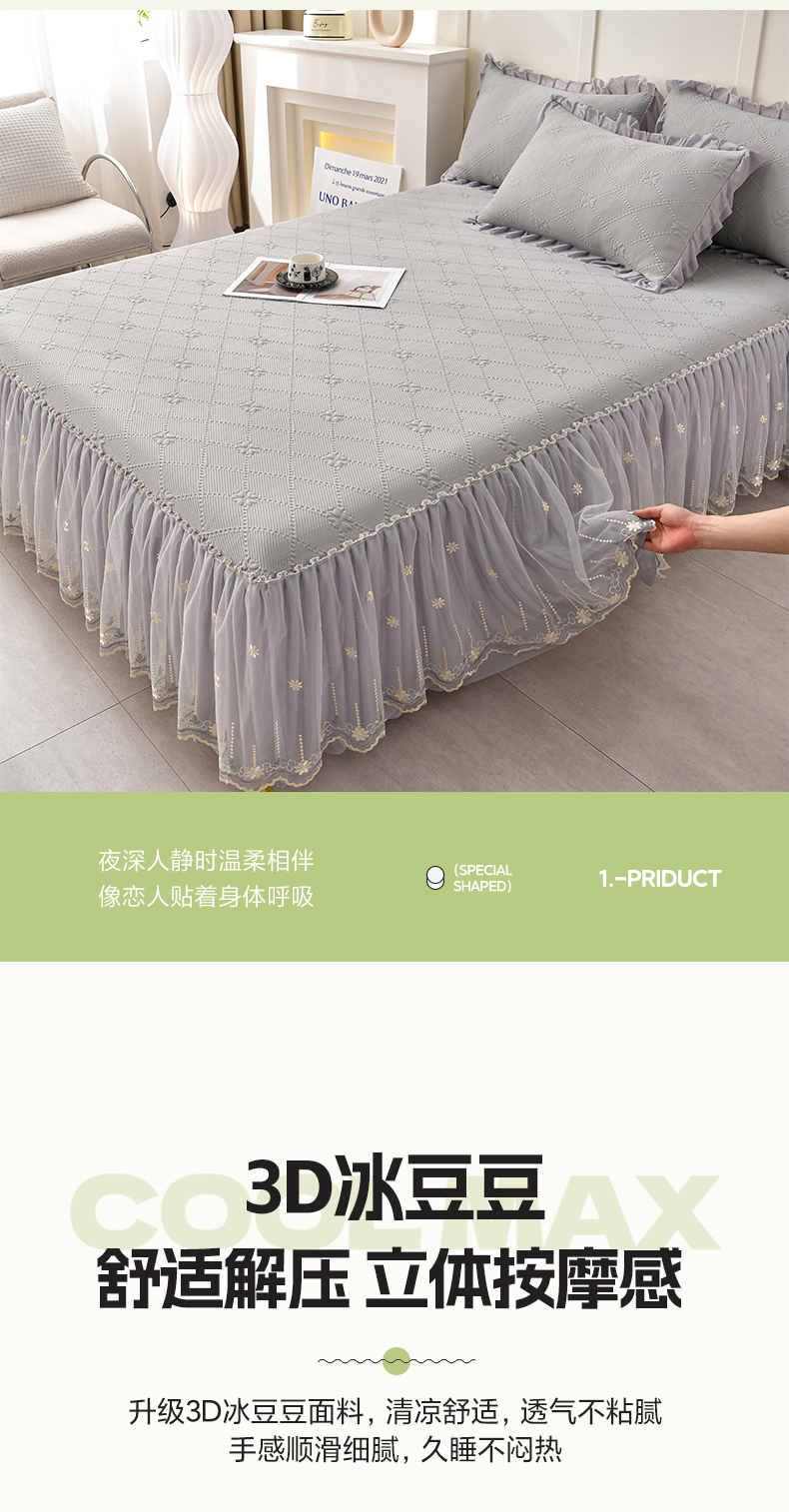 (总)畅畅家纺 2026新款网红爆款夏季立体爱心冰豆豆凉席床裙款三件套,爱心-豆沙粉,爱心-咖,爱心-浅绿,爱心-苹果绿,爱心-蓝,爱心-灰
