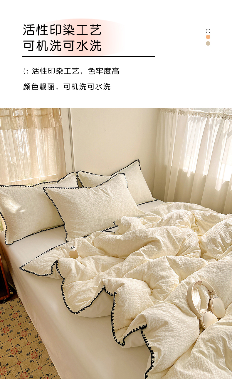 (总)仟网汇 2026新款泡泡纱三角针四件套--纯色系列,薄荷绿,抹茶绿,奶油粉,奶油黄,杏仁白,燕麦咖,芋泥紫