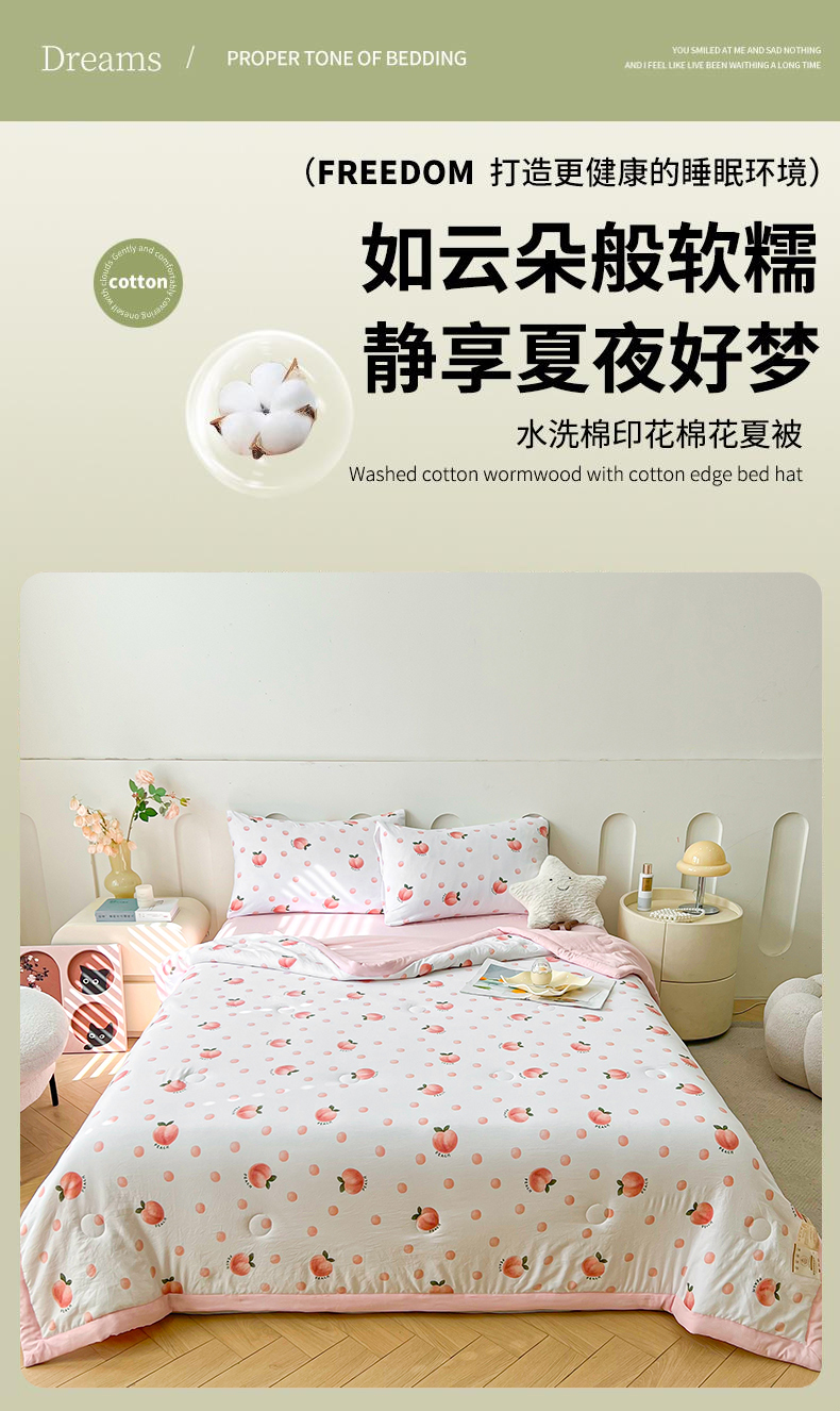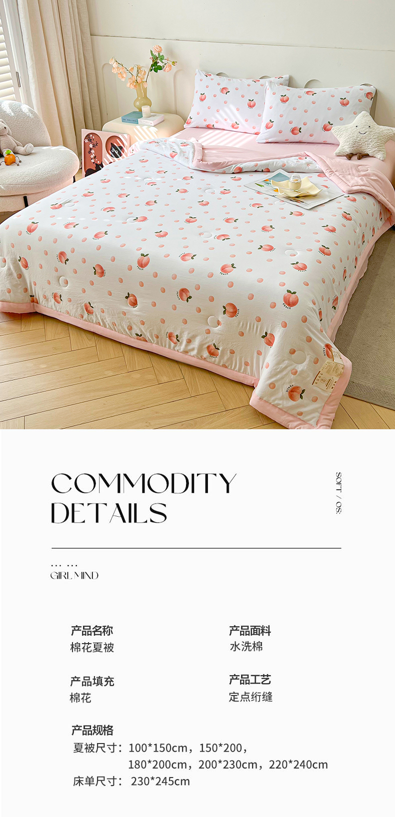 商品名称:爱屋及屋 2026新款小清新水洗棉棉花夏被夏凉被空调被 元气桃桃