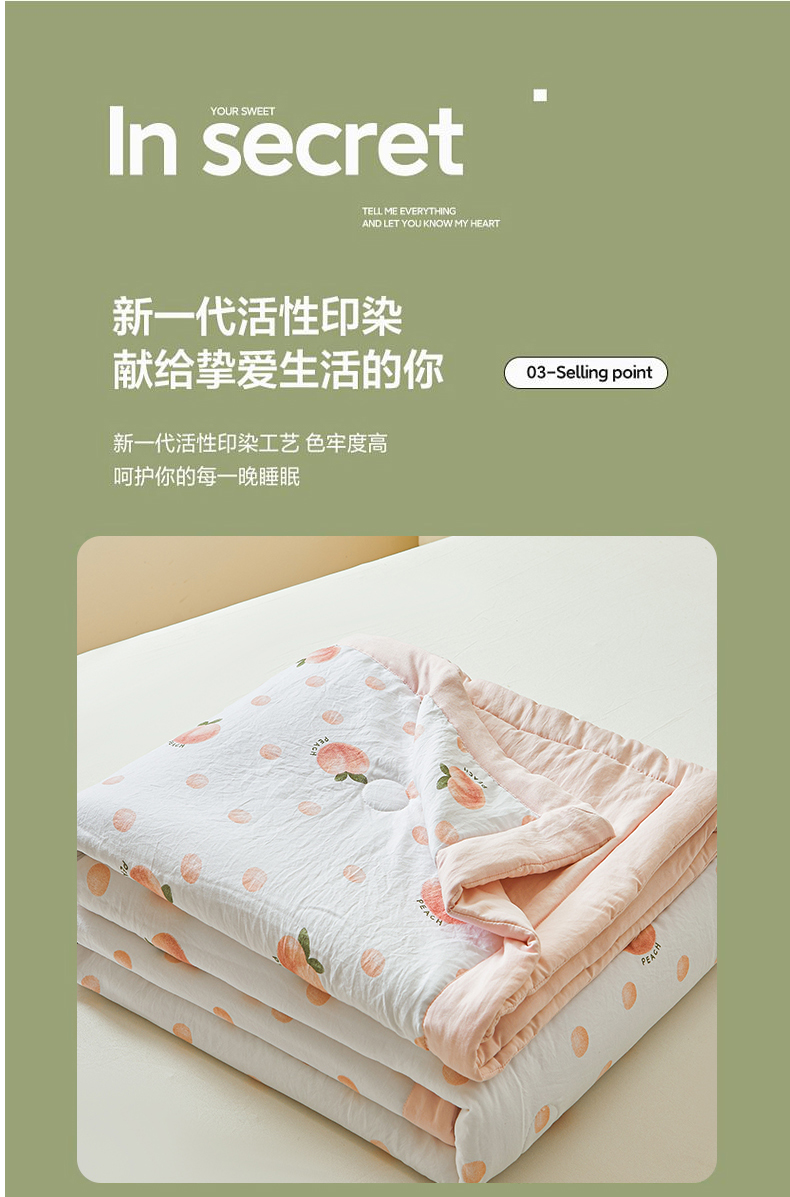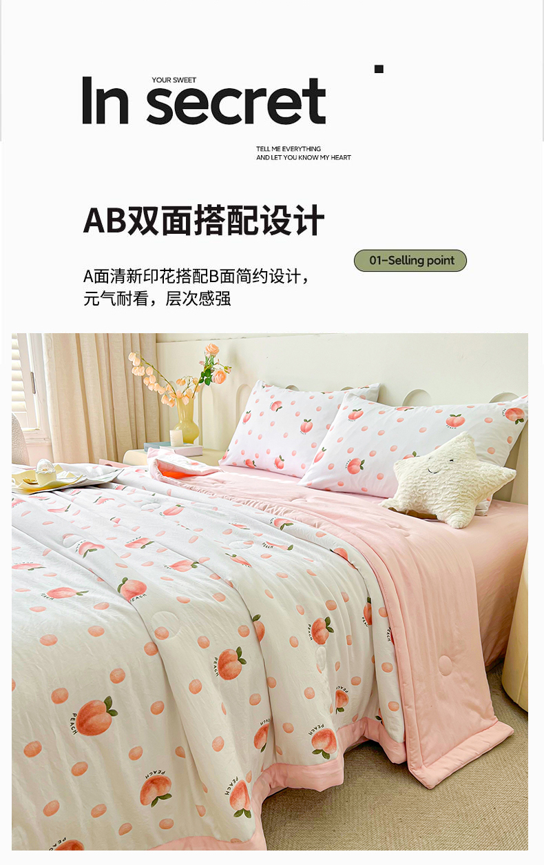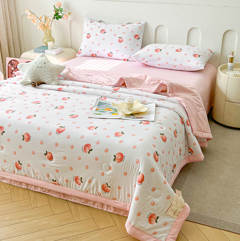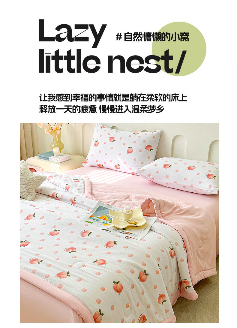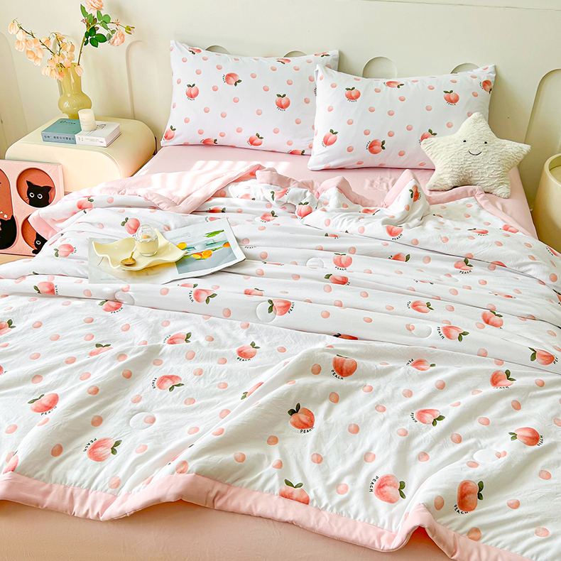 爱屋及屋 2026新款小清新水洗棉棉花夏被夏凉被空调被 元气桃桃