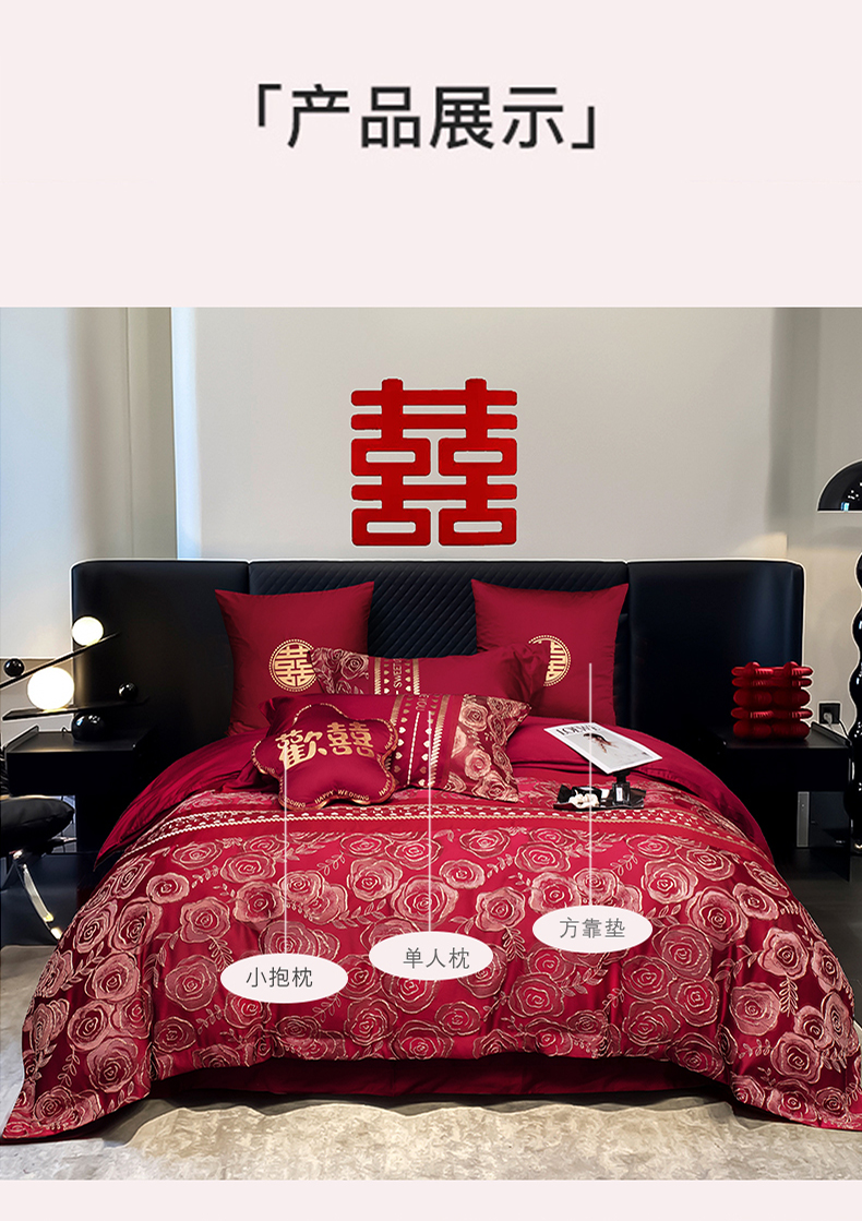 (总)甜咪咪婚庆 2025婚庆新品莱赛尔纤维天丝大提花全棉四件套多件套结婚套件,爱恋,璀璨,繁华,国色,红妆,锦绣,玫瑰,添香,相爱,相守,绚丽,绽放,醉玲珑,相依