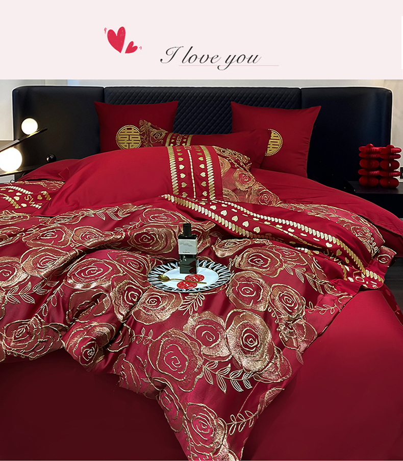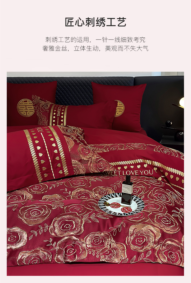 (总)甜咪咪婚庆 2025新款50支长绒棉全棉婚庆床单床盖四件套多件套刺绣工艺,洛可可,爱恋小熊,爱意久久,多子多福,花田喜事,节节高升,克拉恋人,浪漫情怀,怦然心动红,怦然心动玉,甜心玫瑰,温莎公主,伊甸园,醉红妆