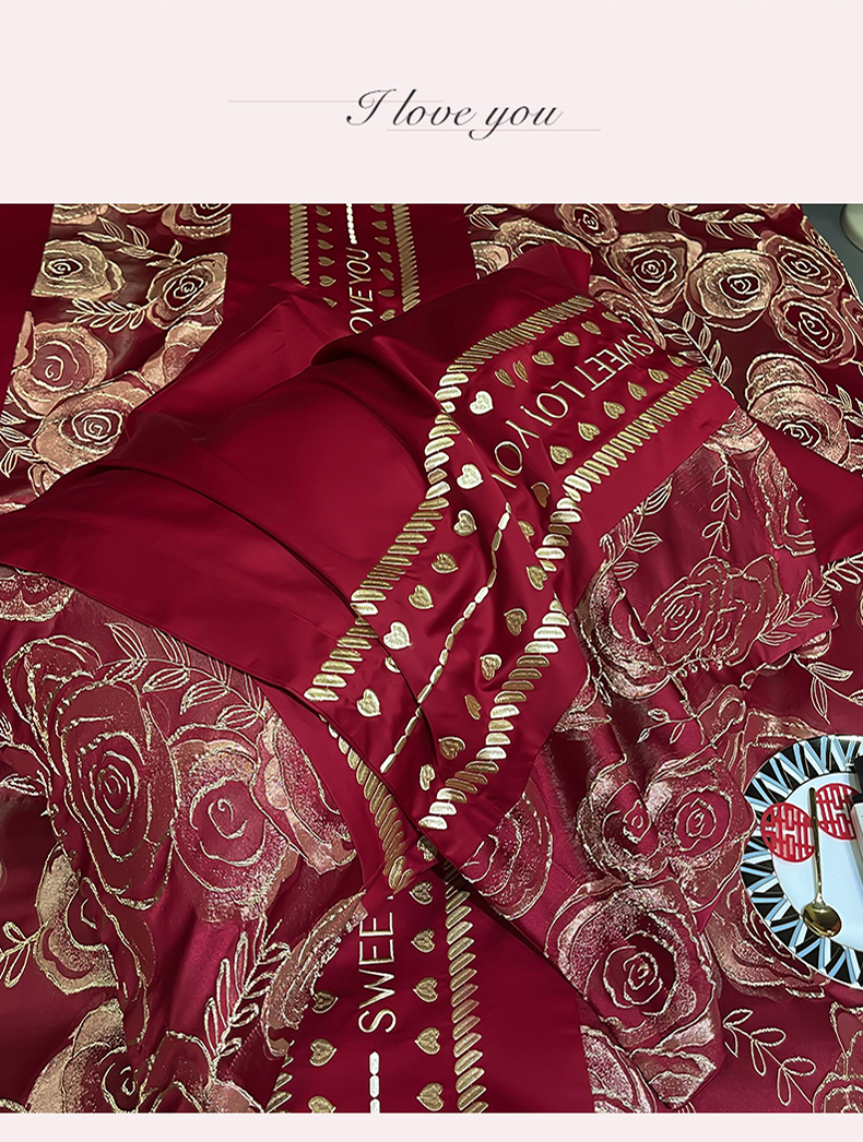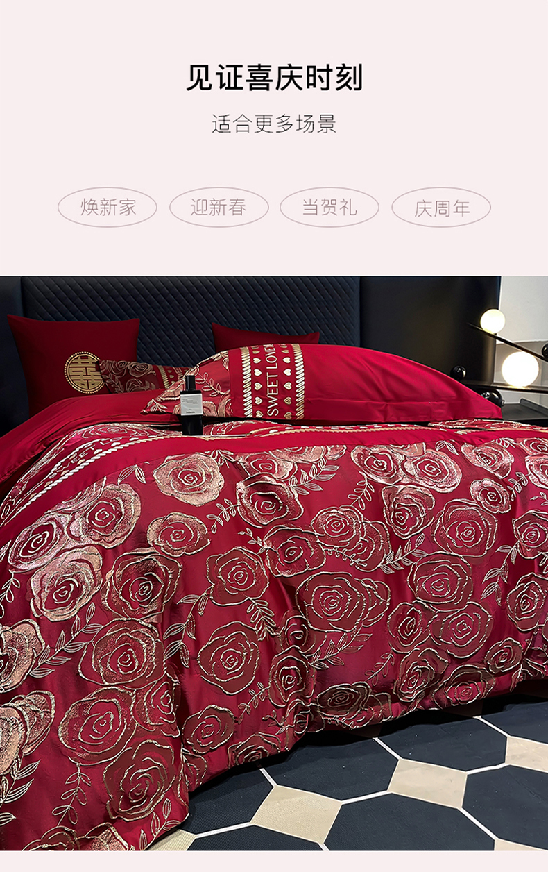 (总)甜咪咪婚庆 2026春夏新款大提花婚庆结婚四件套多件套床单床笠款,繁华,国色,红妆,添香,相爱,相守,相依,醉玲珑