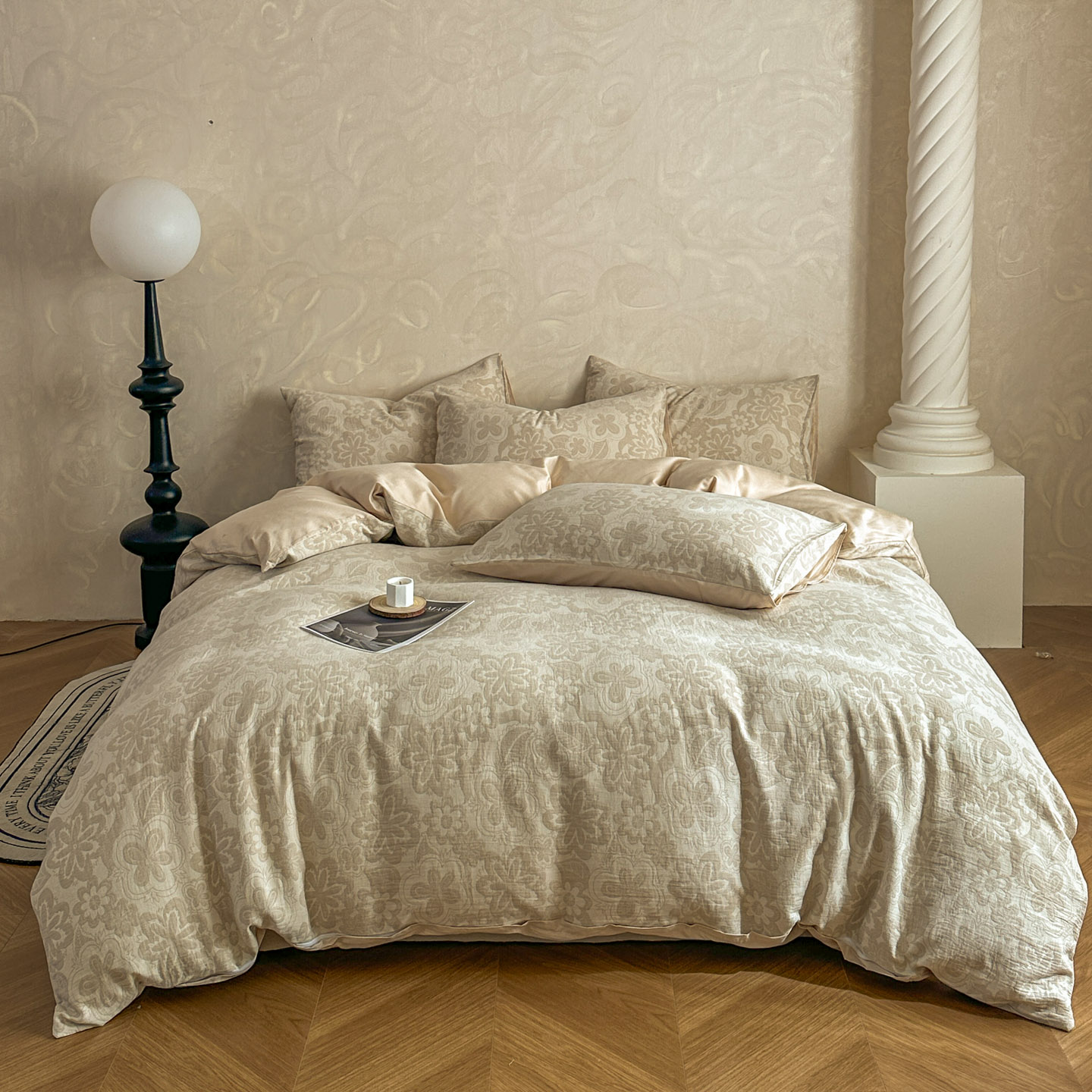 (总)田野 2026新款全棉水洗提花三层纱四件套,半糖主义 米灰,半糖主义 米驼,浮光 米灰,浮光 米驼,花语 米驼,卡维 淡绿,卡维 粉驼,瑞恩 豆沙粉,瑞恩 米驼