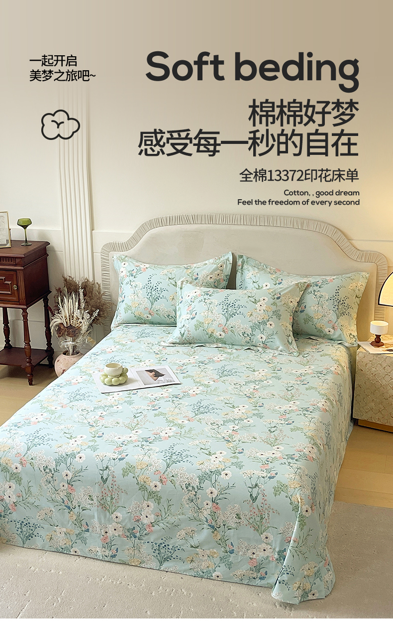 • 91家纺网 家纺一手货源 找家纺 (总)宝齐莱家纺 2026新款全棉纯棉13372印花单床单床单单件,浮光花影,花解语,洛可可,美如画,浅茉,清雅,午后花园,香榭丽,小确幸,烟花间,云间月,左岸晨雾