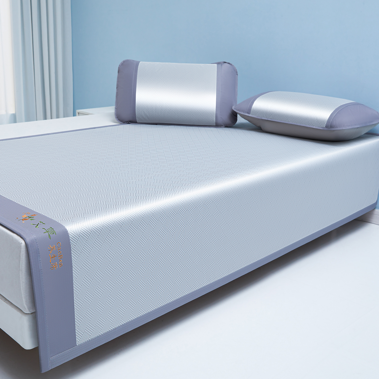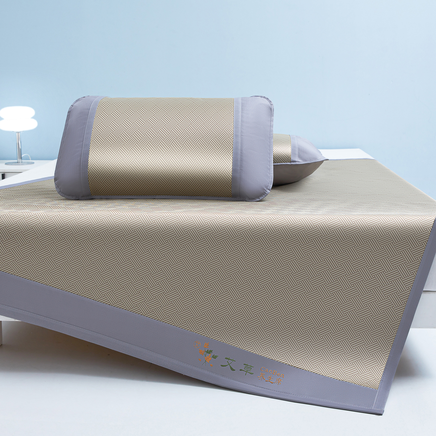 席都凉席工厂店 2026新款可机洗水洗艾草凉感冰丝高精密碳光软席饼干花三件套 饼干花-灰色