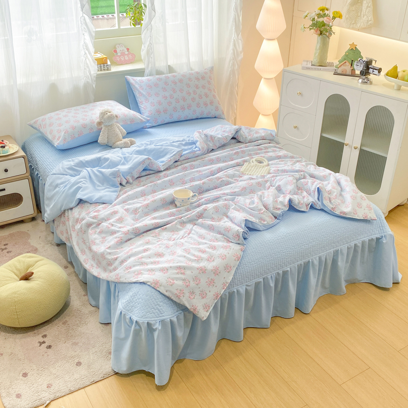 (总)优贝家纺 2026新款水洗棉古棉床盖夏被四件套,悠蓝,初晴,春日碎花,花海,甜心派,小狗派对,星喵人,星语,紫风铃