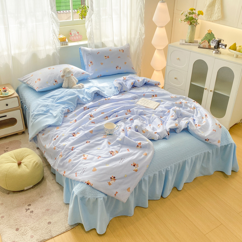 (总)优贝家纺 2026春夏新款韩系小清新水洗棉古法棉夹棉床盖四件套-风格二,杏芙萌犬,奶咖萌兔,时尚萌犬,桃粉花漾,甜心小熊,雾灰粉芙,星星萌宠,芋泥奶兔,芋雾花眠