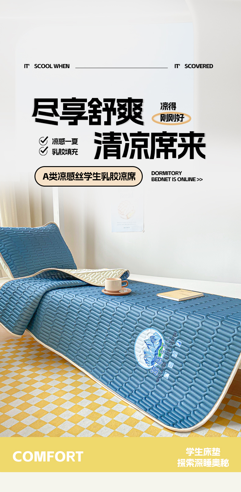 商品名称:(总)家品罗兰 2026新款夏季A类乳胶冰丝席纯色冰丝凉席宿舍单人席子软可机洗可折叠床单软垫床垫夏天空调席两三件套