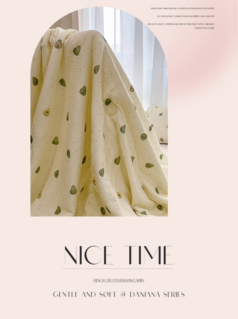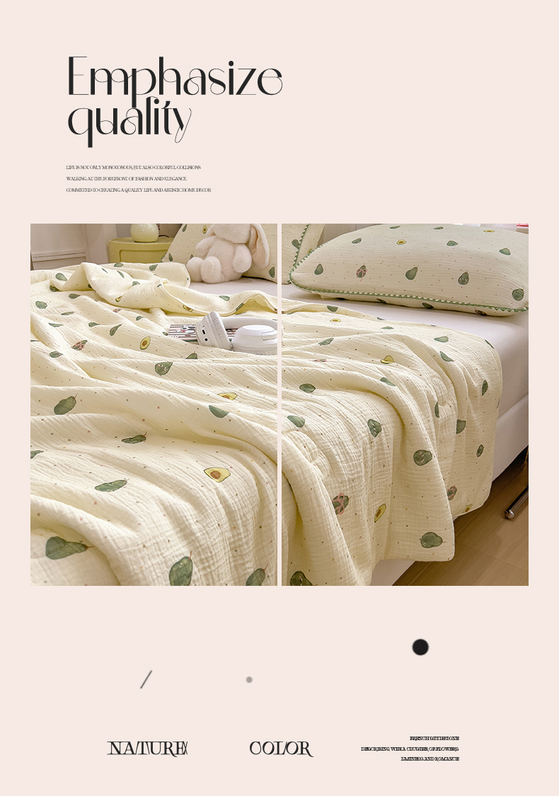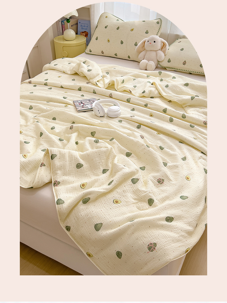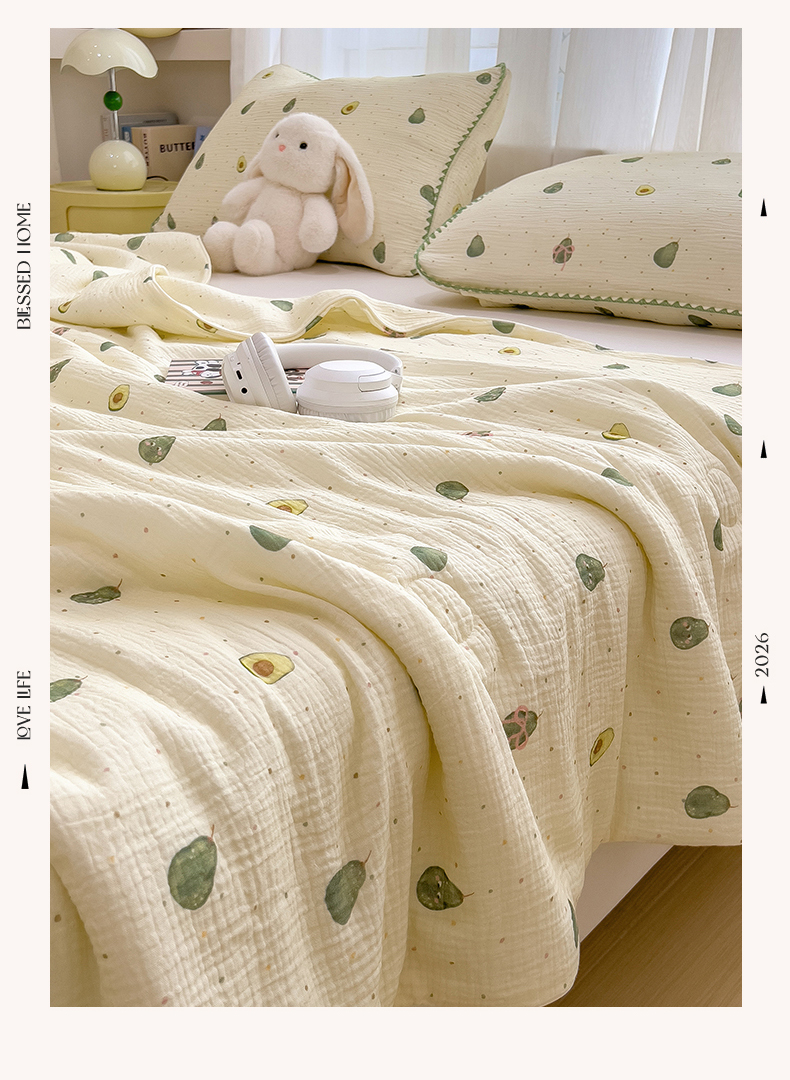 商品名称:兄弟坊 2026春夏新款全棉纯棉印花双层皱皱纱(滚边款)夏被纱布夏凉被午睡被盖毯夏凉被 柔青