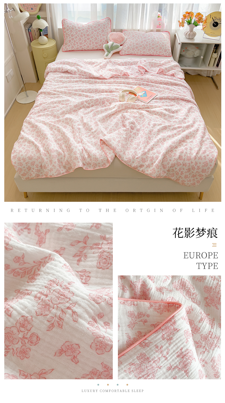 (总)兄弟坊 2026春夏新款全棉纯棉印花双层皱皱纱(滚边款)夏被纱布夏凉被午睡被盖毯夏凉被,花影梦痕,吉伊眠,莫奈雾,青芽夏,穹宇梦,柔青,象星语,星熊派,云间羽,云绮,组合图仅供展示不可下单
