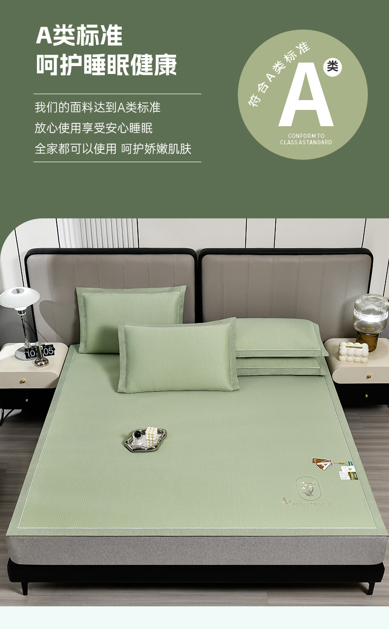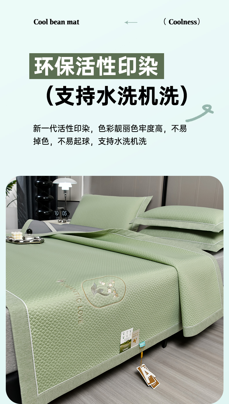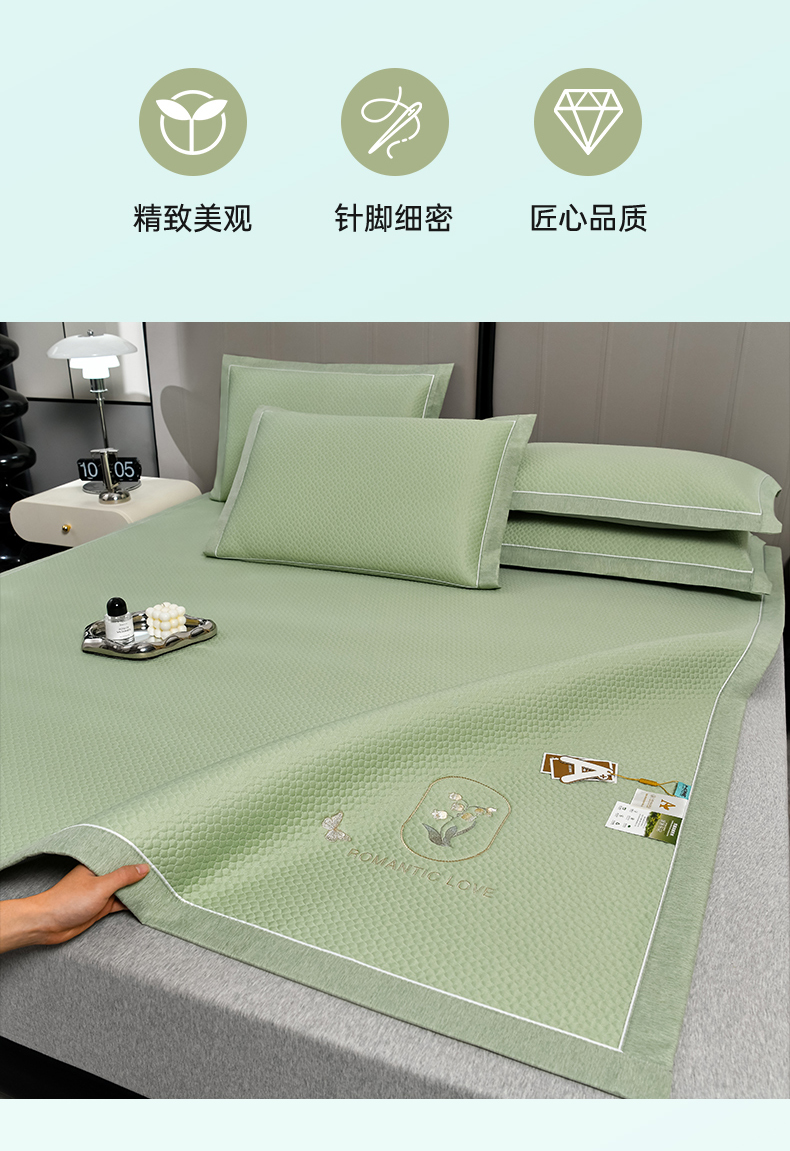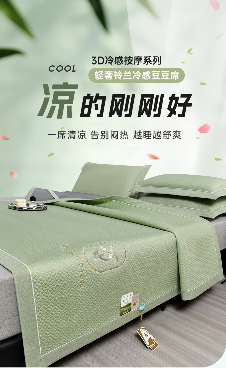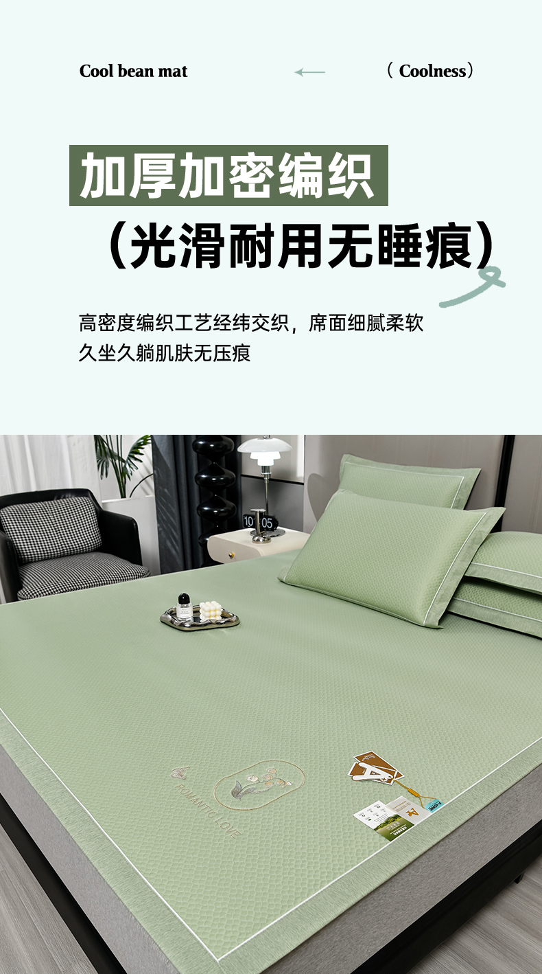 商品名称:小牛席业 2026新款轻奢风铃兰冷感豆豆席系列凉席藤席冰藤席冰丝席竹席乳胶席 绿色