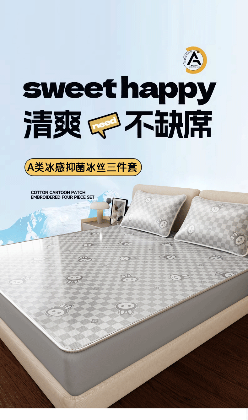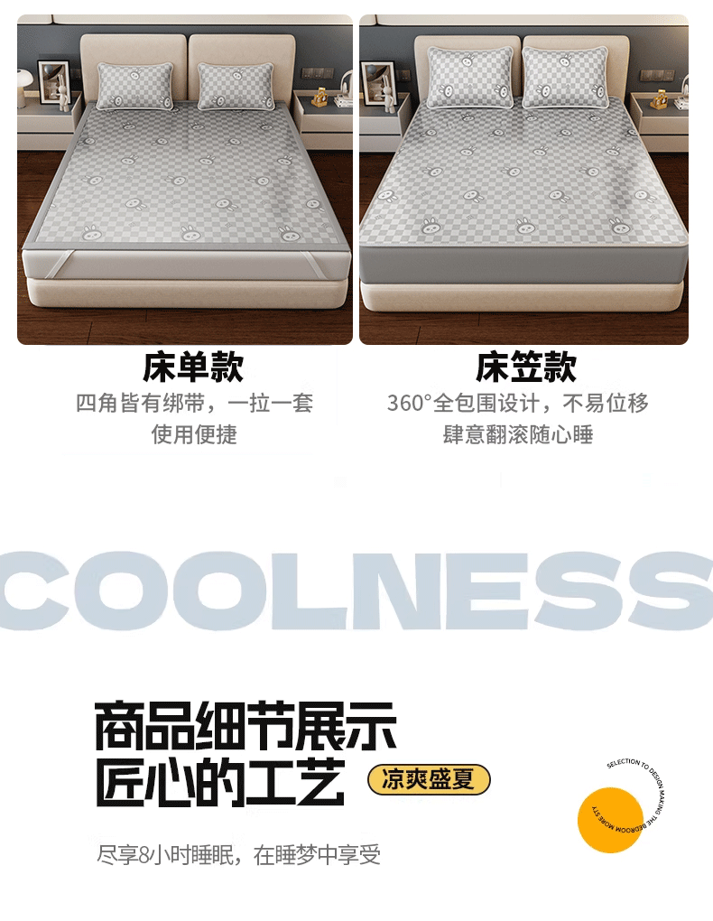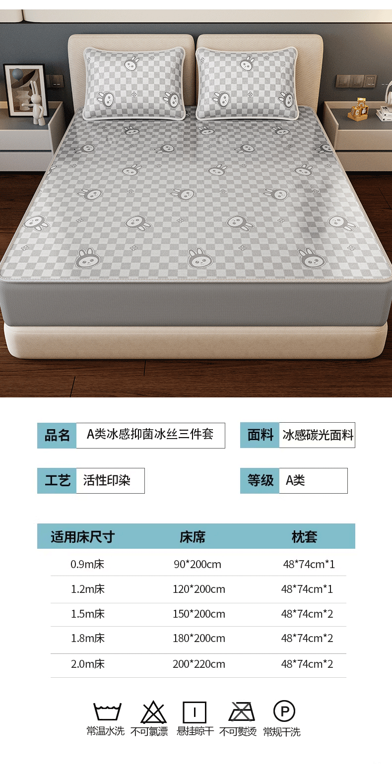 商品名称:(总)好福居 2026新款A类冰感抑菌印花冰丝席凉席-床笠款-床席款