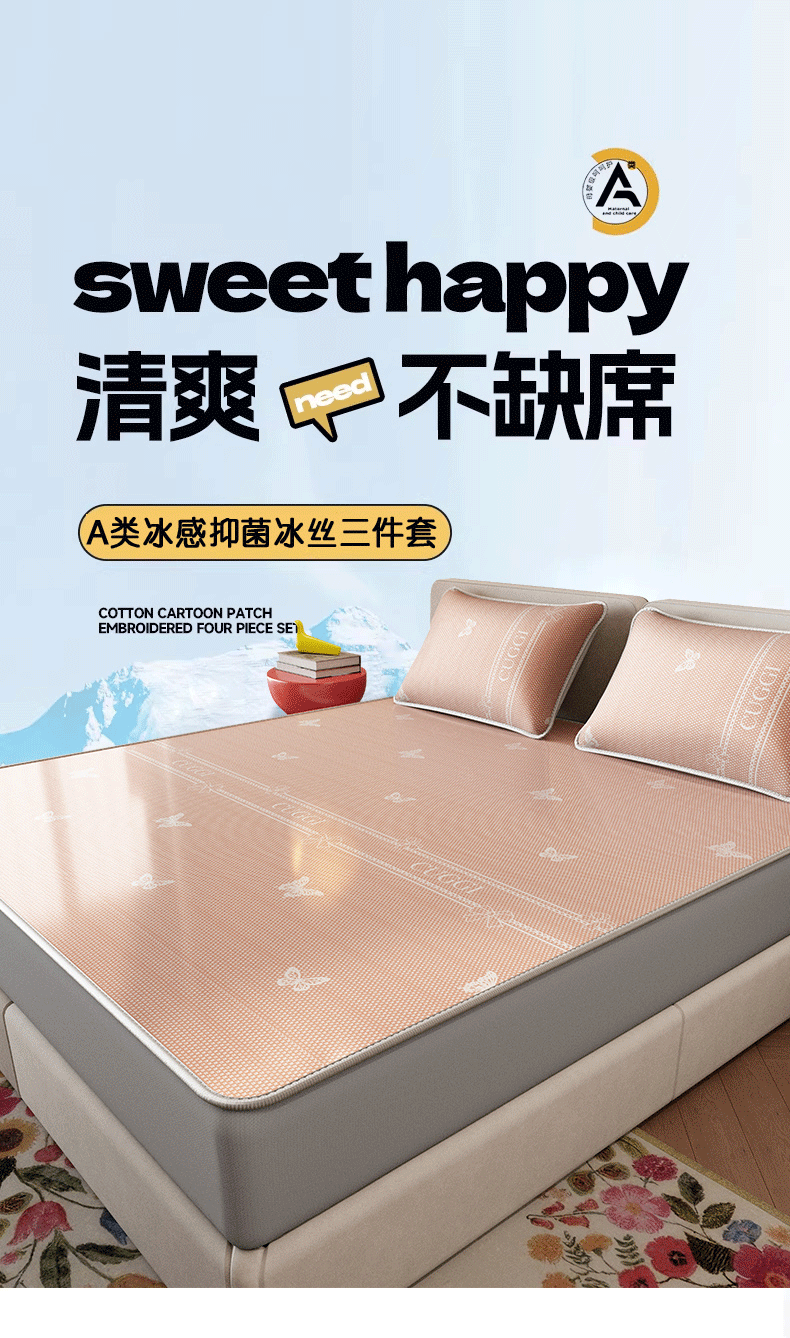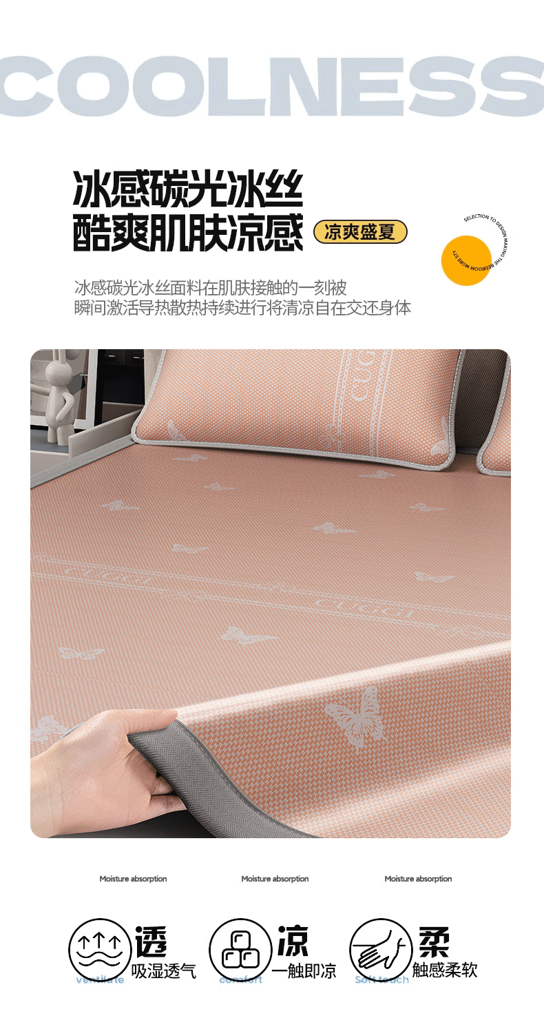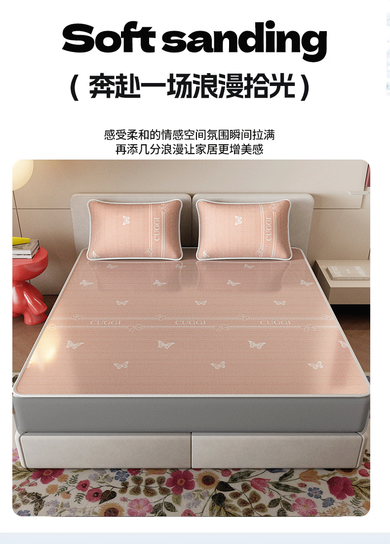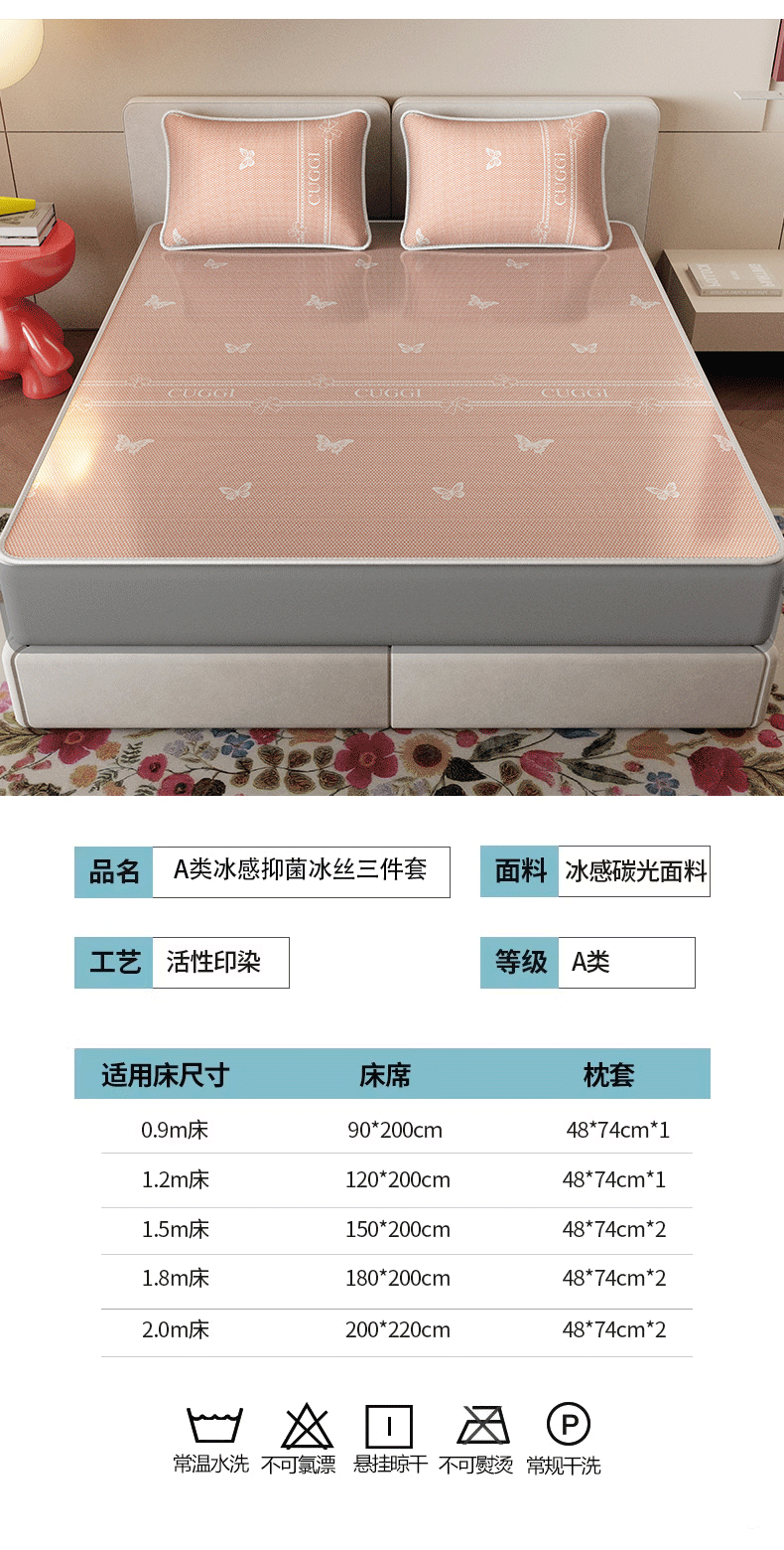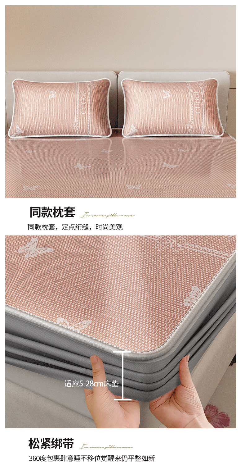 当前位置: 91家纺网 > 商品网购 > 床上用品 > 凉席 > 凉席套件 > 好福居 2026新款A类冰感抑菌印花冰丝席凉席-床笠款-床席款 蝴蝶粉-床笠款