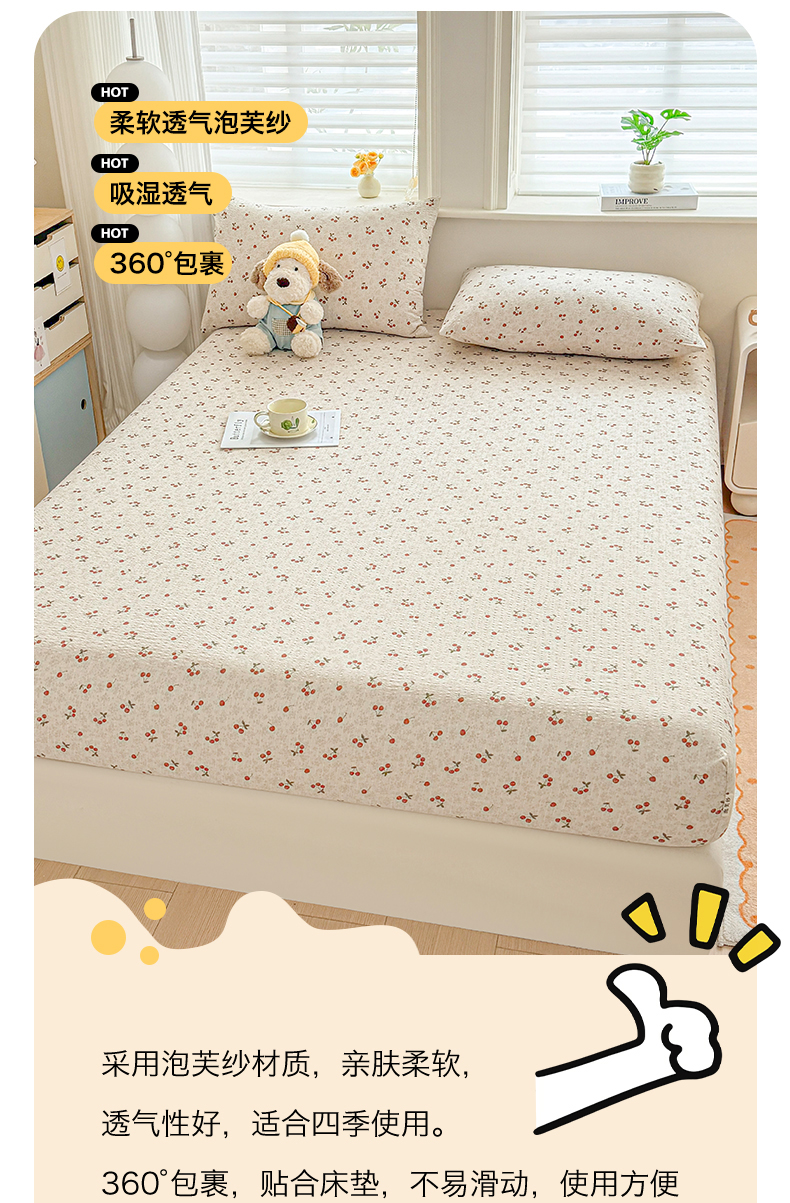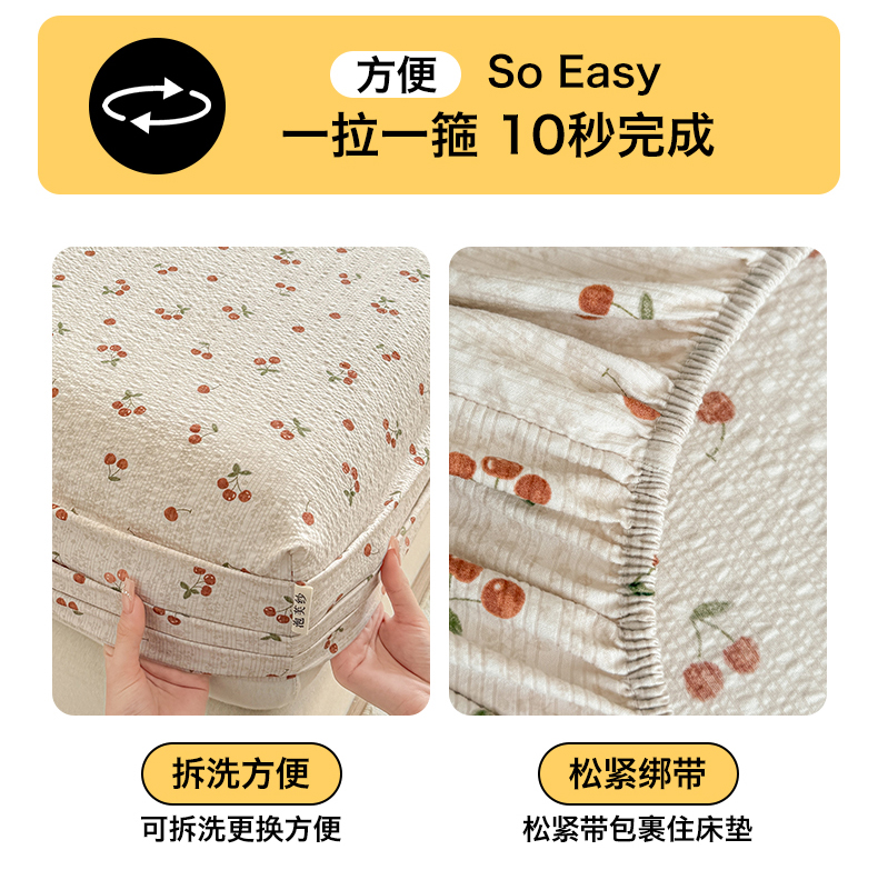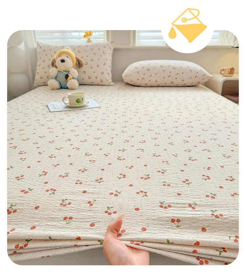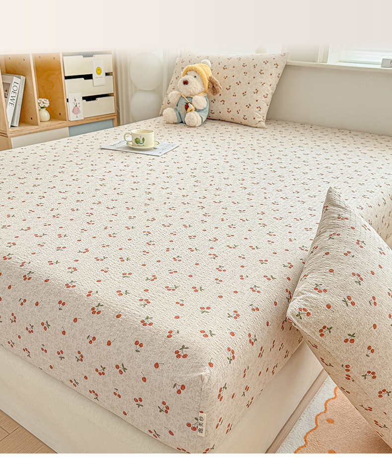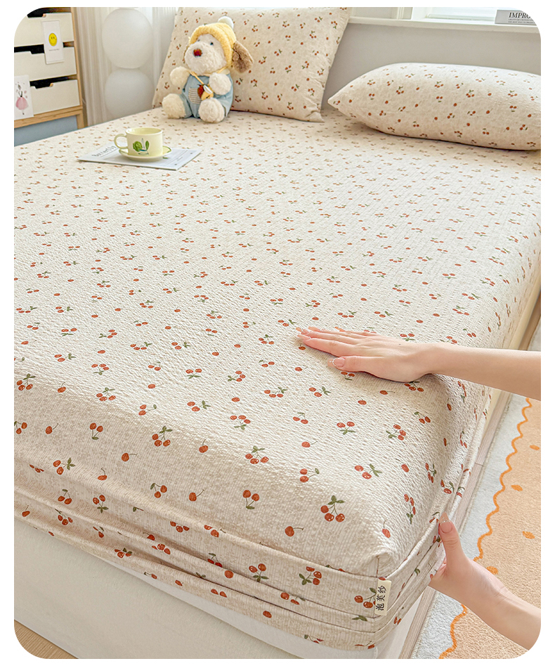 • 91家纺网 家纺一手货源 找家纺 优眠坊 2026春夏新款泡芙纱印花单床笠 床笠单件 樱桃心事-单层