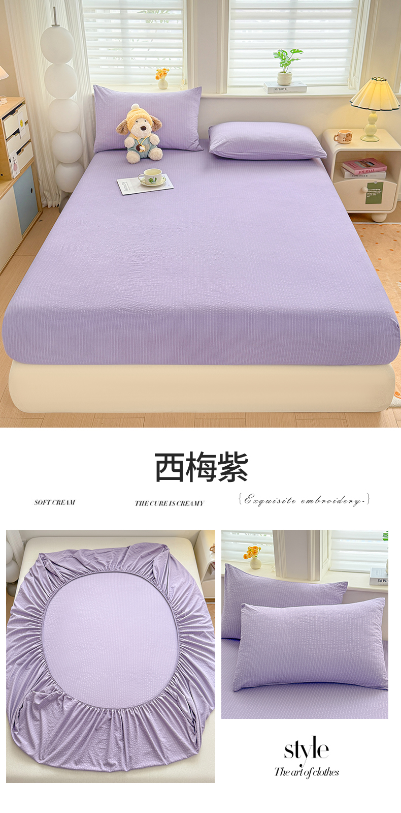 • 91家纺网 家纺一手货源 找家纺 (总)优眠坊 2026新款简约色织水洗棉麻人字纹单品床笠单件床笠,组合图仅供展示不可下单,极光紫,摩卡棕,慕斯蓝,南瓜橘,暖沙色,浅米杏,时空灰,樱草绿