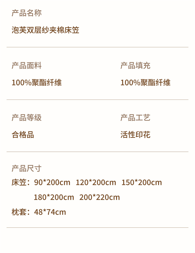 90x200cm单床笠+枕套一只 | ¥35.00 |