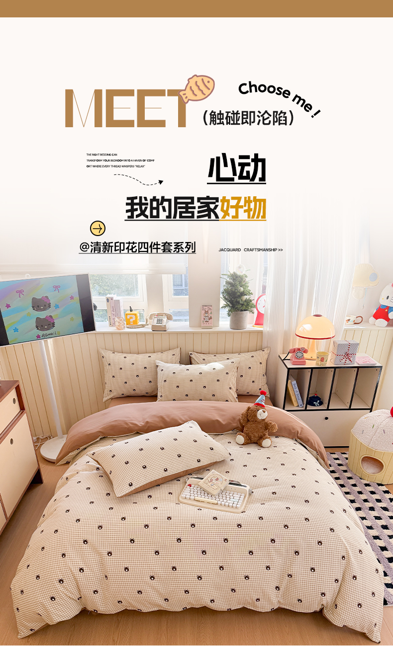 (总)鑫佳居 2026新款古法仿棉小清新印花四件套,苹果乐园,豹纹猫,彩虹圆点,格调熊,花田,花田错,华茵春日,灰蝴蝶,梦之园,念花溪,软芙小狗,童趣甜日,星星崽,鱼梦,愿落星河,k蒂猫