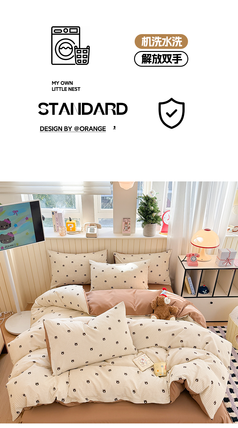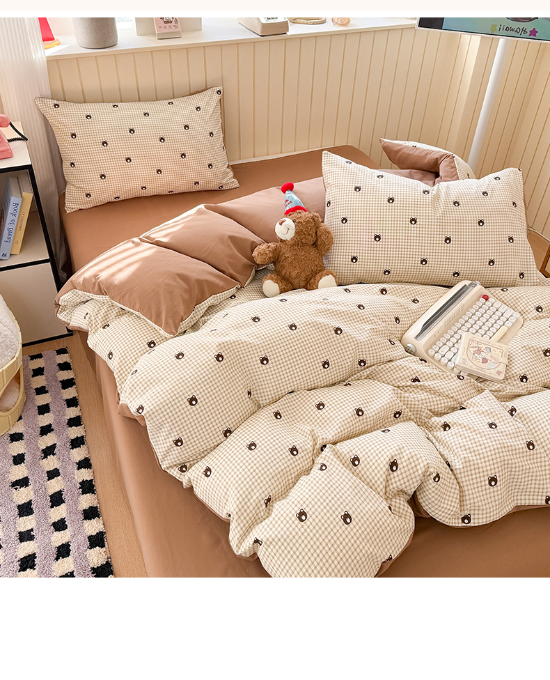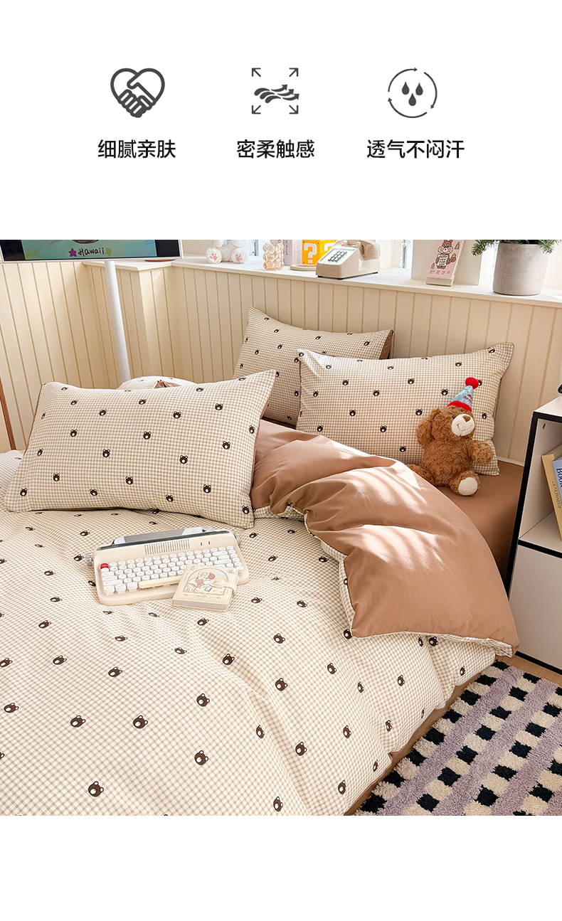 商品名称:鑫佳居 2026新款古法仿棉小清新印花单被套 格调熊