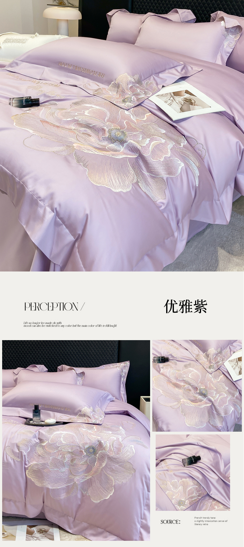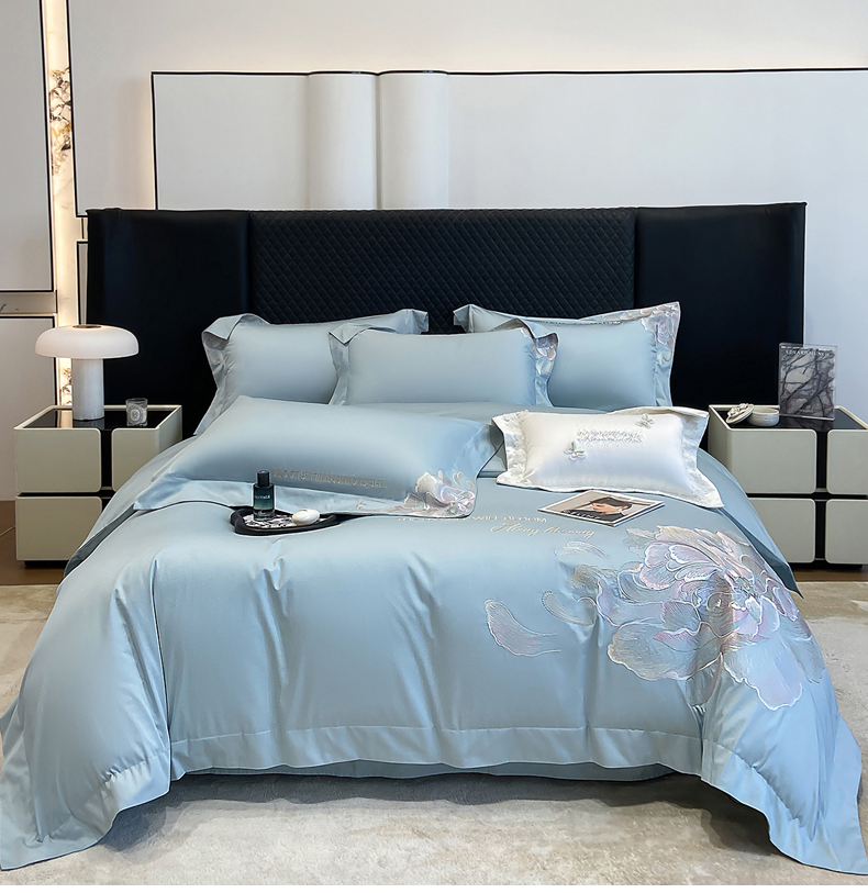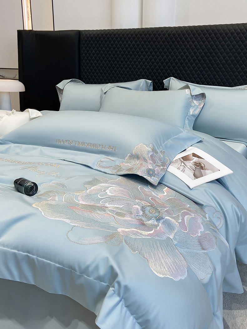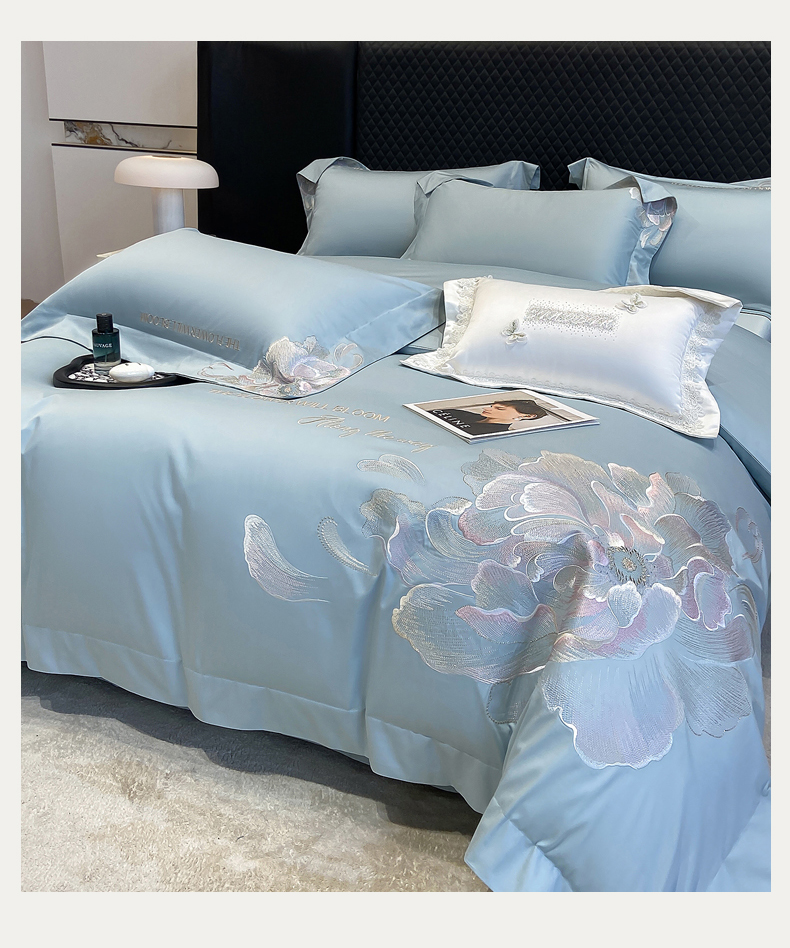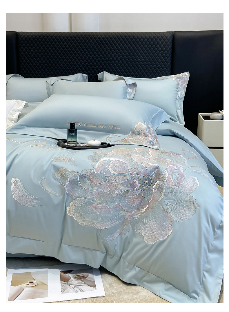 (总)星蕴家纺 2026新款50贡缎长绒棉纯棉绣花四件套-花瑾,花瑾-邂逅粉,花瑾-晴山蓝,花瑾-梦幻紫,花瑾-清新绿