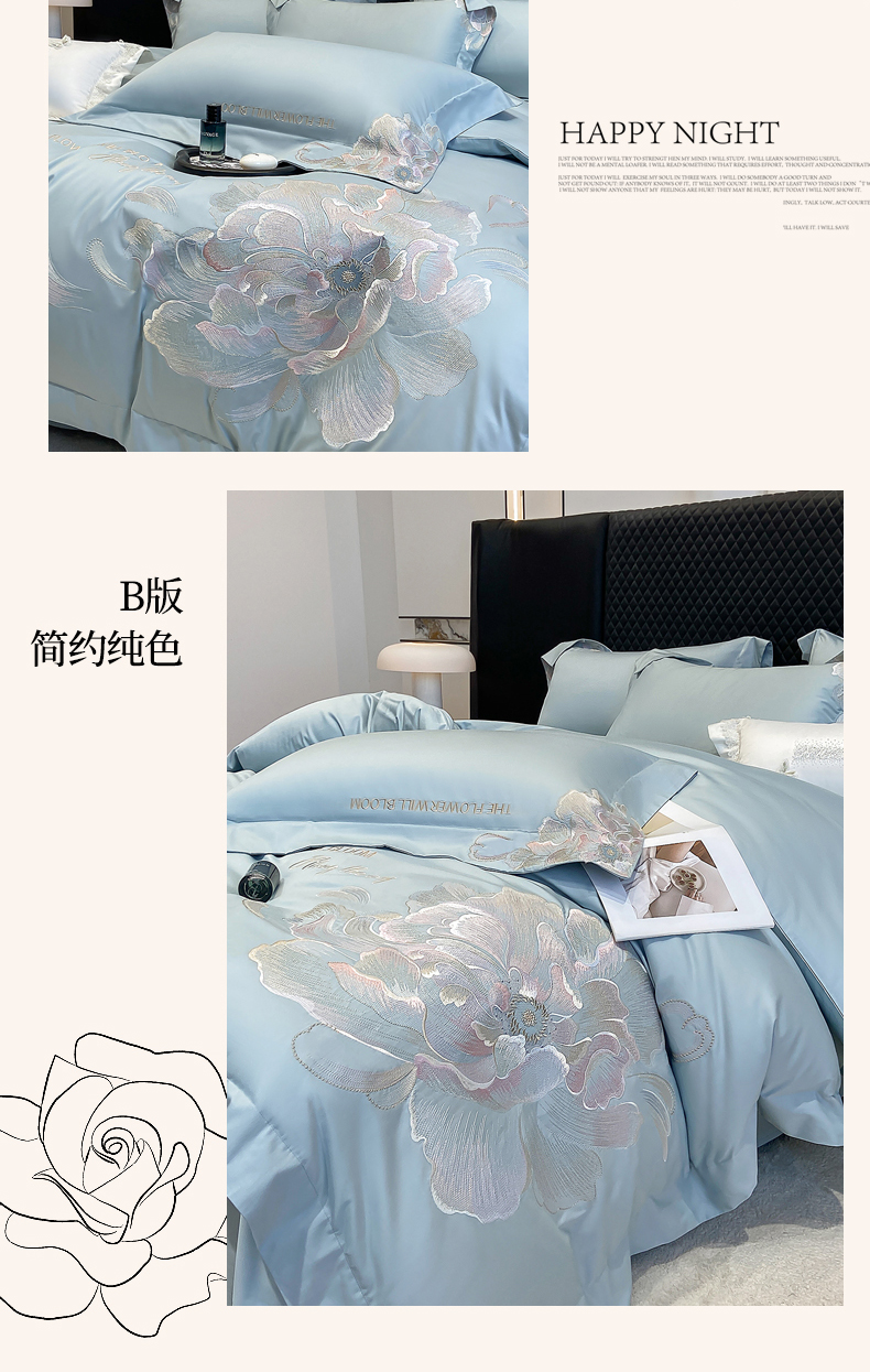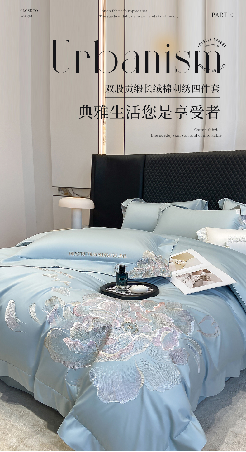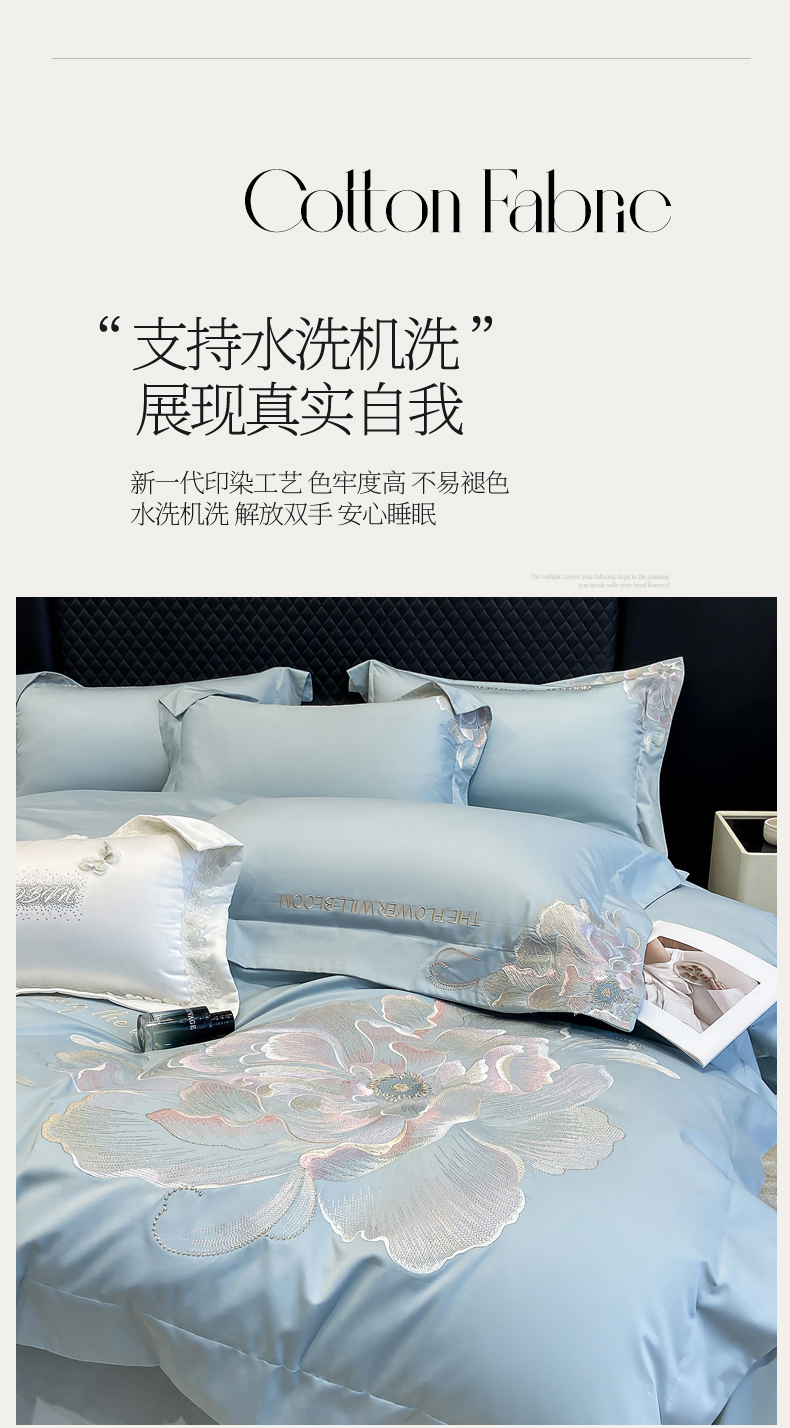 商品名称:(总)星蕴家纺 2026新款澳棉纯棉正宗长绒棉刺绣四件套-绽放