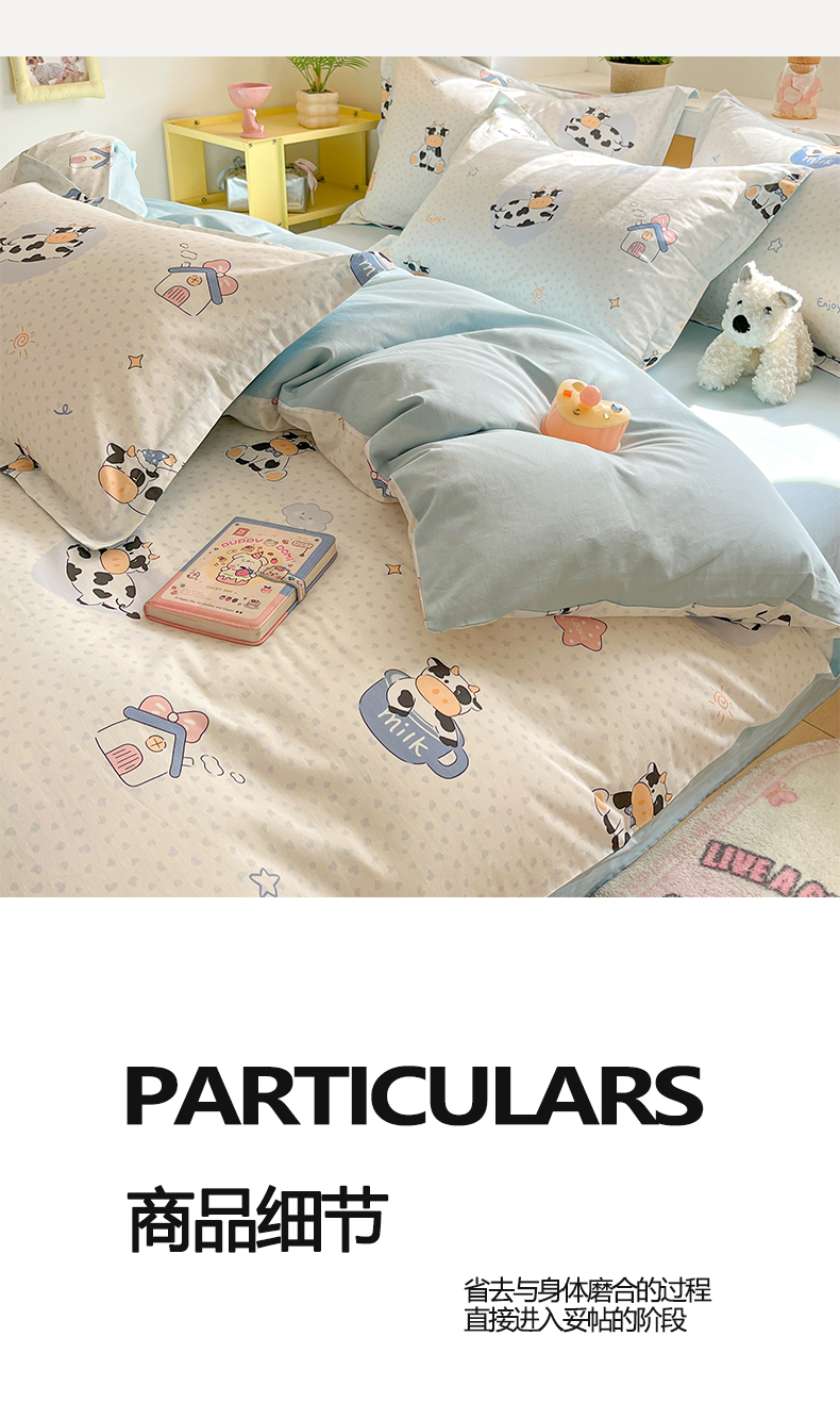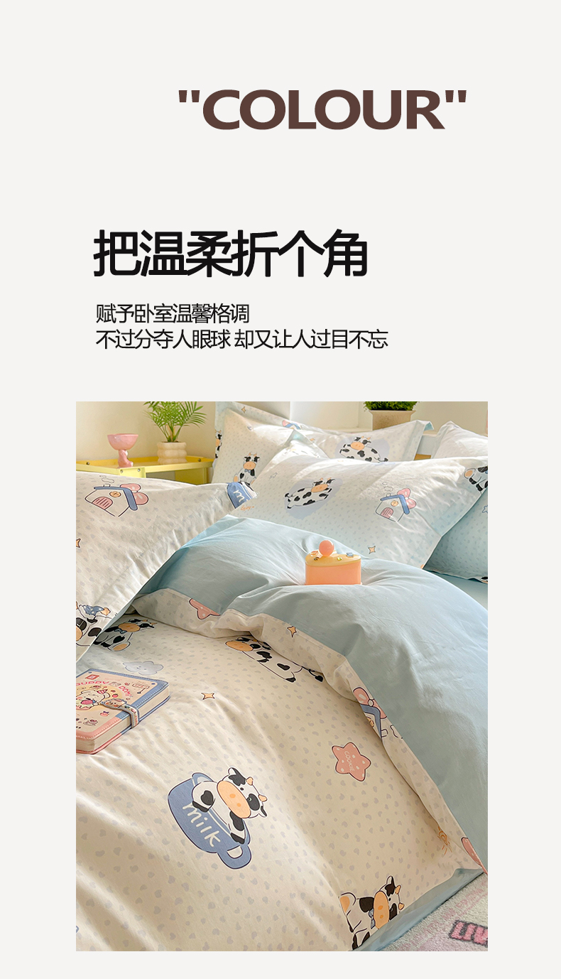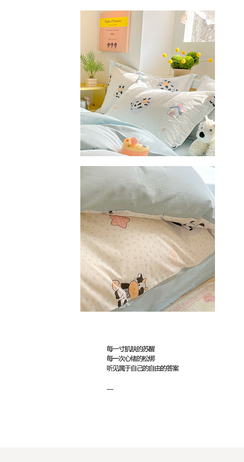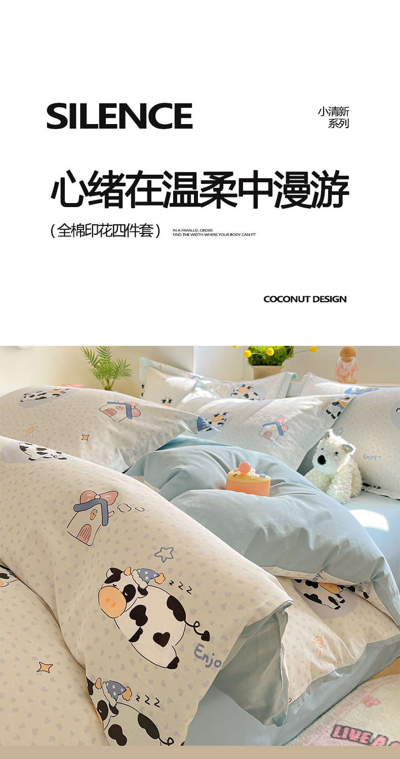当前位置: 91家纺网 > 商品网购 > 床品套件 > 四件套 > 全棉普通四件套 > 涵宸家纺 2026新款全棉印花小清新四件套 甜心奶牛