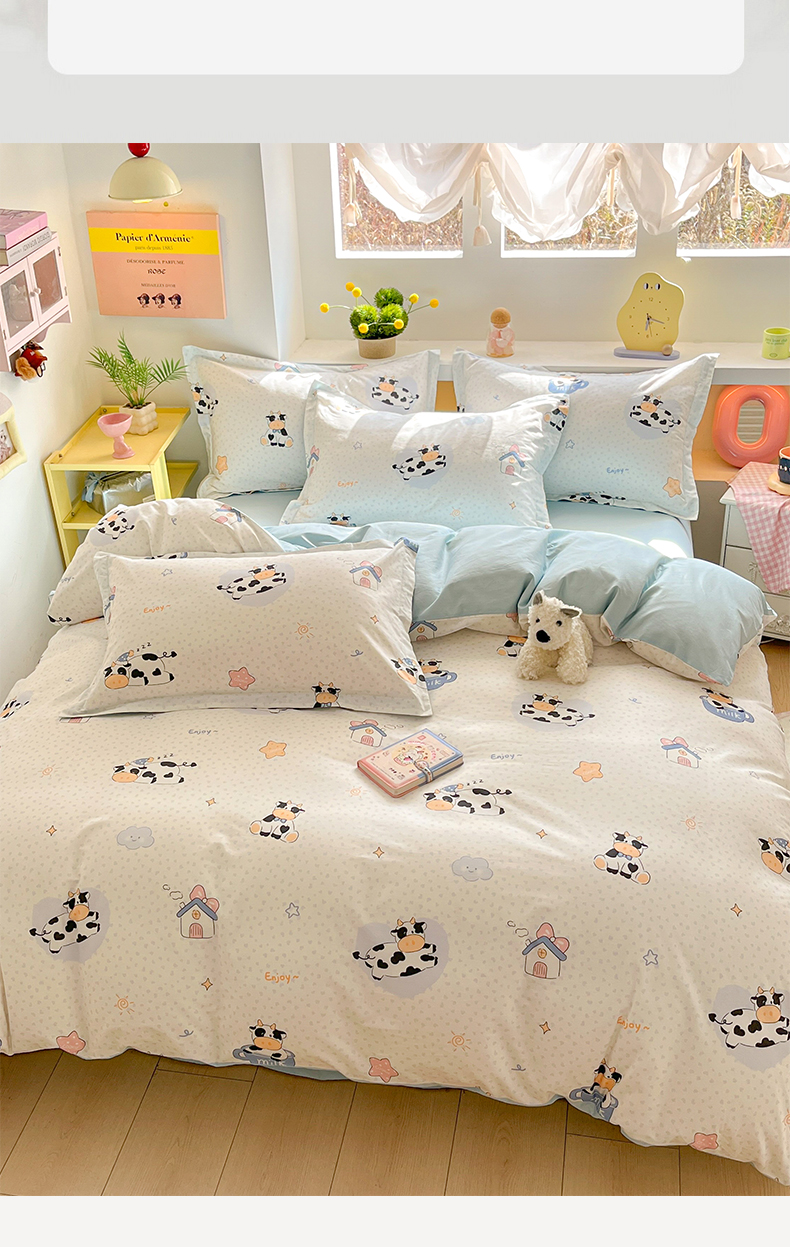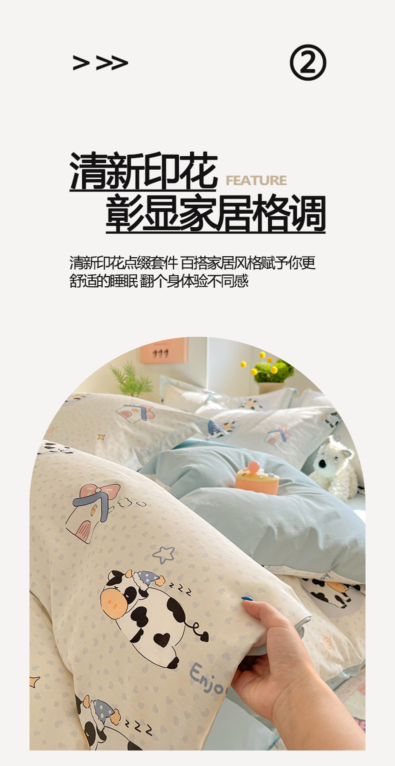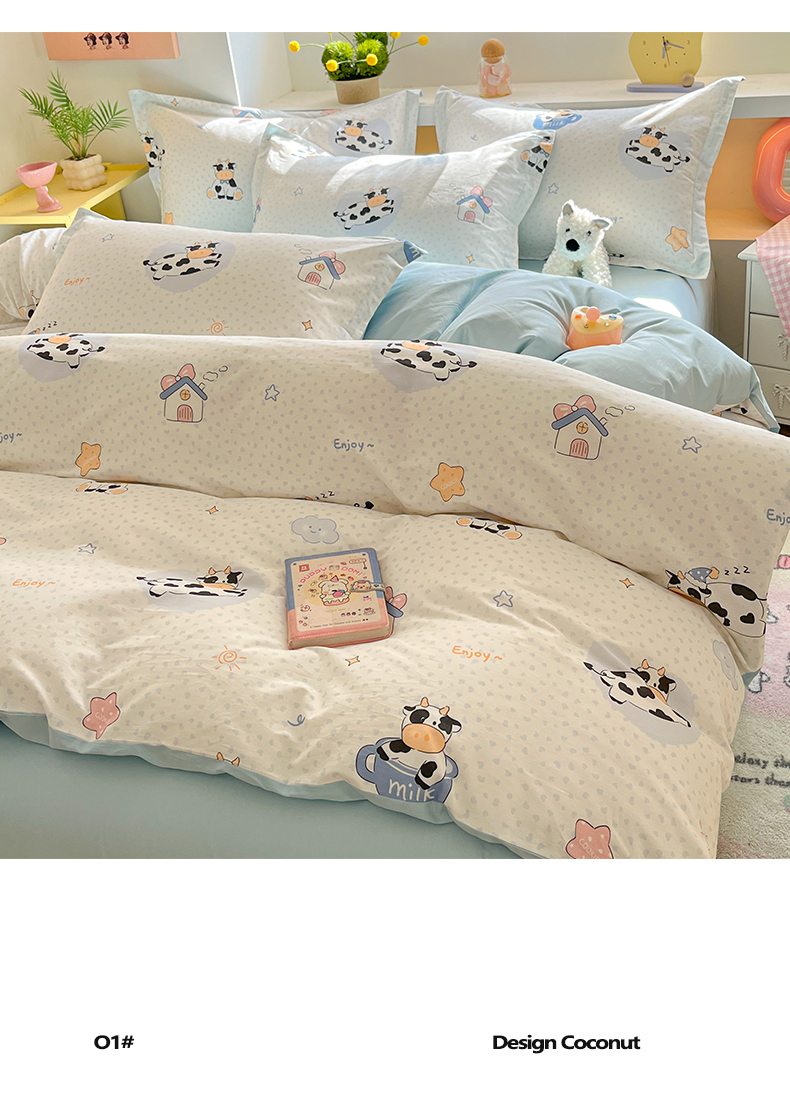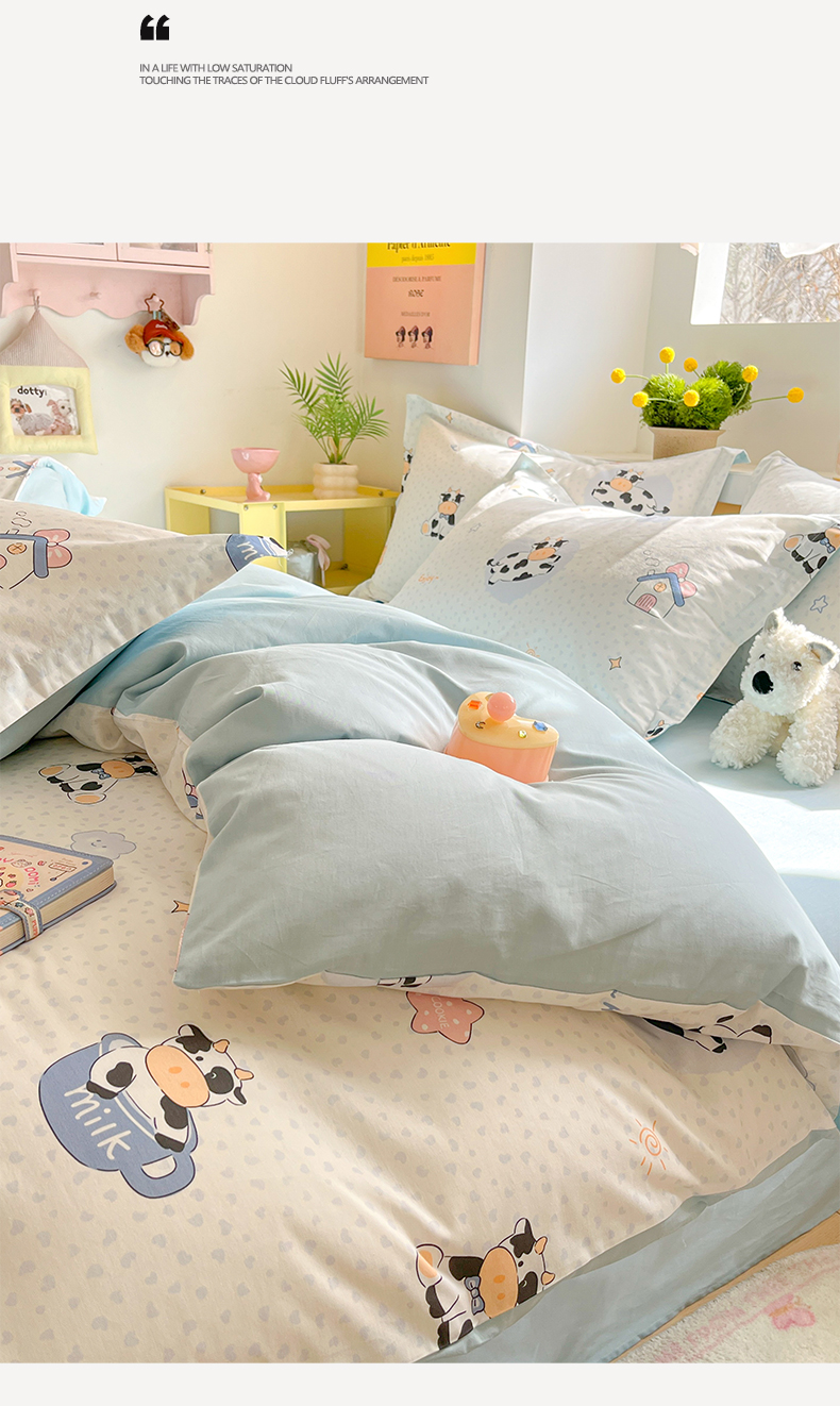 当前位置: 91家纺网 > 商品网购 > 床品套件 > 四件套 > 全棉普通四件套 > 涵宸家纺 2026新款全棉印花小清新四件套 甜心奶牛