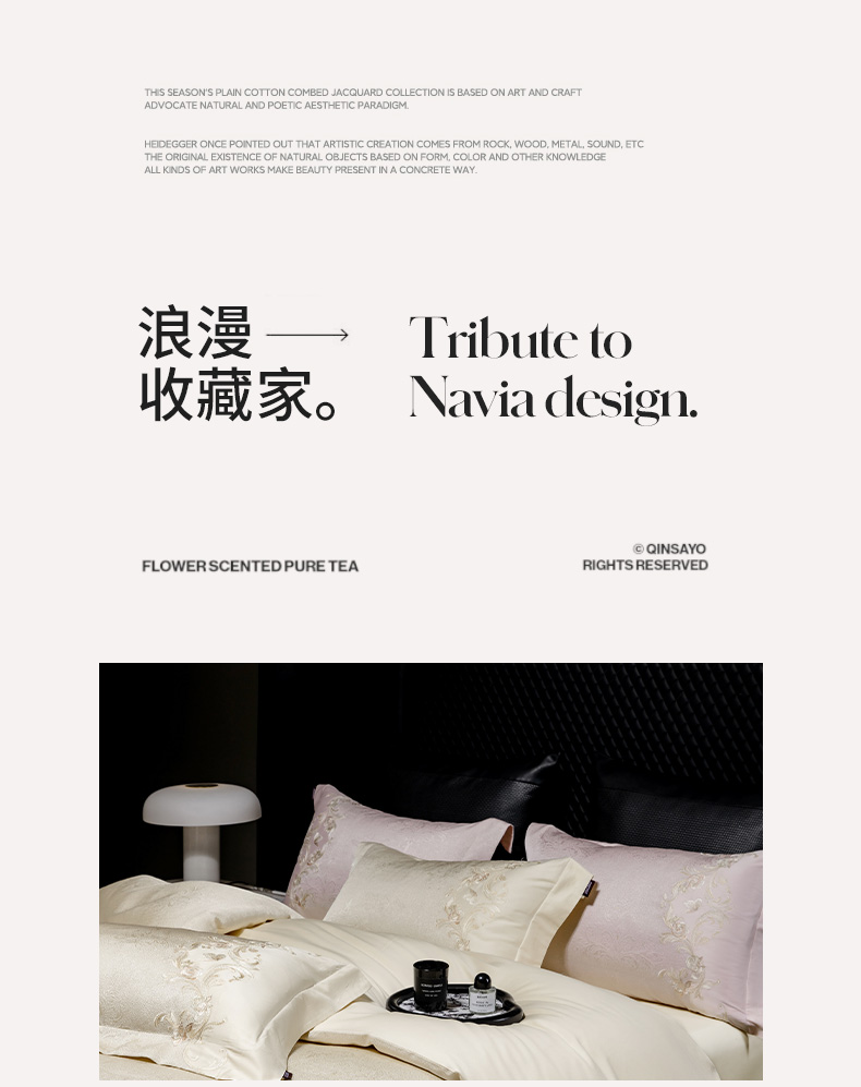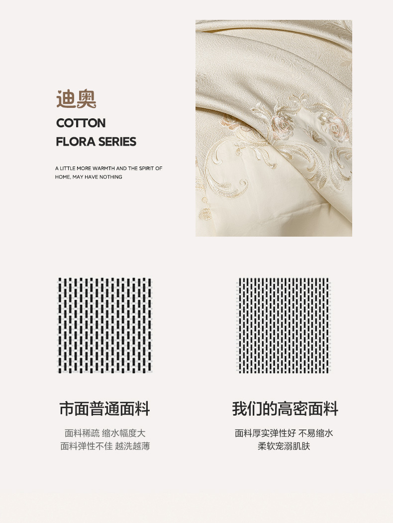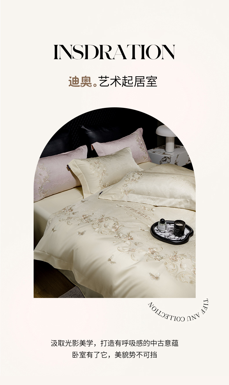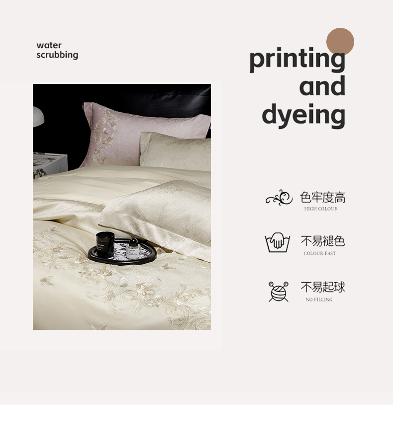 商品名称:乔利卡沃 2026高端新品A类100支长绒棉纯棉四件套100全棉厚织提花高档重工刺绣被套床单床笠床上用品-觅棠 觅棠-太妃金