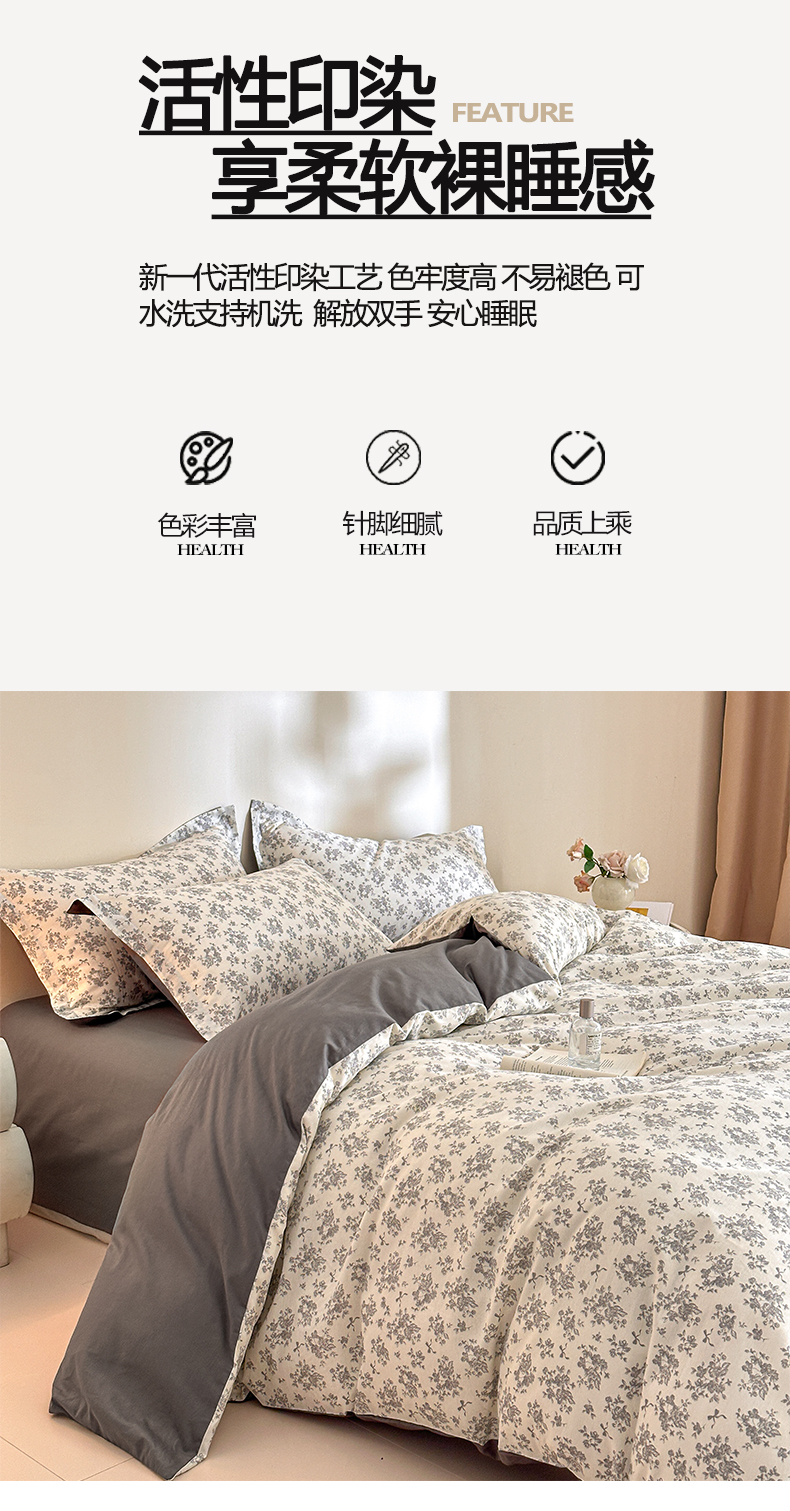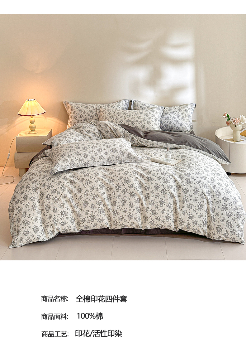 商品名称:涵宸家纺 2026新款全棉印花花卉四件套 黎梦